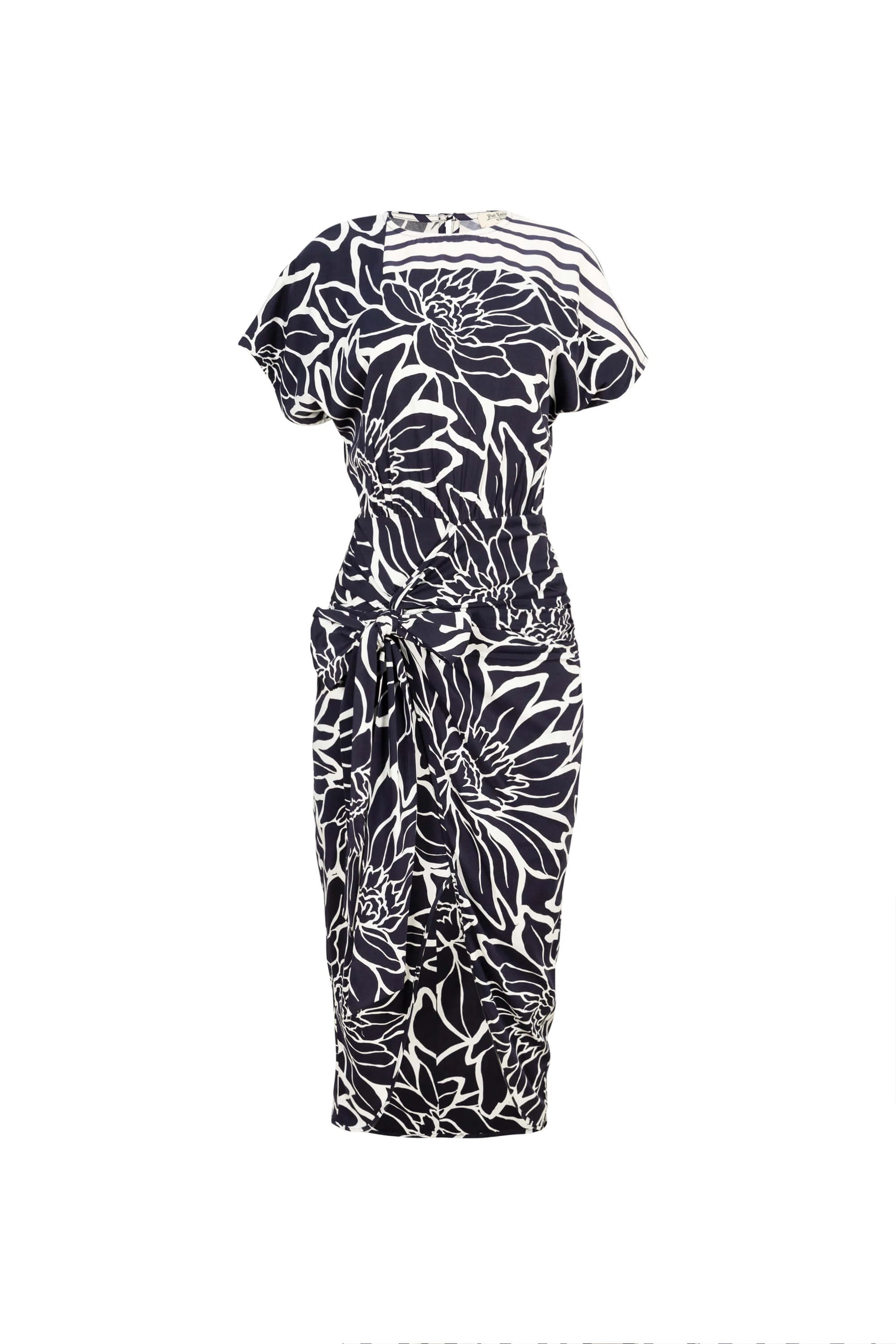 Vestido midi con falda tipo pareo y mangas fluidas.