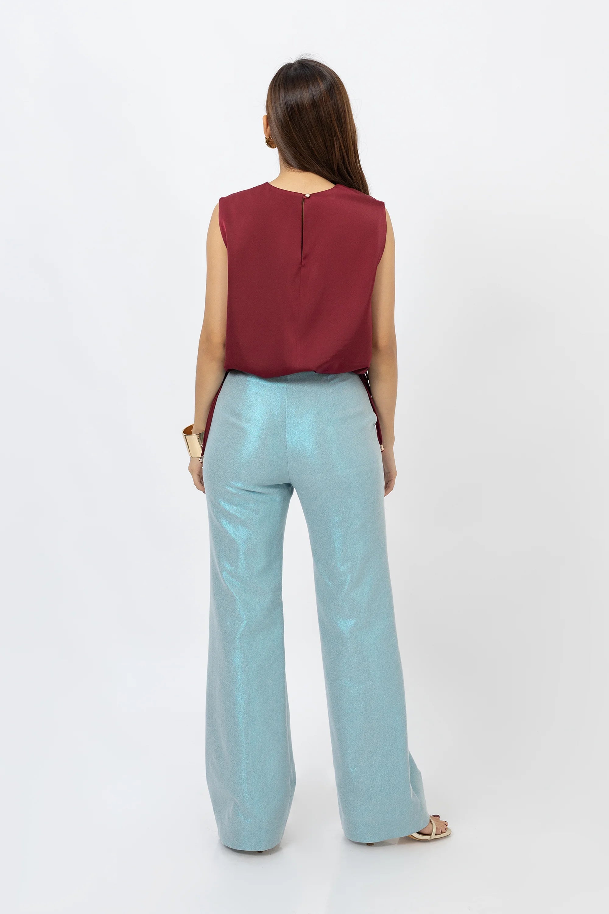 Esta blusa destaca por su silueta sofisticada y su ajuste adaptable gracias al elástico en la cintura, que define la figura con un toque contemporáneo, perfecta para combinar con pantalones formales, faldas midi o jeans, convirtiéndose en una prenda versátil para el día o la noche.