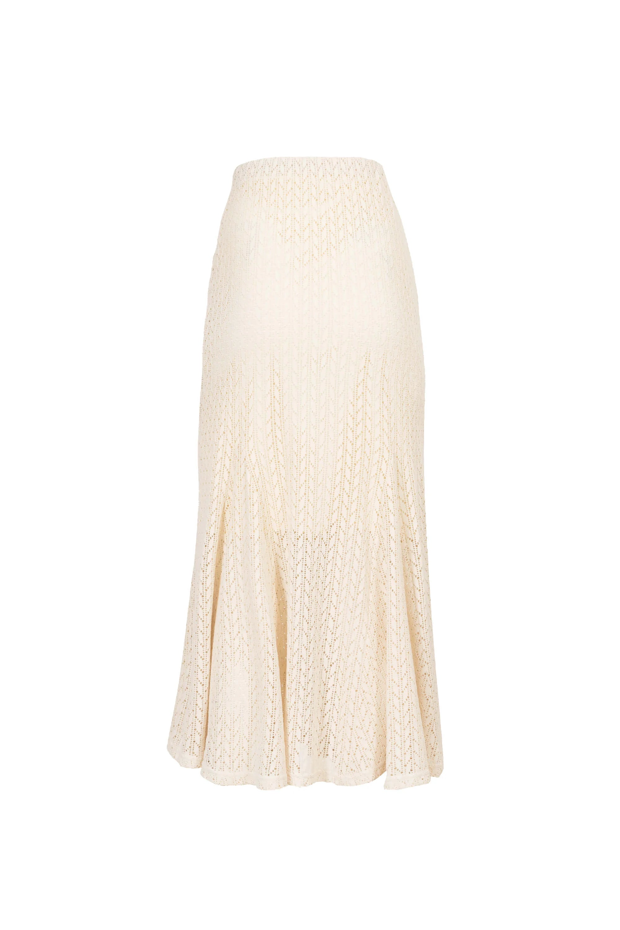 Esta falda recta ofrece una fusión perfecta entre estructura y movimiento. Su diseño limpio se enriquece con cortes tipo cuchillo que aportan fluidez y volumen en la parte inferior, finalizando con un delicado encaje que eleva el nivel de sofisticación de la prenda.