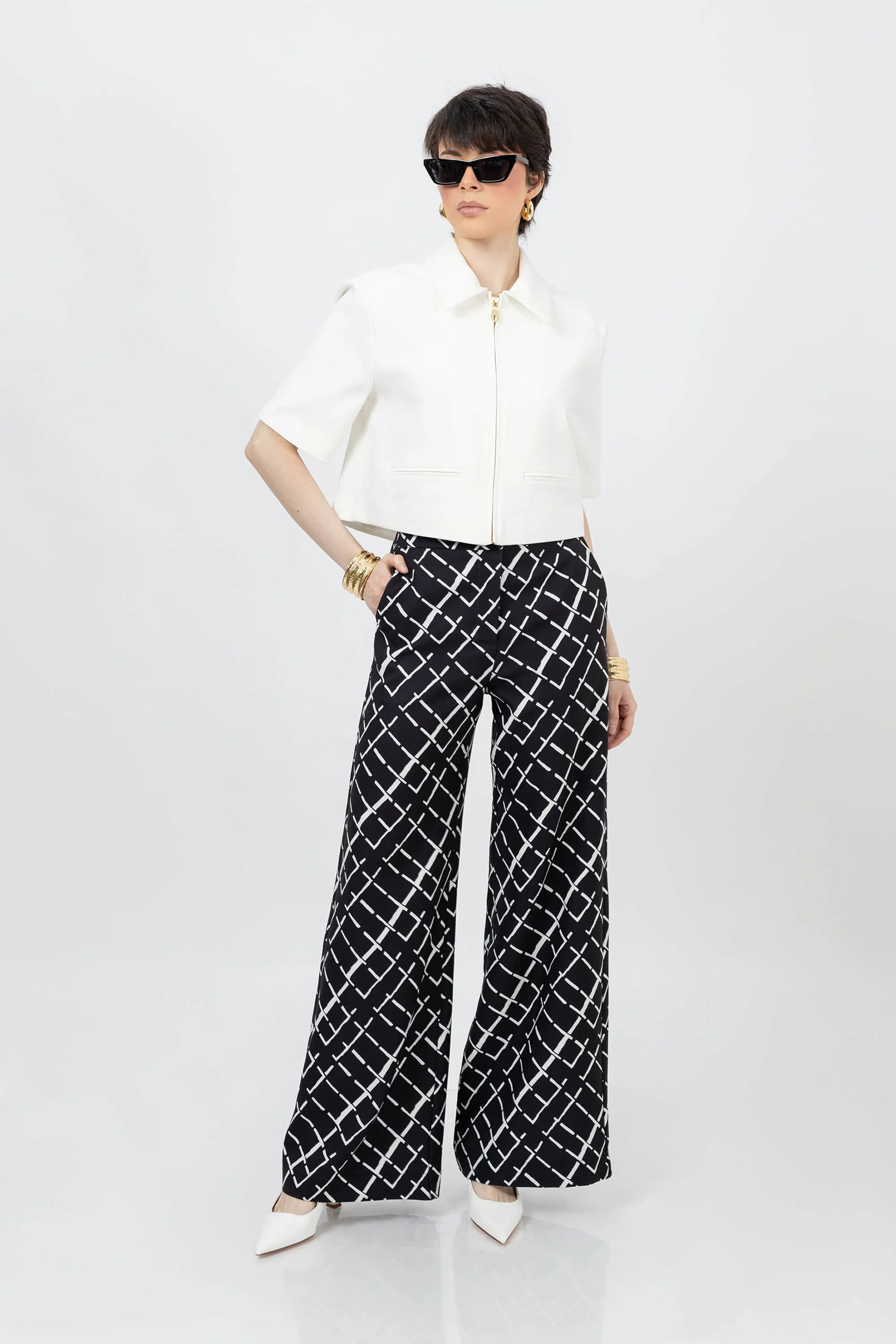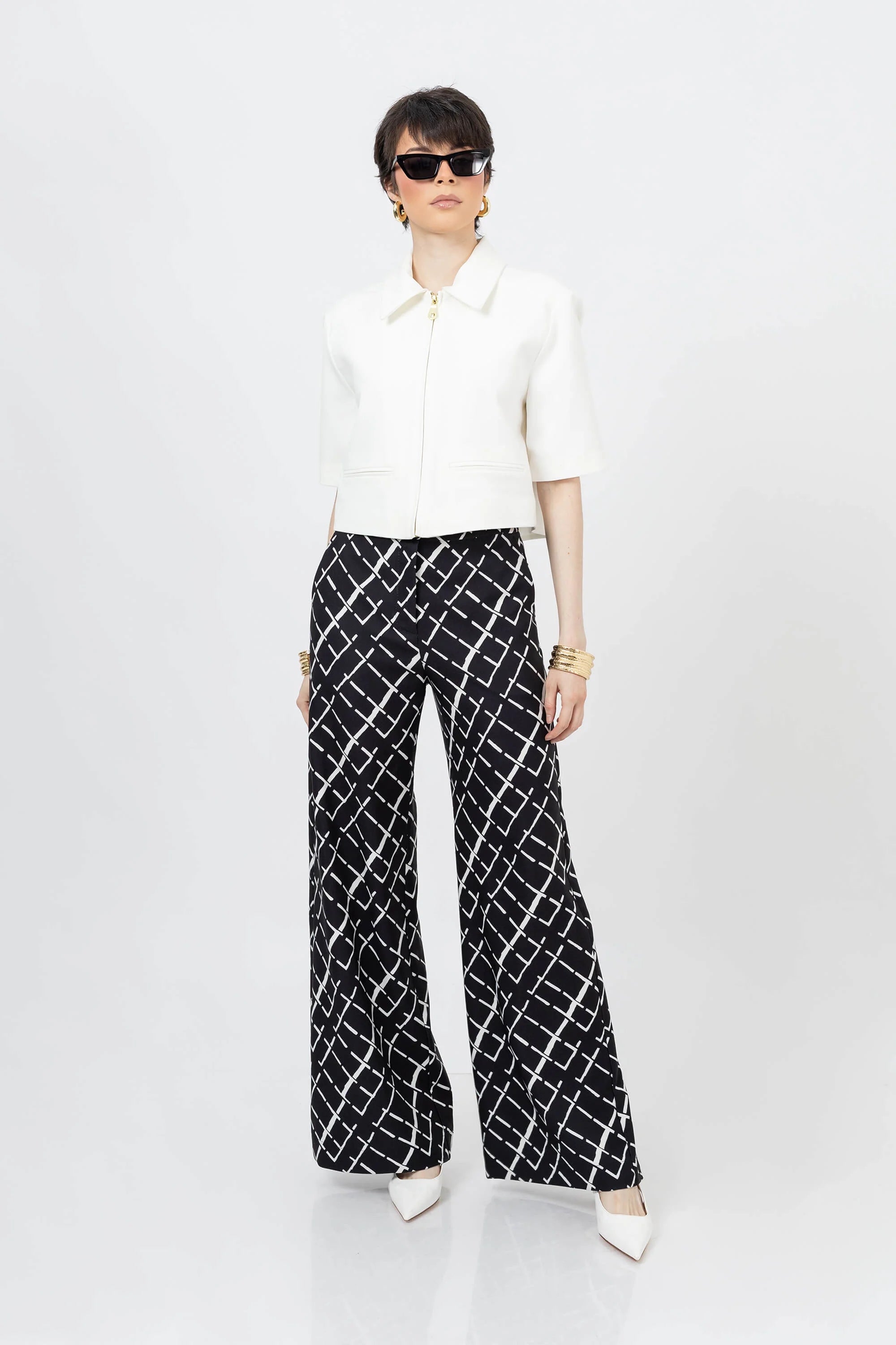 La Chaqueta corta manga pasada corta con vivos de Reina Díaz redefine el lujo discreto con un diseño estructurado y atemporal. Confeccionada en tejido de alta calidad, presenta cuello camisero clásico, cierre frontal con cierre metálico y vivos decorativos que enmarcan sutilmente la silueta. Su corte recto y proporción equilibrada la convierten en una pieza esencial para looks sofisticados de día o de noche.