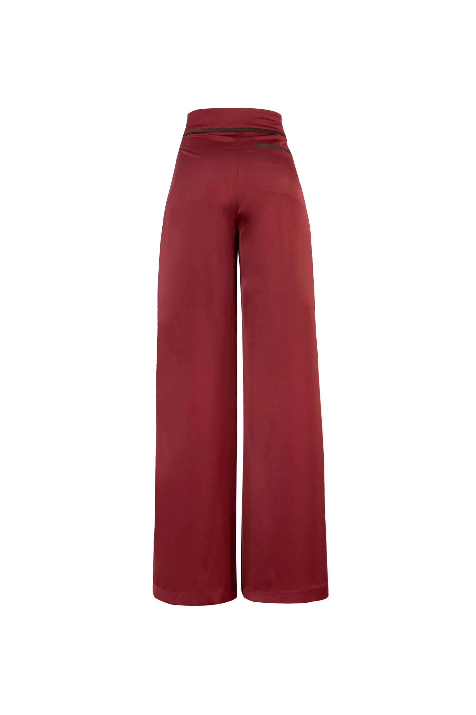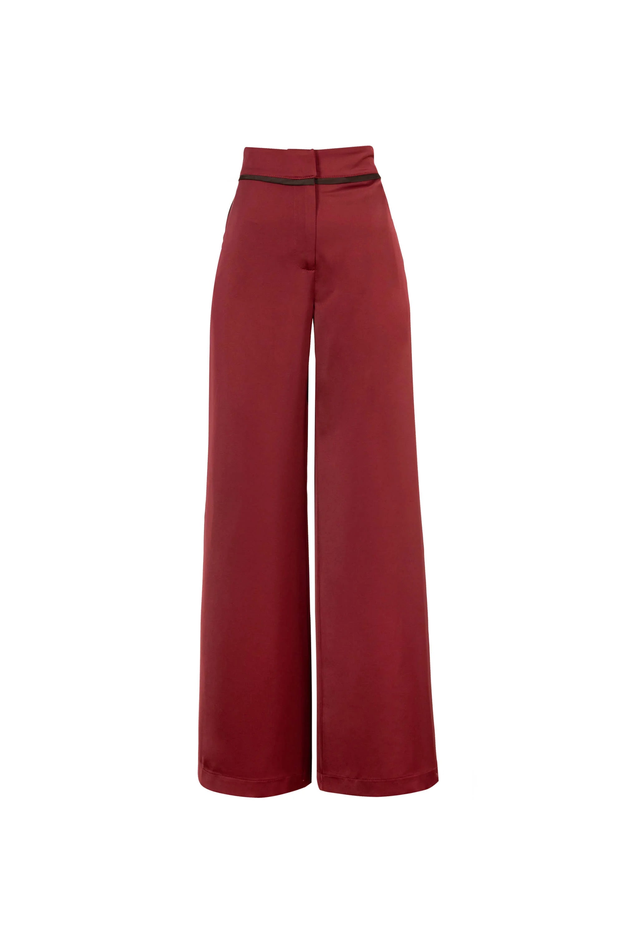 El pantalón largo wide leg duo color de Poet Couture combina elegancia y diseño contemporáneo. Con detalles de vivos contrastantes en la cintura y corte amplio, estiliza la silueta y ofrece un porte sofisticado. Ideal para looks formales o combinaciones modernas de día.