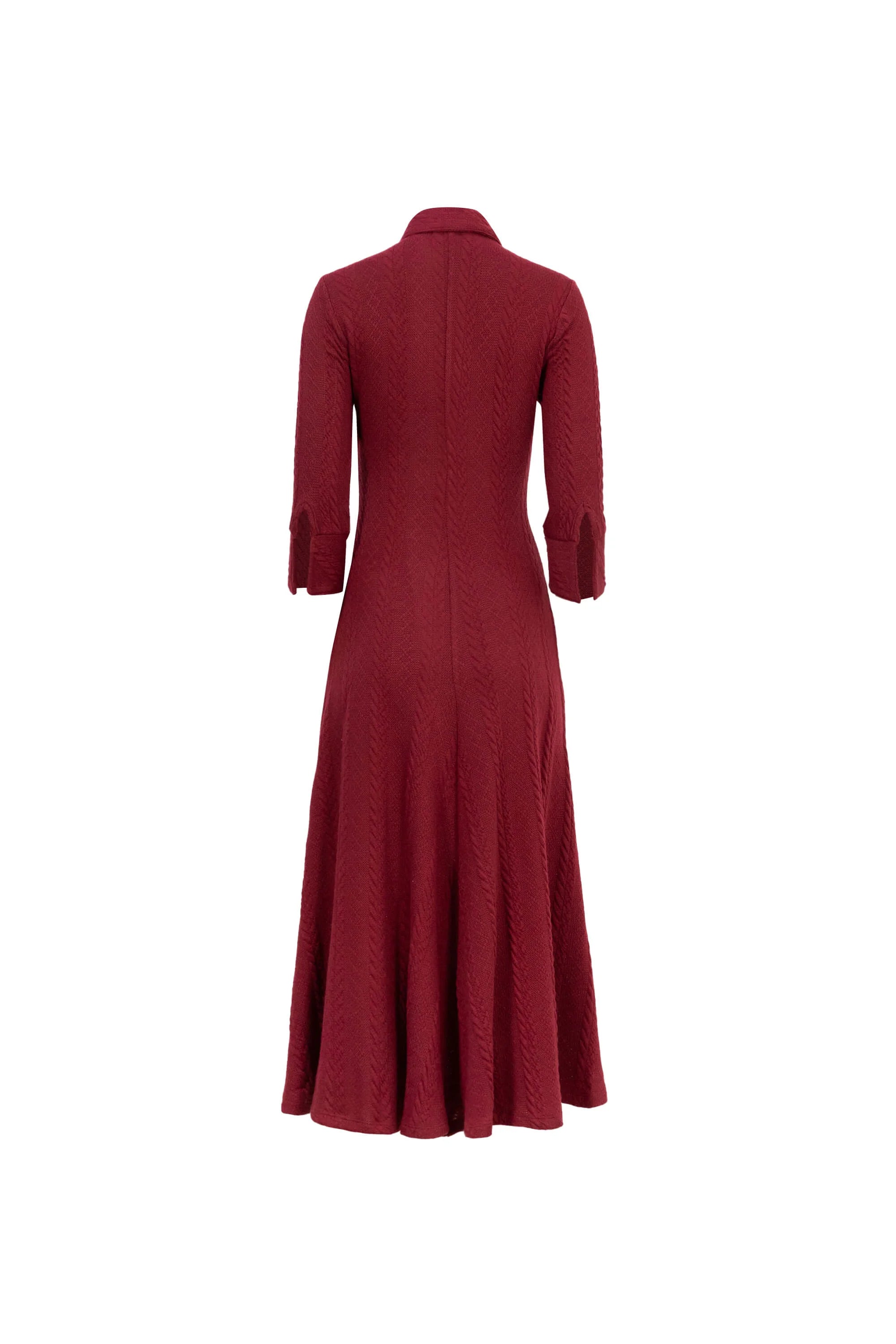 Vestido midi con cierre frontal y manga tres cuartos de Poet Couture es una expresión de elegancia atemporal. Confeccionado en tejido suave de textura ligera, su silueta acentúa la figura con un corte evasé y detalles de confección impecables. El cierre metálico al frente y el cuello camisero añaden un toque contemporáneo, ideal para looks urbanos o sofisticados de día. Una prenda versátil y refinada que combina estilo y funcionalidad.