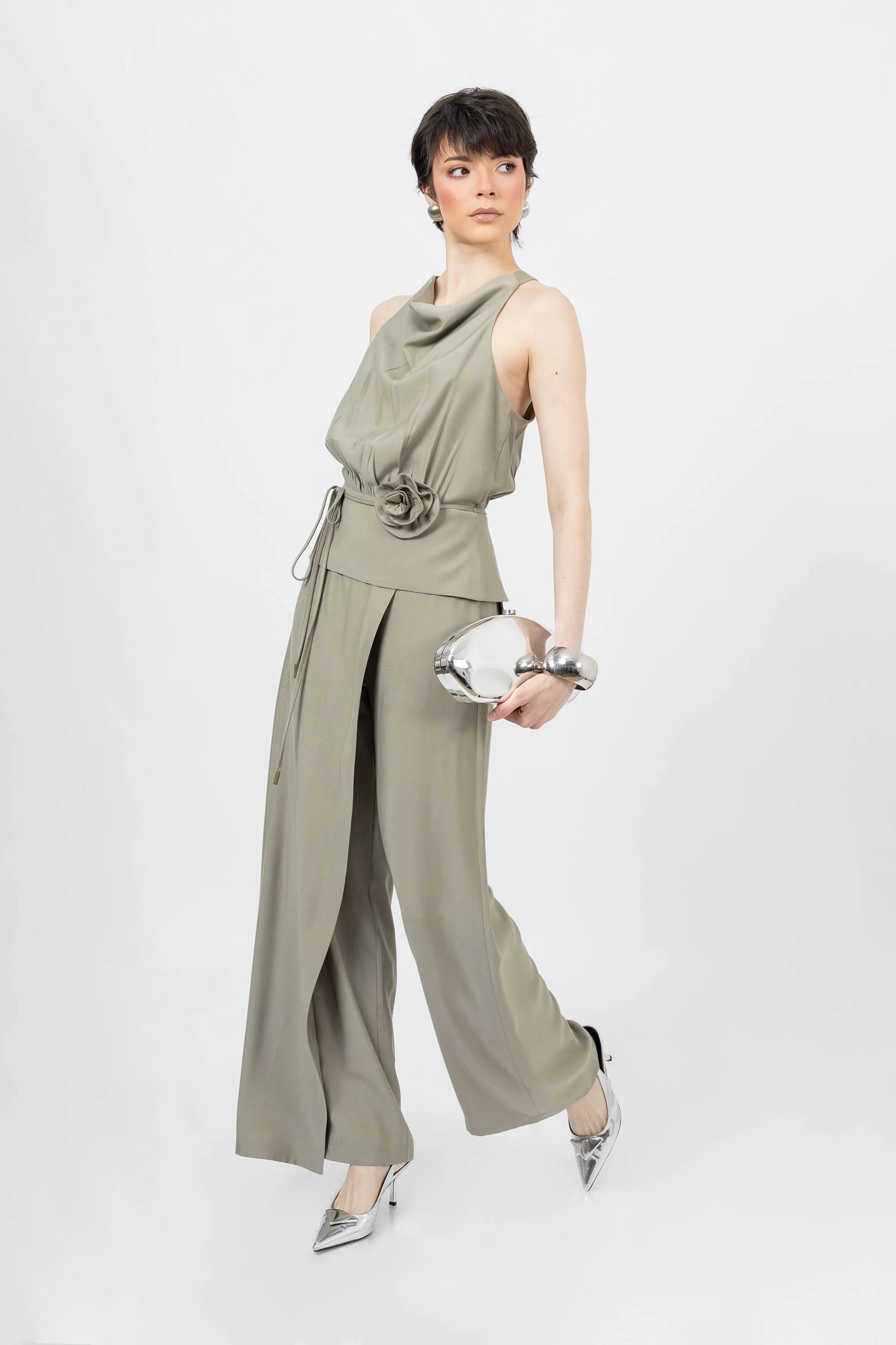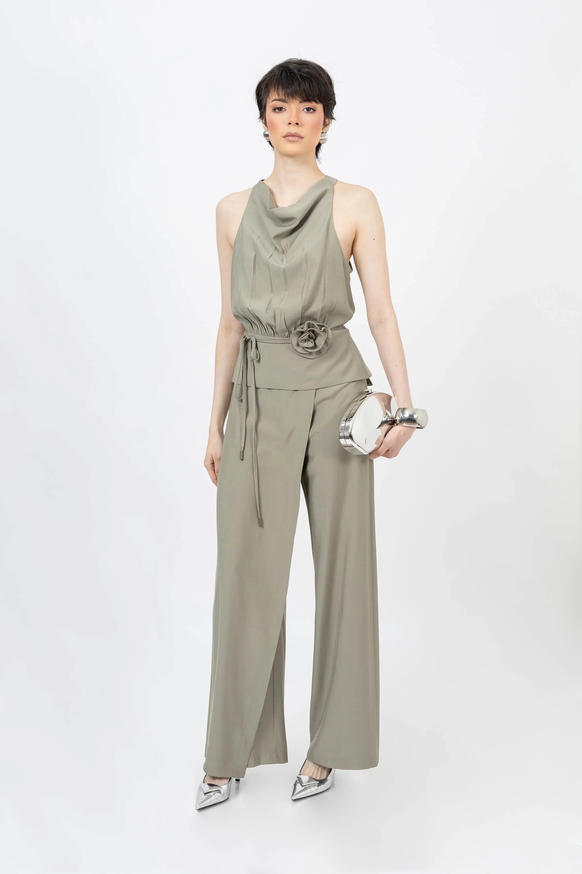 La Blusa con peplum y escote columpio de Reina Díaz redefine la elegancia femenina con un toque de suavidad y movimiento. Su diseño fluido con drapeado natural en el escote aporta sofisticación, mientras el detalle floral y el ajuste con cinta acentúan delicadamente la cintura. Confeccionada en tejido ligero y tacto sedoso, esta pieza es ideal para crear looks refinados de día o de noche.