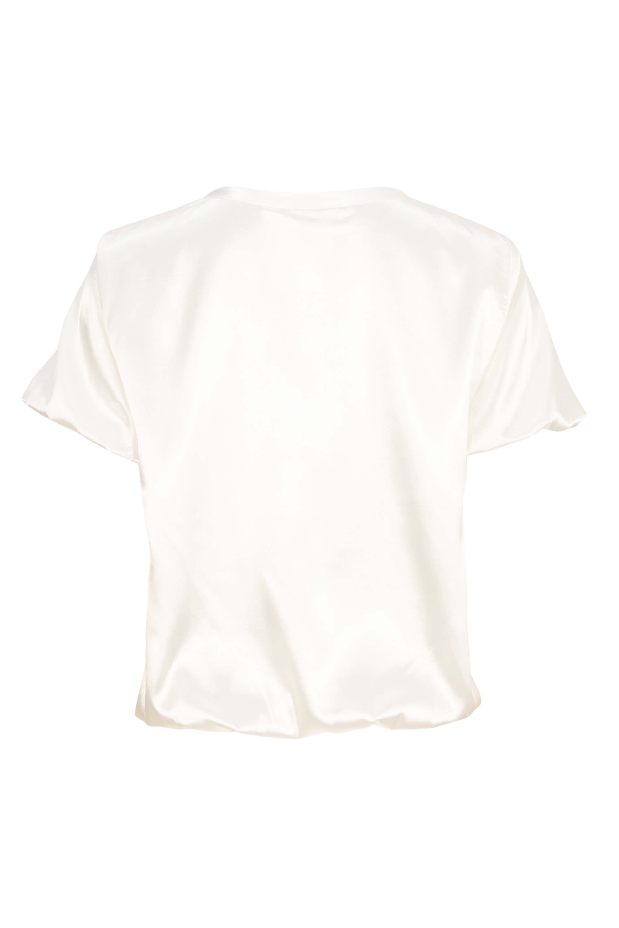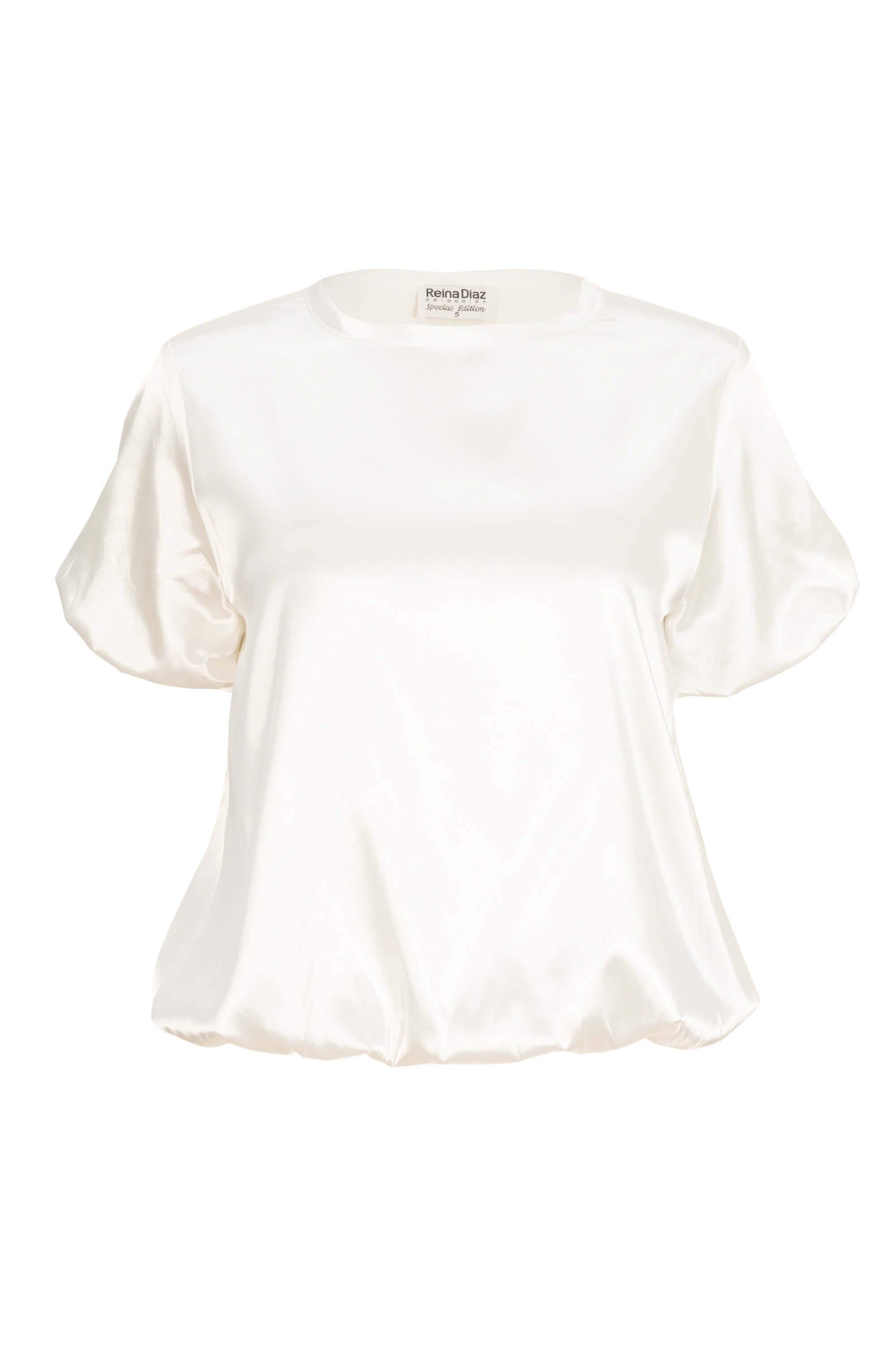 Confeccionada en satín brillante y de corte cómodo, esta blusa tipo globo con manga corta equilibra funcionalidad y sofisticación. Su caída fluida y ajuste relajado la convierten en una opción infalible para el día a día o eventos casuales elegantes.