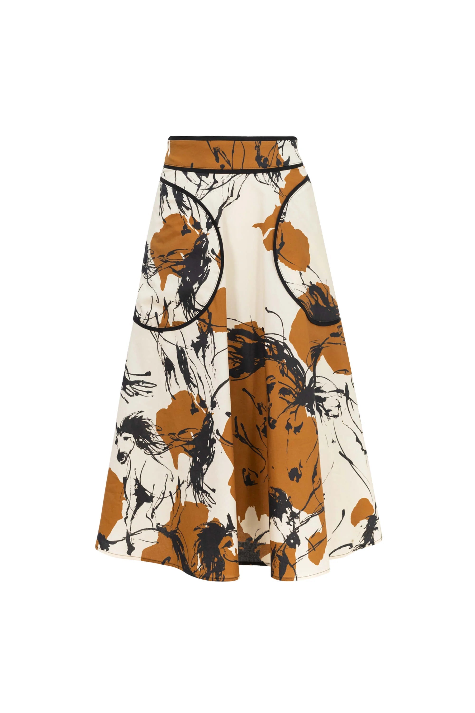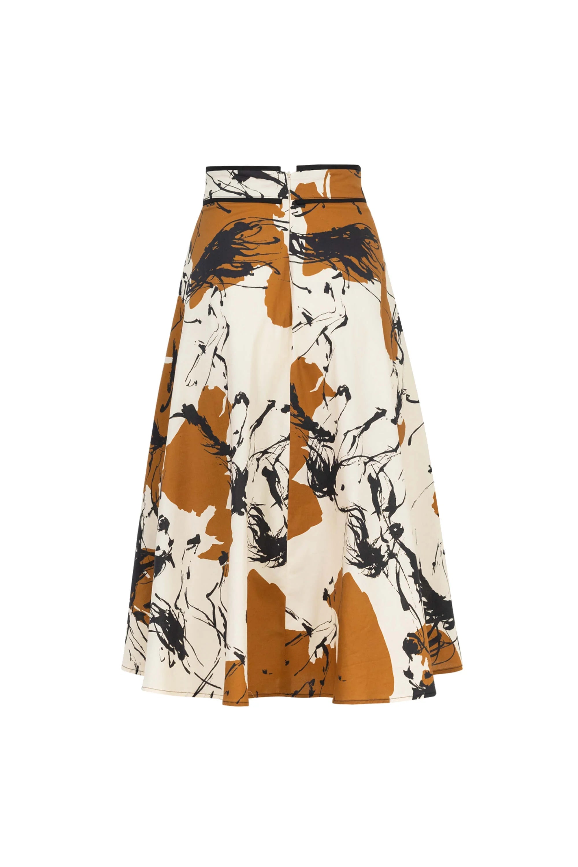 La Falda midi con estampado abstracto de Poet Couture celebra la libertad creativa con un diseño que fusiona arte y movimiento. Su silueta en corte A estiliza la figura, mientras que el estampado en tonos tierra y negro aporta profundidad visual y personalidad. Confeccionada en tejido fluido de caída natural, es perfecta para un look contemporáneo que combina elegancia, comodidad y expresión individual.