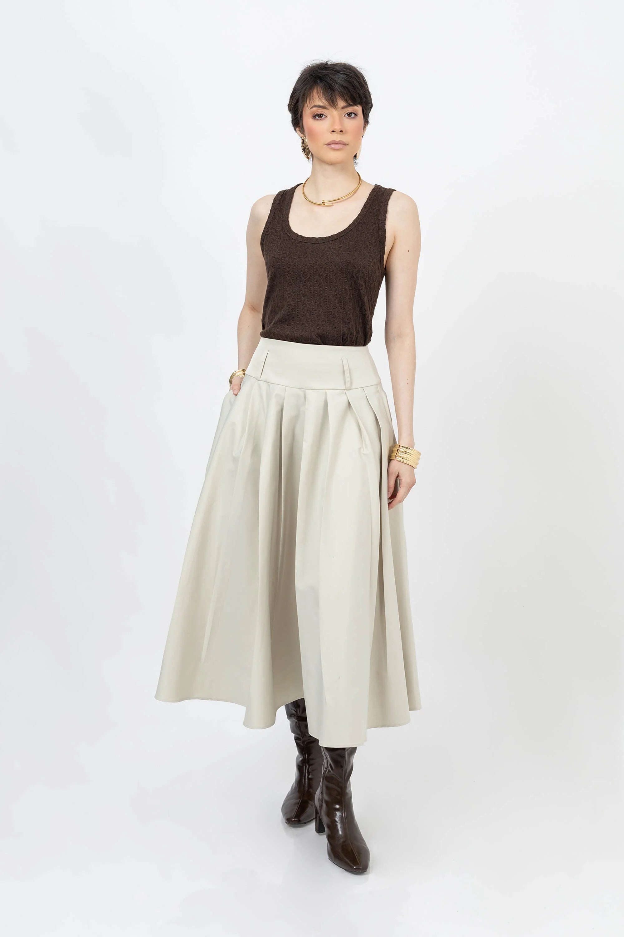 La Falda maxi con pretina amplia de Poet Couture es una declaración de elegancia moderna. Confeccionada en tejido fluido de alta calidad, su diseño de cintura estructurada resalta la silueta femenina, mientras que el vuelo amplio aporta movimiento y sofisticación. Ideal para eventos de día o noche, esta falda se adapta con facilidad a blusas ligeras, tops de punto o camisas sastre. Un básico atemporal que combina comodidad y distinción.