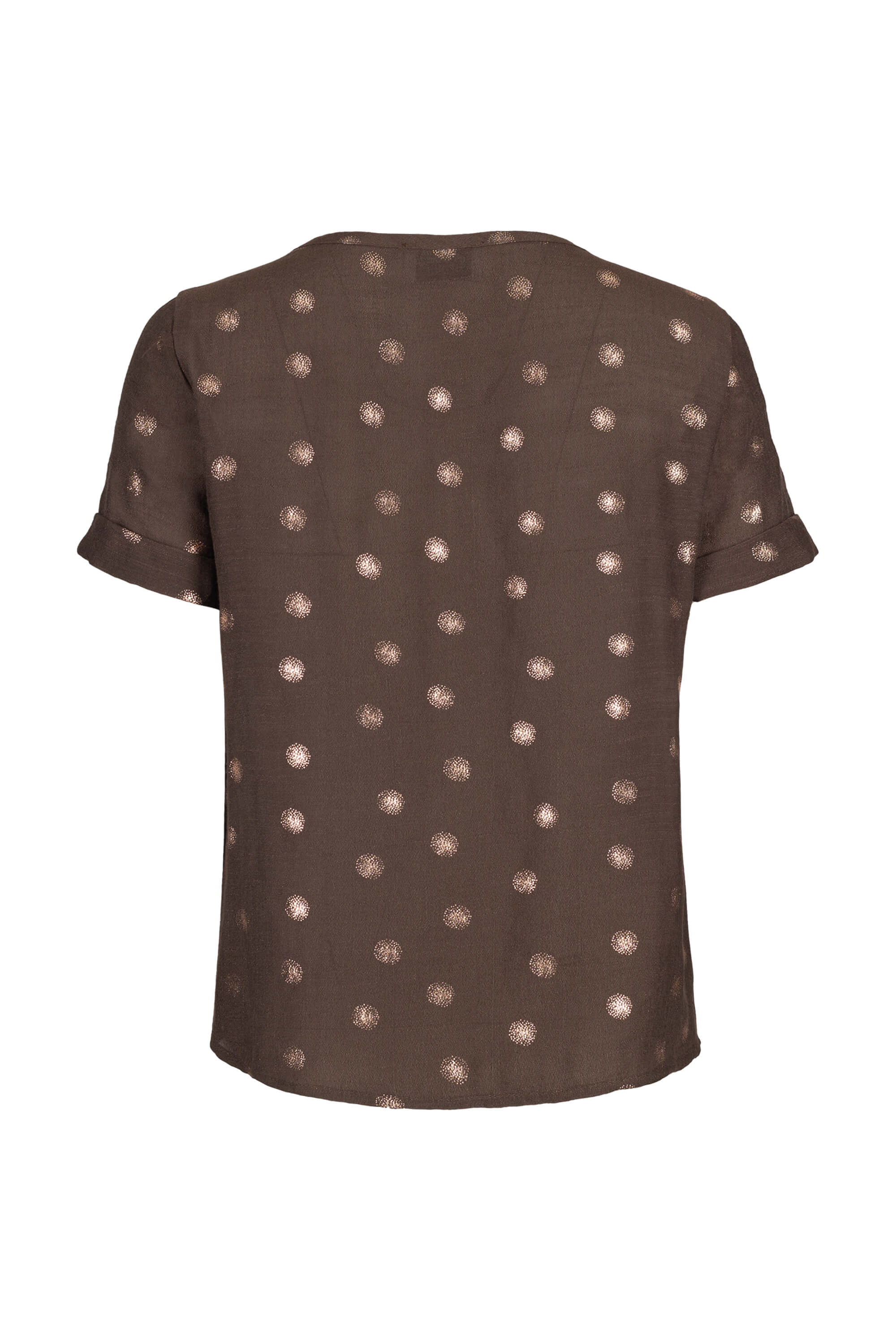 Una blusa básica imprescindible con escote clásico y práctico bolsillo al frente, perfecta para un estilo casual y cómodo.
