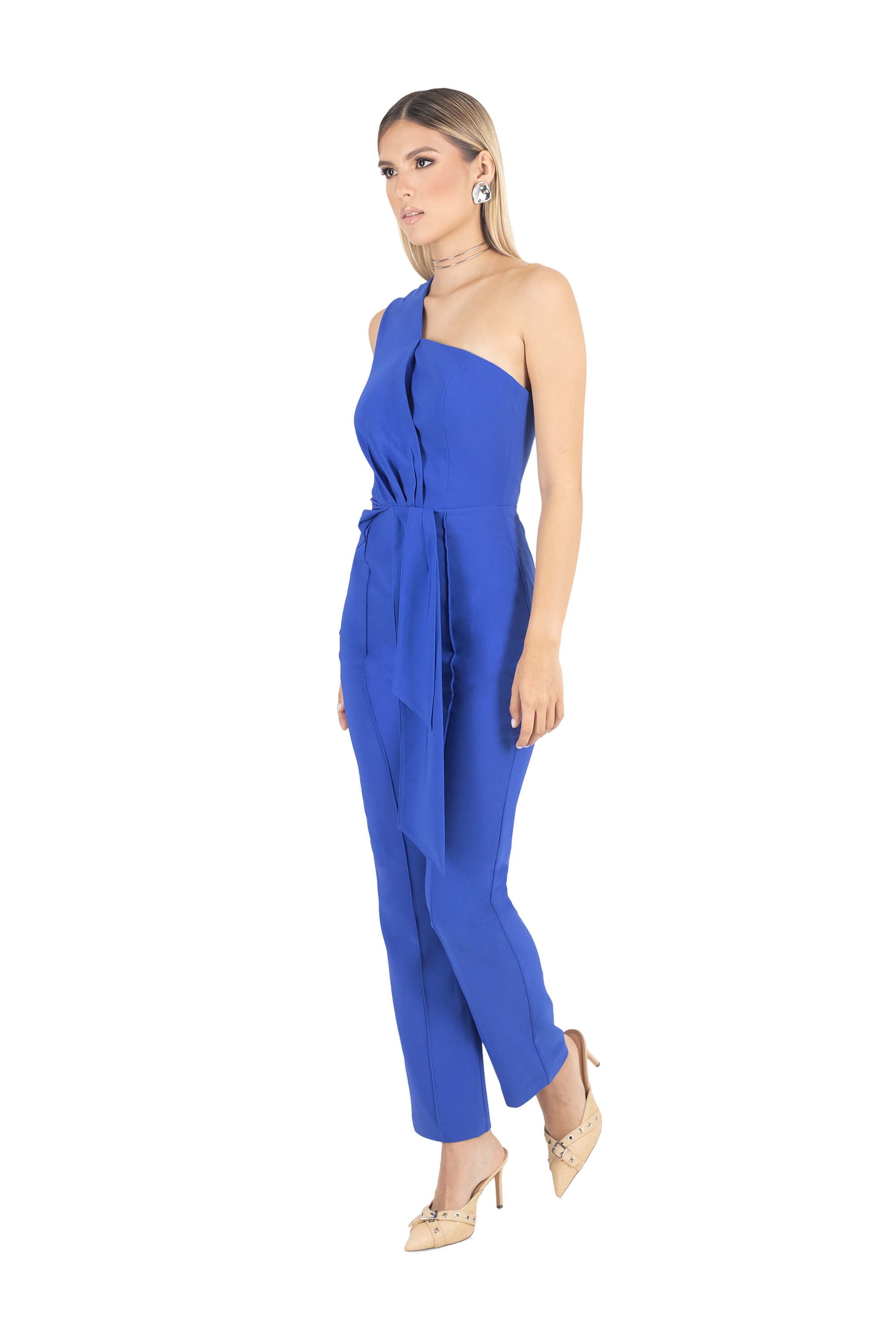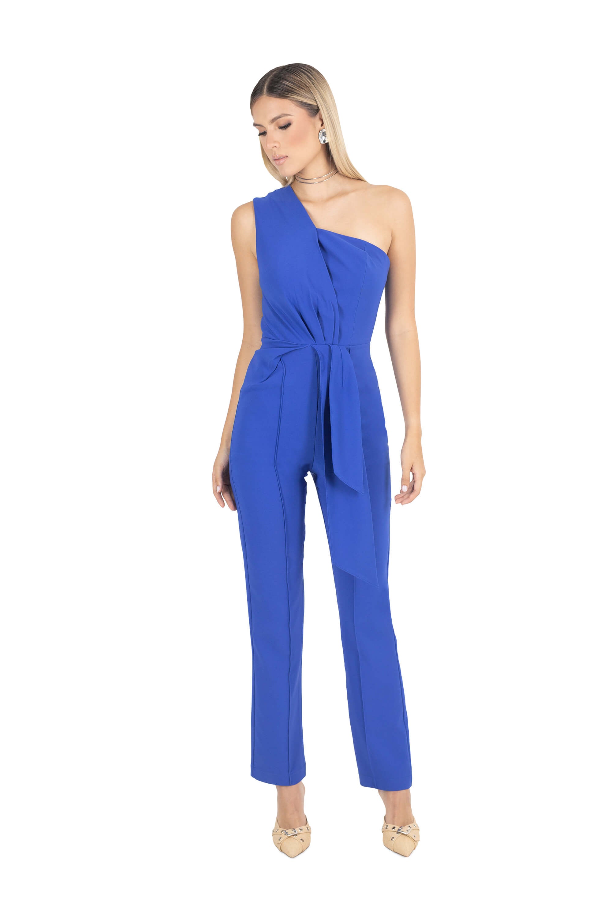 Pantsuit de Un Hombro, diseñado meticulosamente con alforzas y un detalle decorativo de caída asimétrica acentuando tu cintura ofreciendo una silueta impactante y única