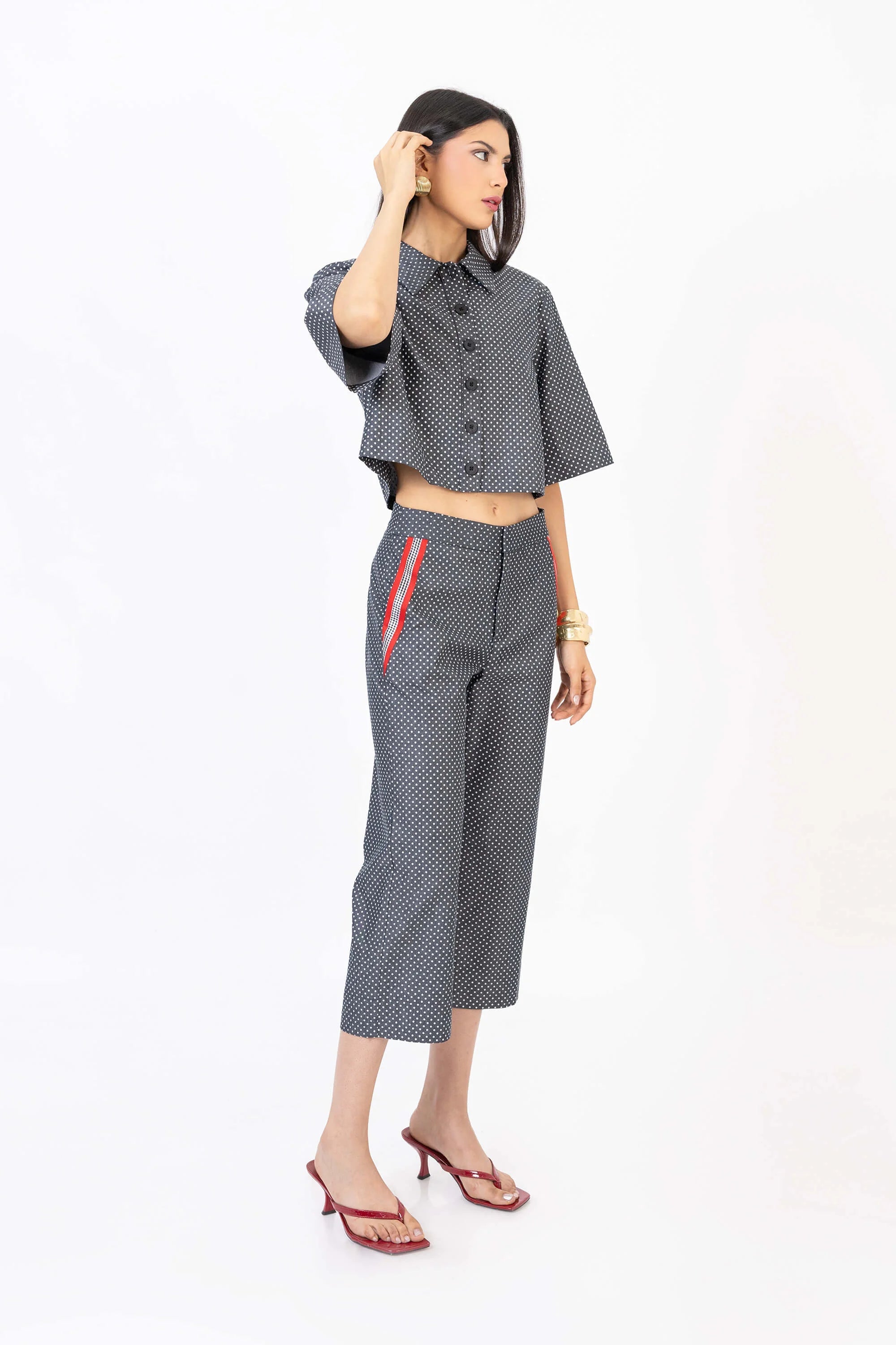 Saco corto de algodón , manga corta con botones