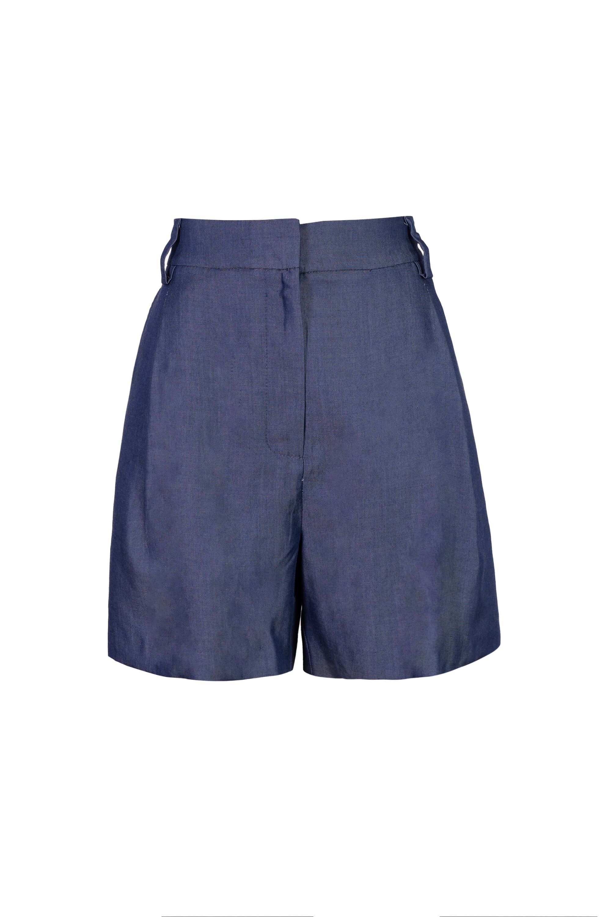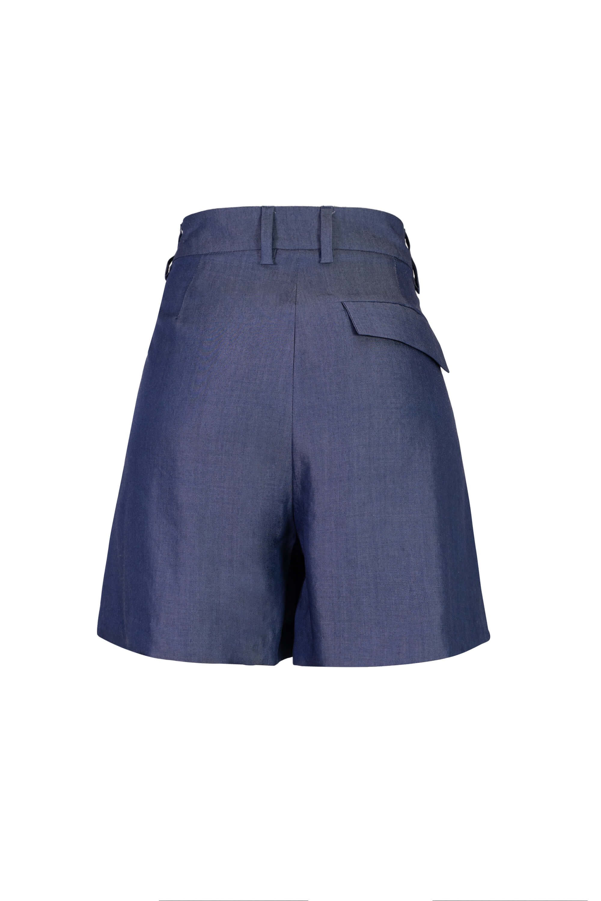 El corte alto con pinzas al frente estiliza la figura y enmarca la cintura con elegancia, mientras que los pliegues suaves aportan volumen contenido y una caída impecable.