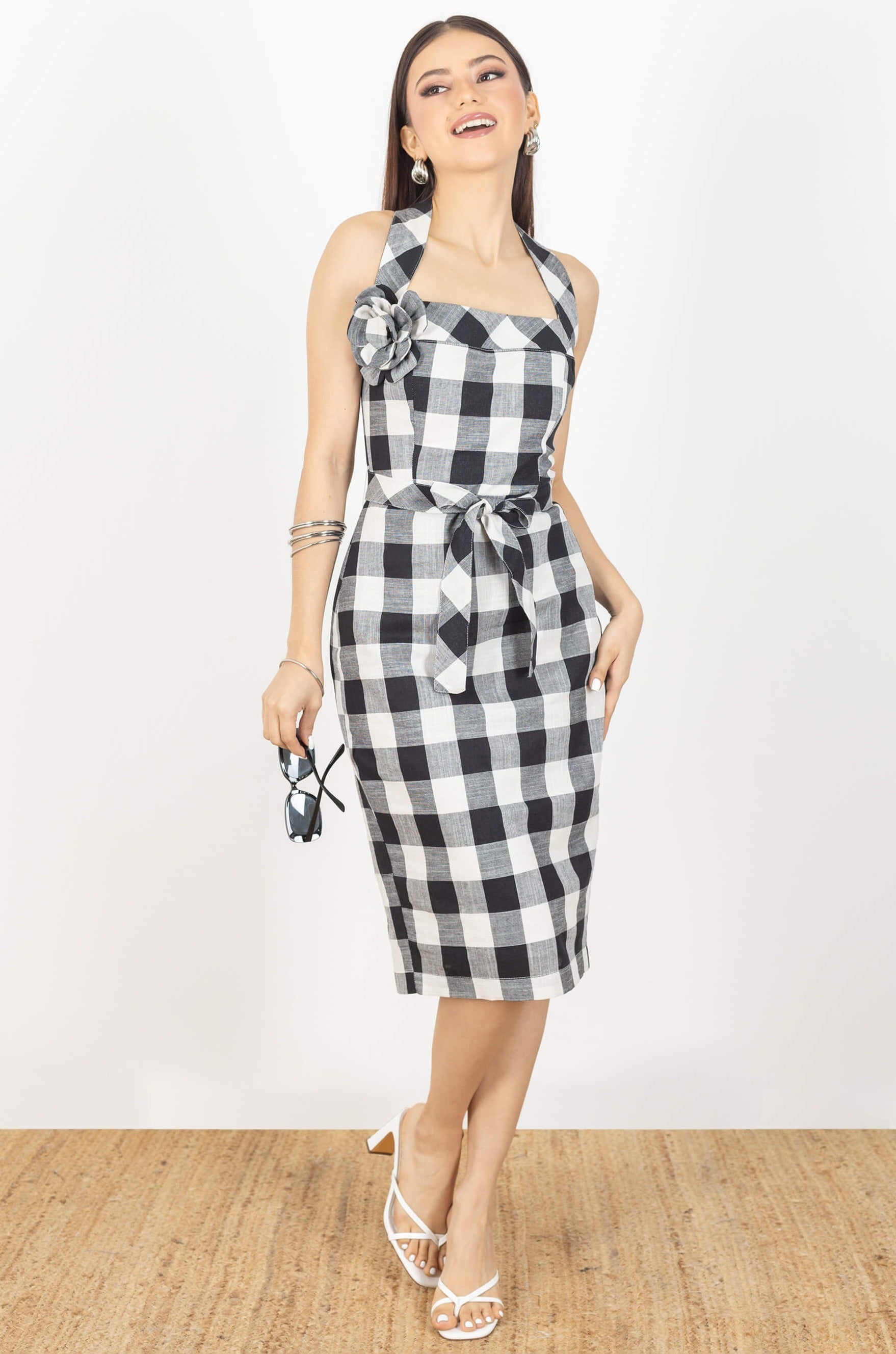 Vestido halter con falda recta