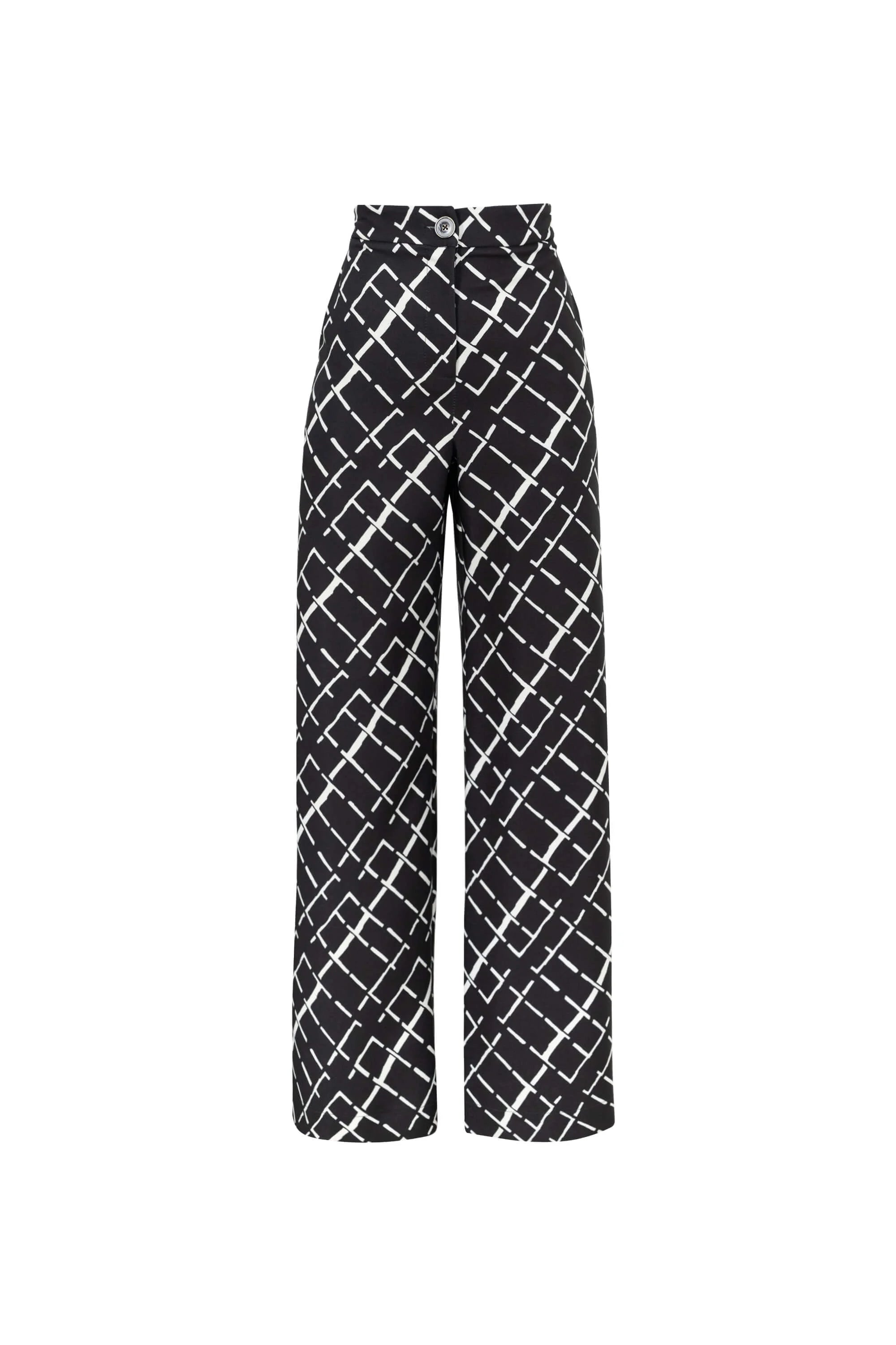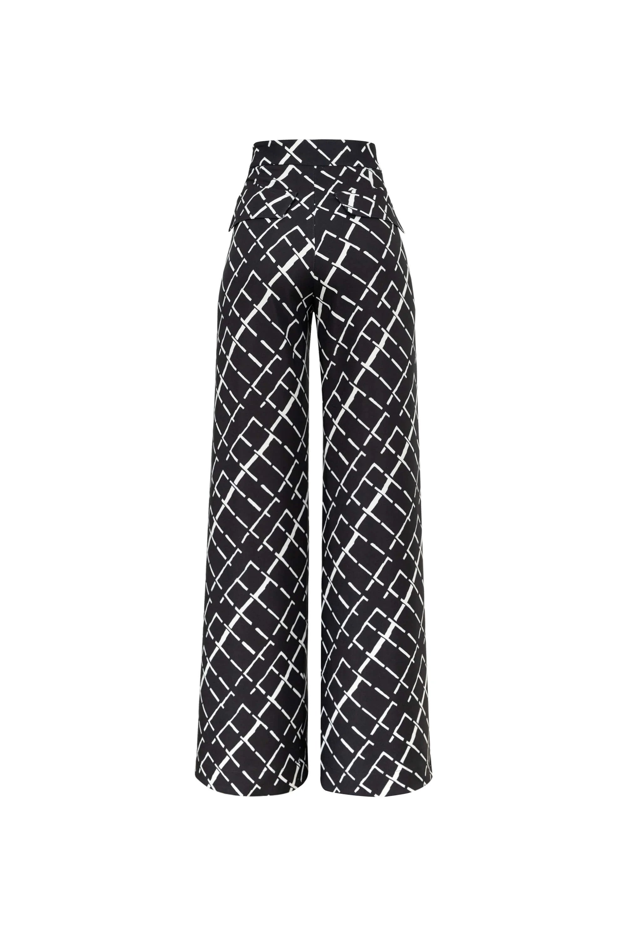 El pantalón recto de Reina Díaz se distingue por su diseño contemporáneo y su estampado geométrico de inspiración gráfica, que aporta carácter y sofisticación inmediata. Su talle alto define la silueta con elegancia, mientras que el corte recto y la caída estructurada equilibran comodidad y presencia. El contraste del diseño crea un efecto visual refinado, ideal para estilismos de día con un enfoque moderno o para looks de noche que buscan fuerza y distinción sin esfuerzo. Una pieza versátil y atemporal, pensada para mujeres que expresan seguridad a través de líneas limpias y diseño consciente.