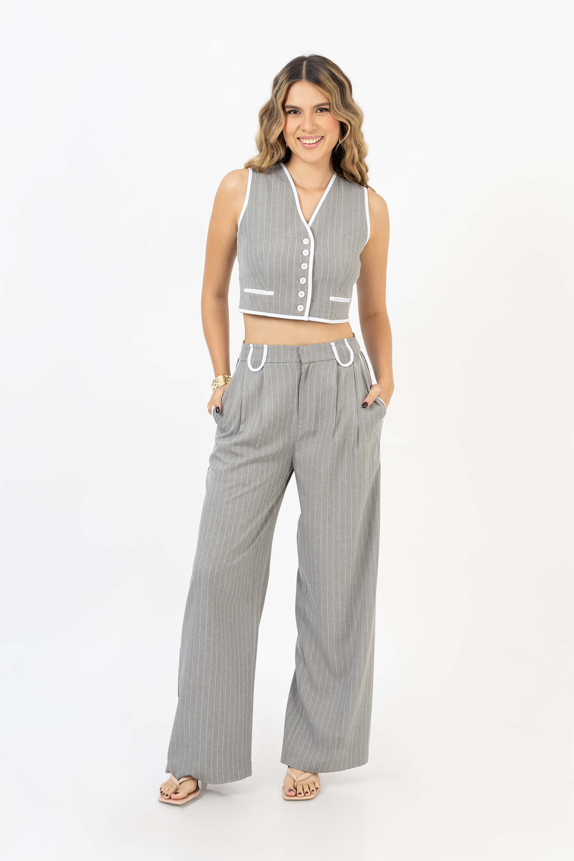 Diseñado con líneas limpias y bies en contraste, este pantalón redefine la sofisticación moderna con un corte que alarga visualmente la silueta. Versátil y refinado, este pantalón representa la elegancia funcional de la mujer contemporánea. Perfecto para eventos, reuniones o un look de oficina con estilo.