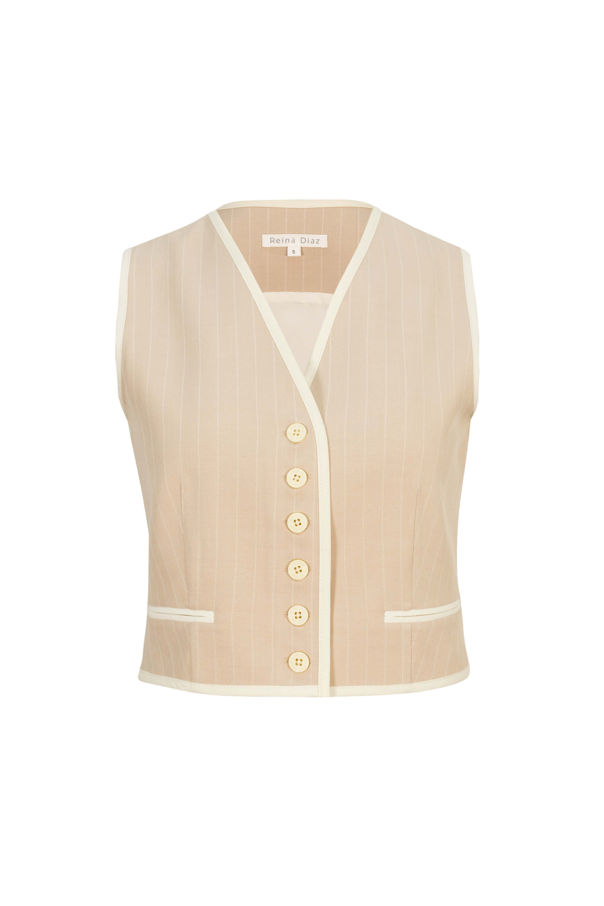 Chaleco femenino con corte sastre y vivos dobles a contraste.
