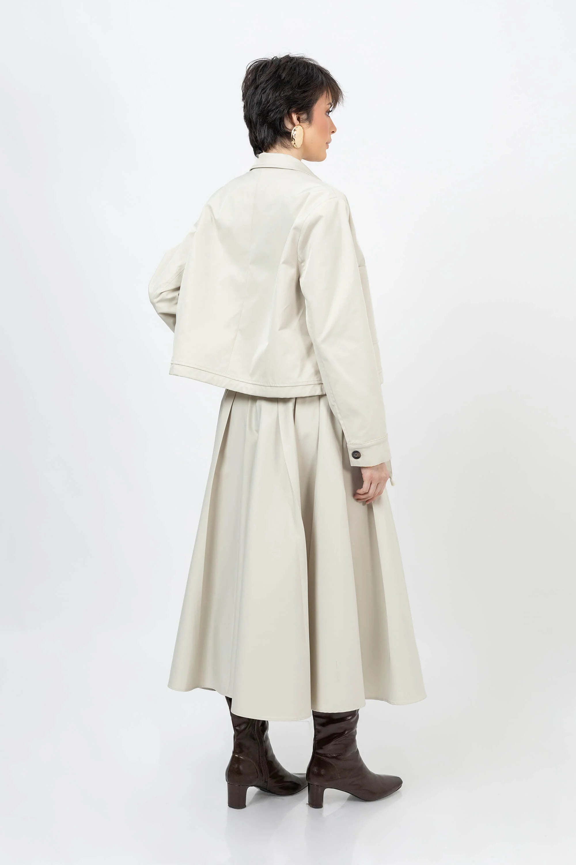 La Chaqueta corta con jareta en cintura de Poet Couture fusiona estilo contemporáneo y comodidad funcional. Confeccionada en tejido suave de alta calidad, presenta un corte moderno con botones frontales y un detalle ajustable en la cintura que realza la silueta femenina. Perfecta para looks casuales con un toque sofisticado, esta prenda es ideal para acompañar desde jeans hasta faldas elegantes.
