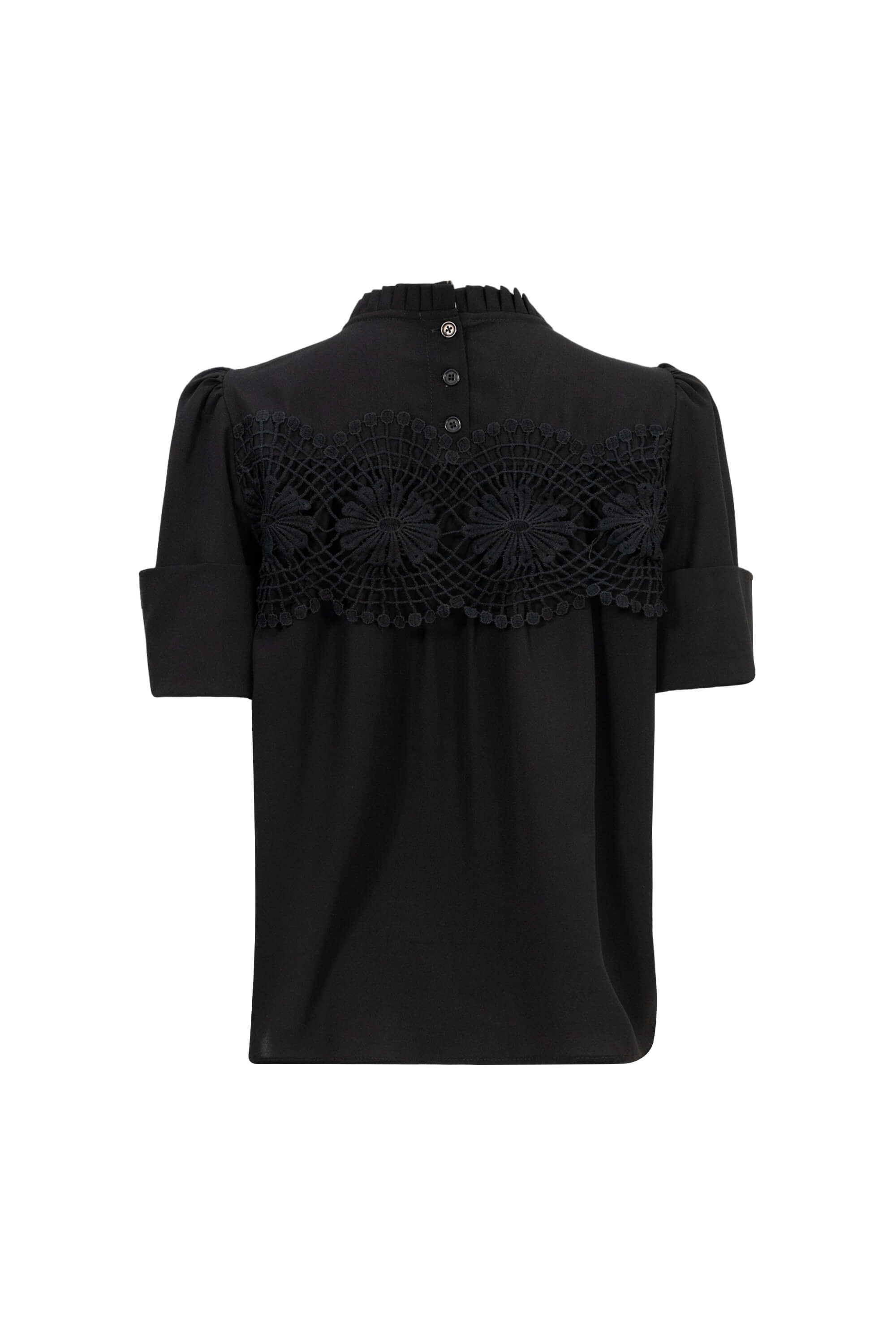 La blusa para fajar con avío en bata de Poet Couture destaca por su elegancia discreta. Su diseño con manga corta, detalles bordados y cuello fruncido aporta un aire refinado ideal para ocasiones formales o combinaciones de oficina con un toque moderno.