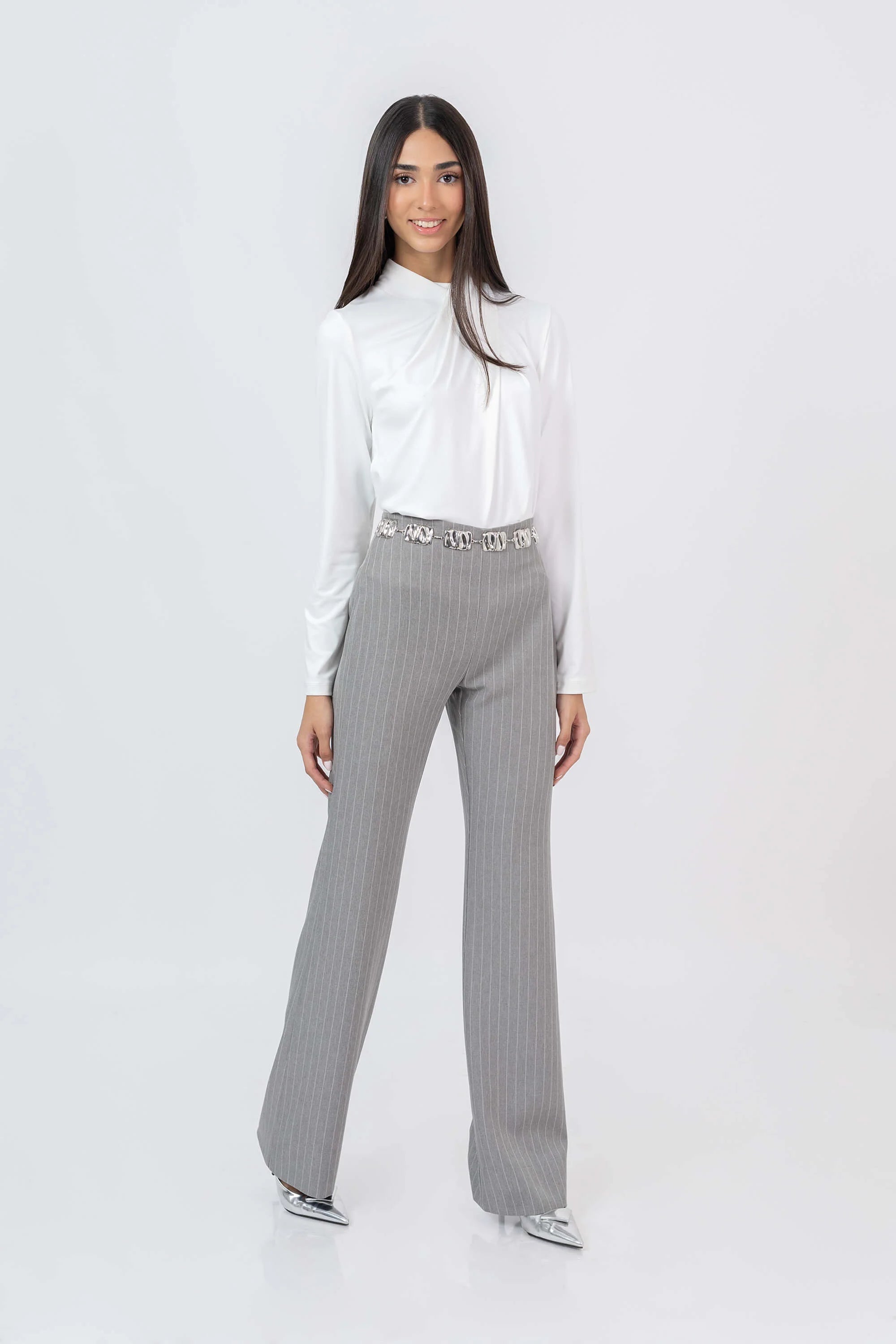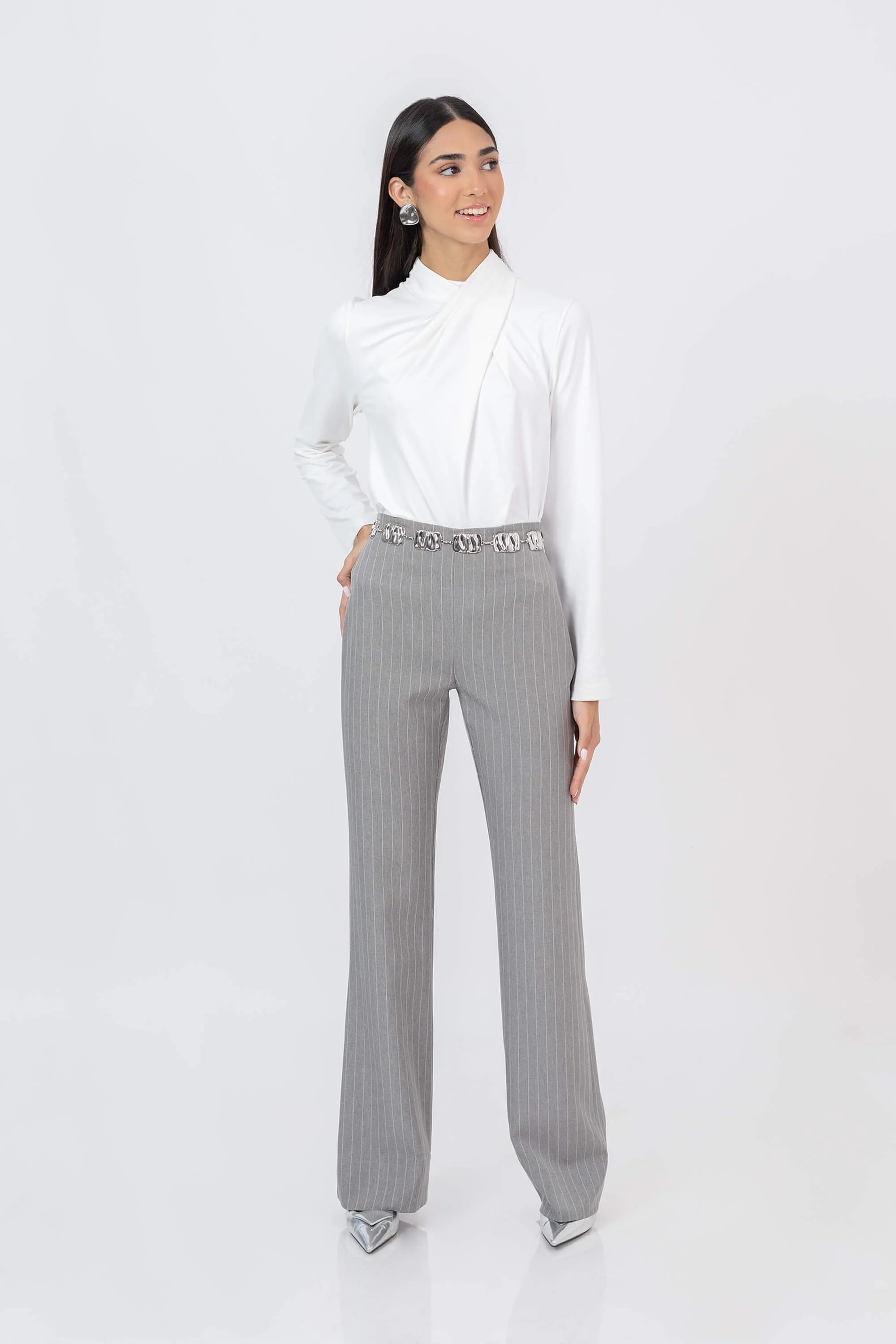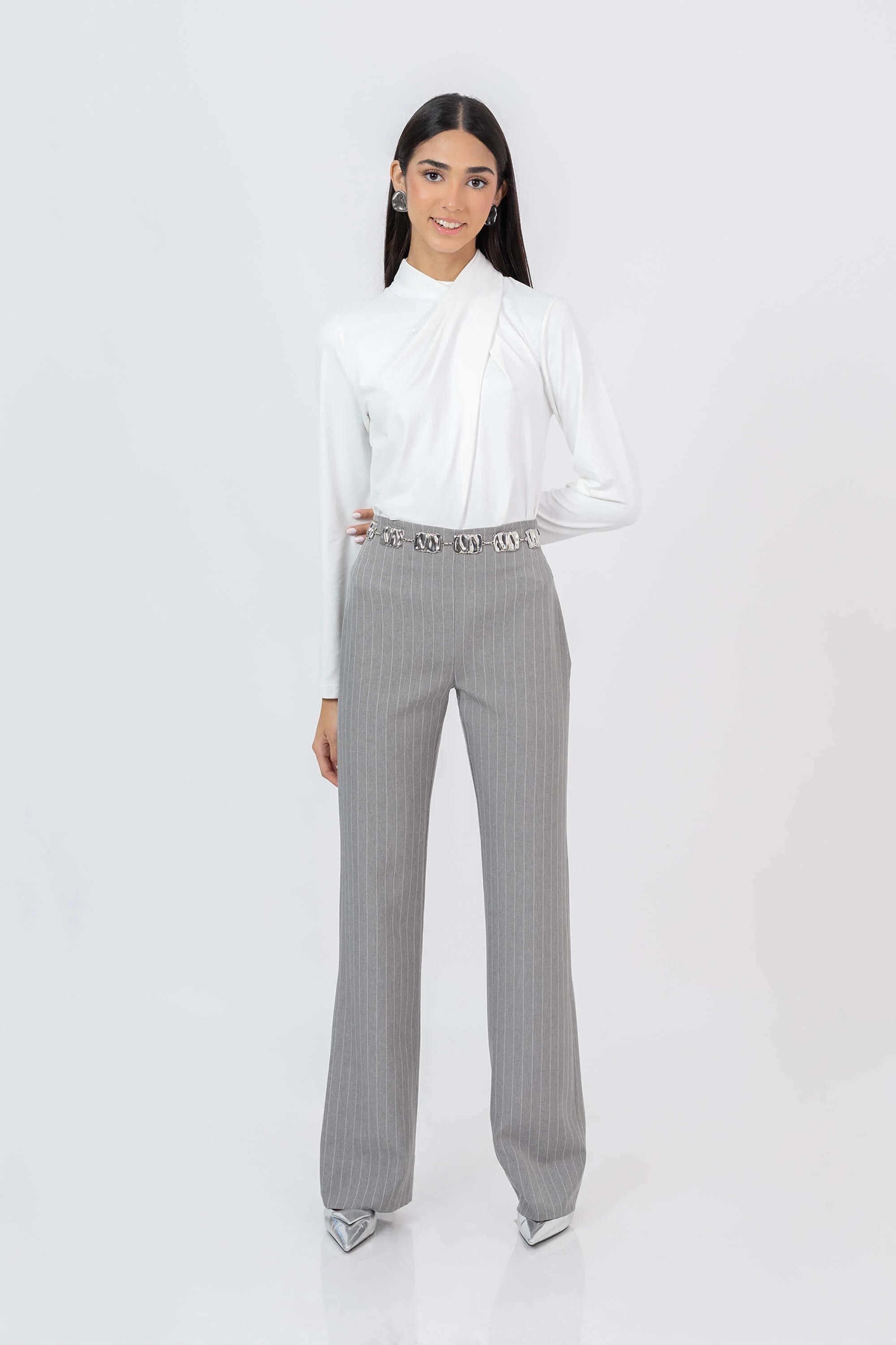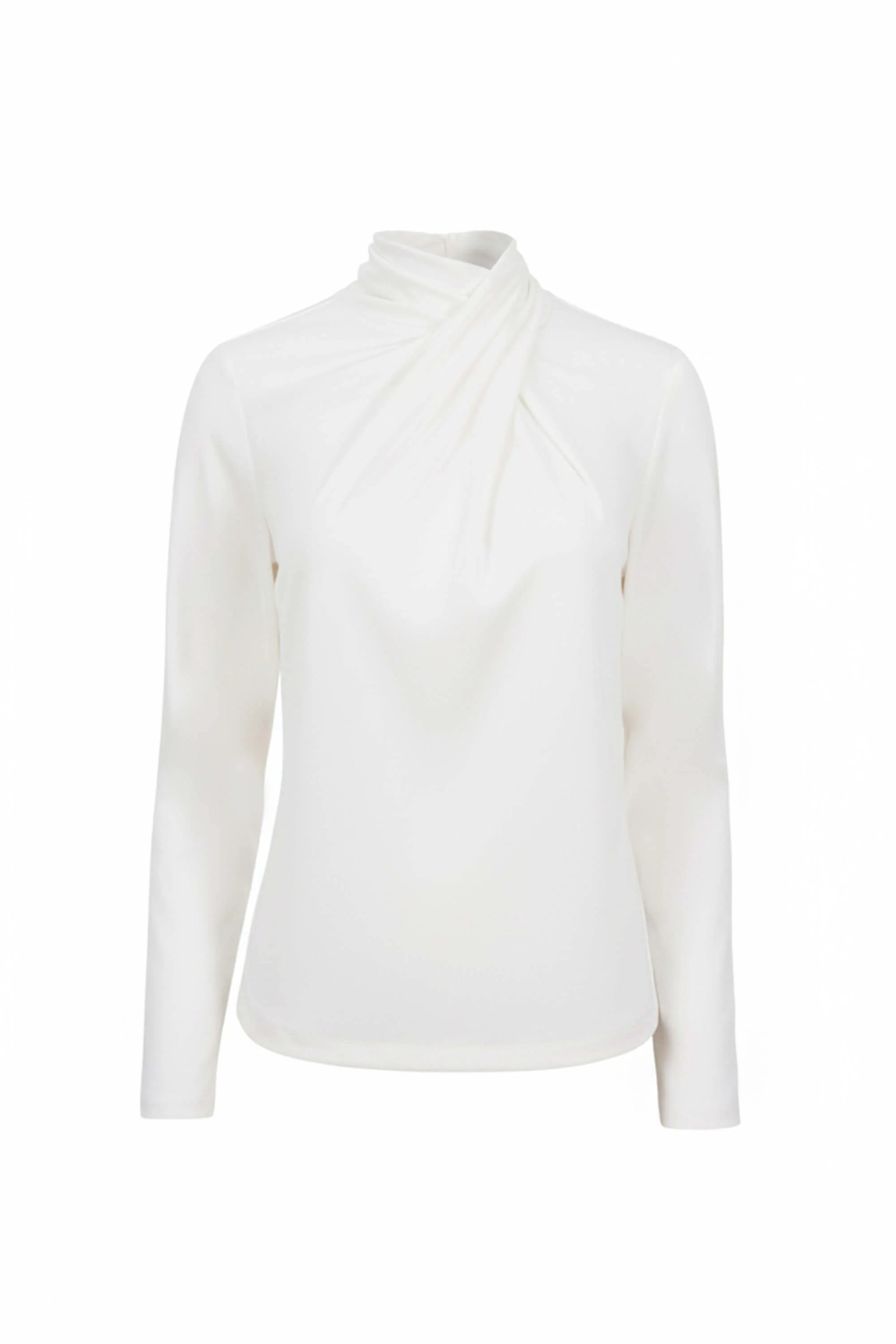 La blusa asimétrica manga larga redefine la elegancia contemporánea. Su cuello drapeado con caída lateral crea un detalle visual sofisticado que realza la silueta, mientras que el diseño minimalista aporta versatilidad y modernidad.