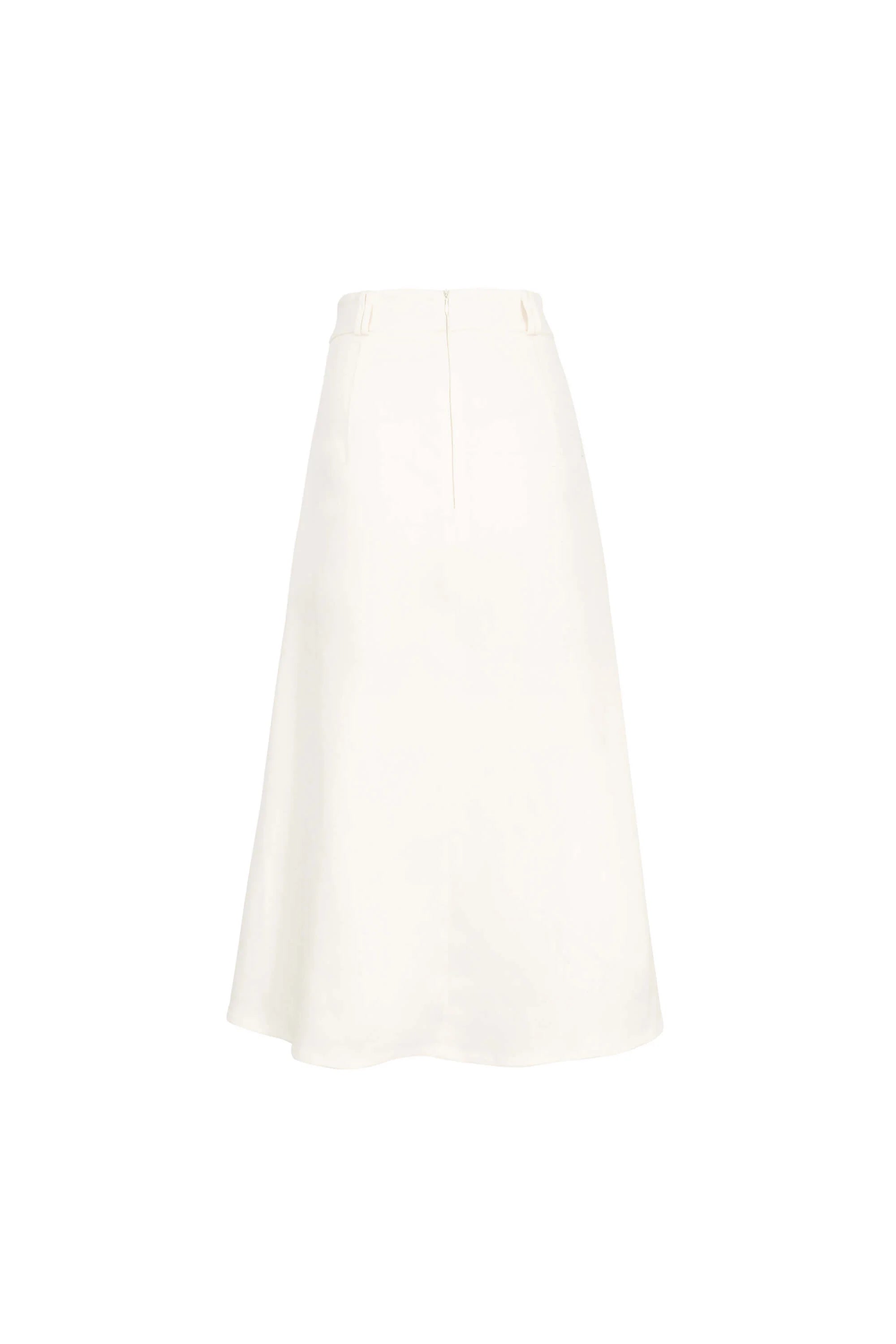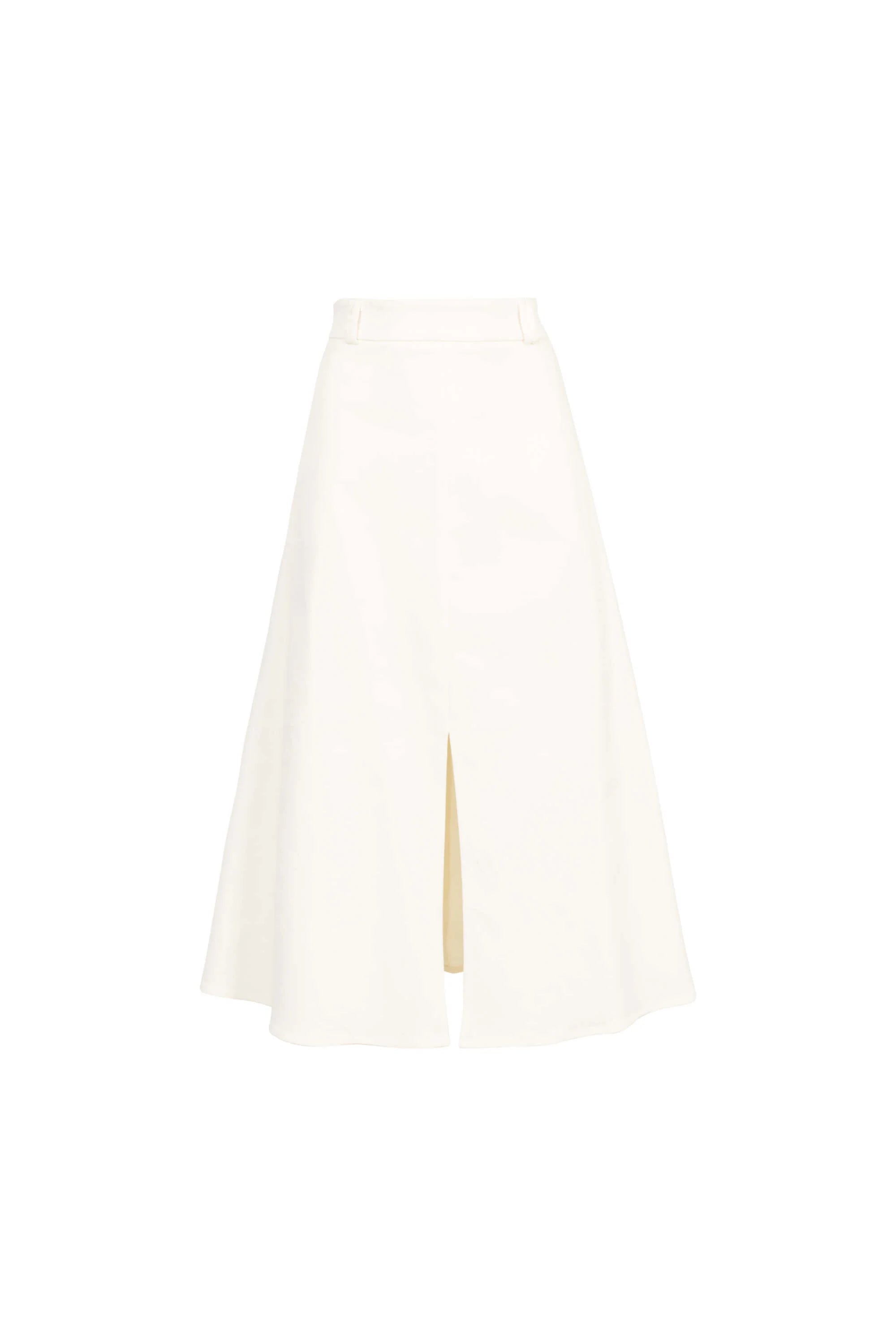 La falda corte tipo A con abertura es un homenaje a la elegancia minimalista y a la feminidad contemporánea. Confeccionada en un tono arena y sofisticado, esta prenda ofrece una silueta estructurada que realza la figura sin perder comodidad.