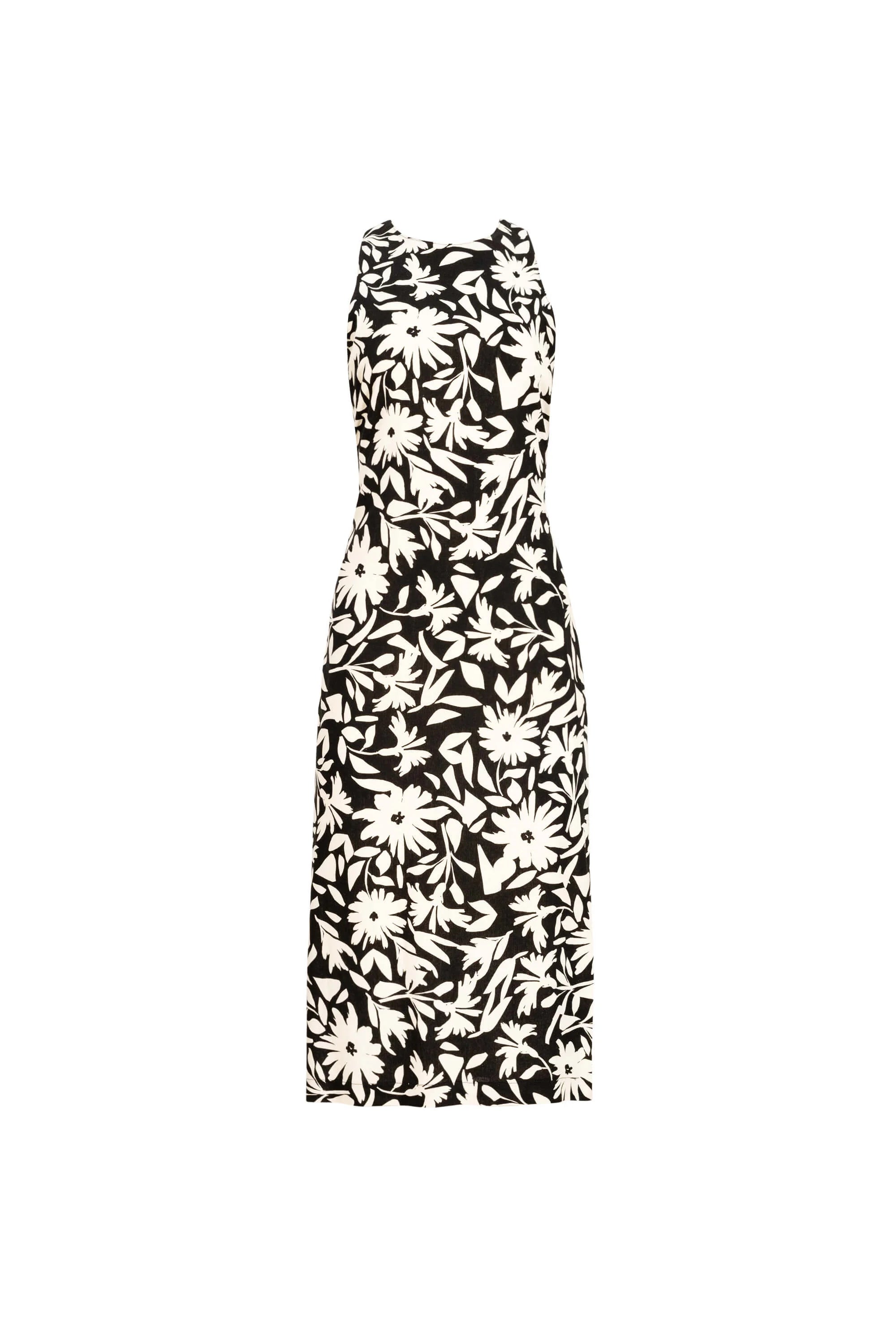 Este vestido largo destaca por su silueta entallada al cuerpo con un diseño resacado que estiliza hombros y brazos. El escote tipo halter se combina con un largo elegante para crear una prenda versátil y sofisticada.