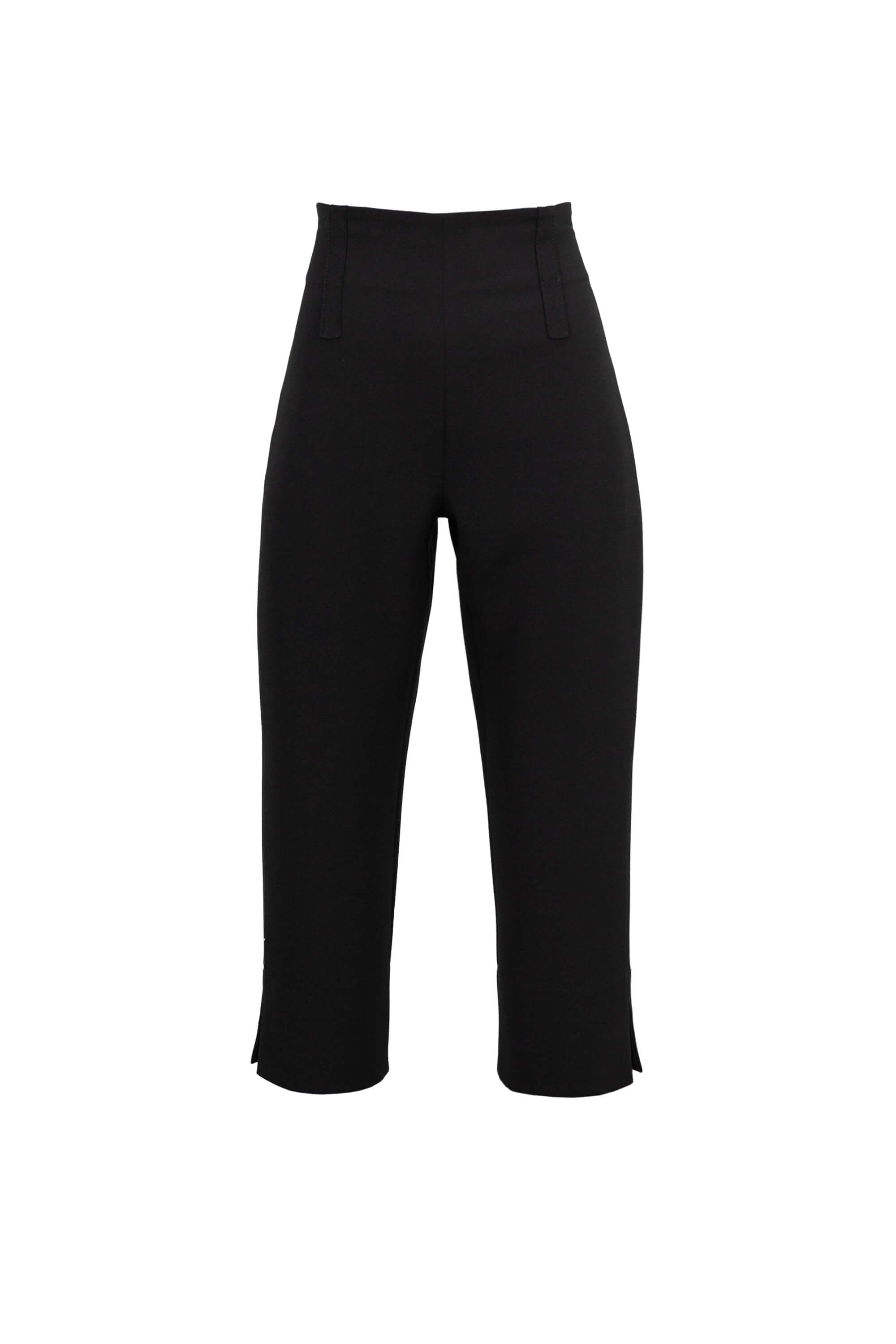 Este pantalón destaca por su impecable silueta de pierna recta y corte cropped, diseñada para estilizar visualmente la figura y proyectar una imagen de frescura sastre contemporánea. El punto focal de diseño es su talle ultra alto con costuras verticales acentuadas, que añaden una estructura arquitectónica y una verticalidad infinita a la parte superior de la prenda. Se caracteriza por incorporar pequeñas aberturas laterales en el bajo, un detalle refinado que aporta movimiento y modernidad al diseño.
