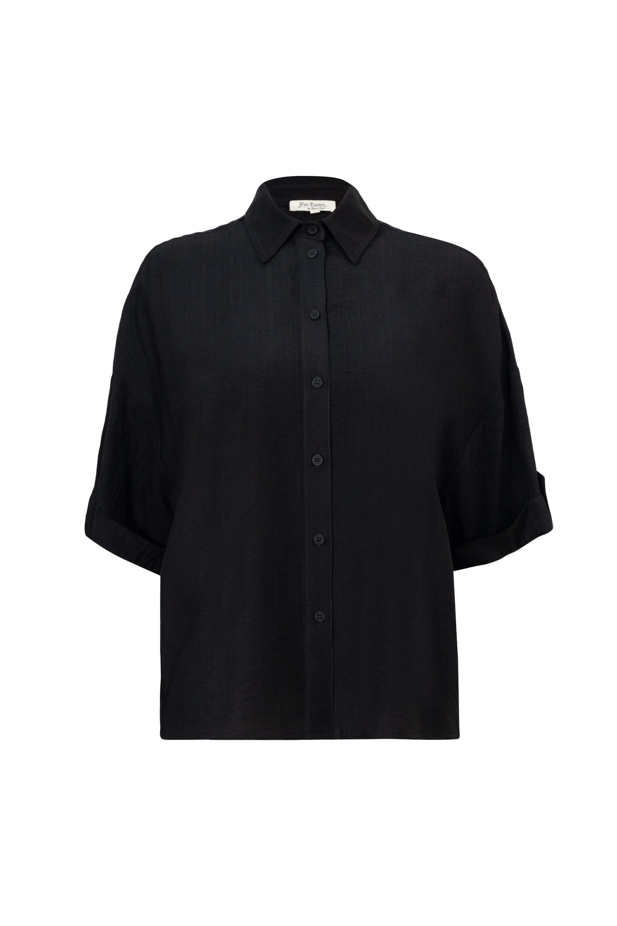 Limpieza visual, comodidad y elegancia relajada definen esta camisa de Poet Couture. Su corte crop aporta un aire moderno, mientras que la manga amplia crea una silueta fluida que equilibra estructura y movimiento.