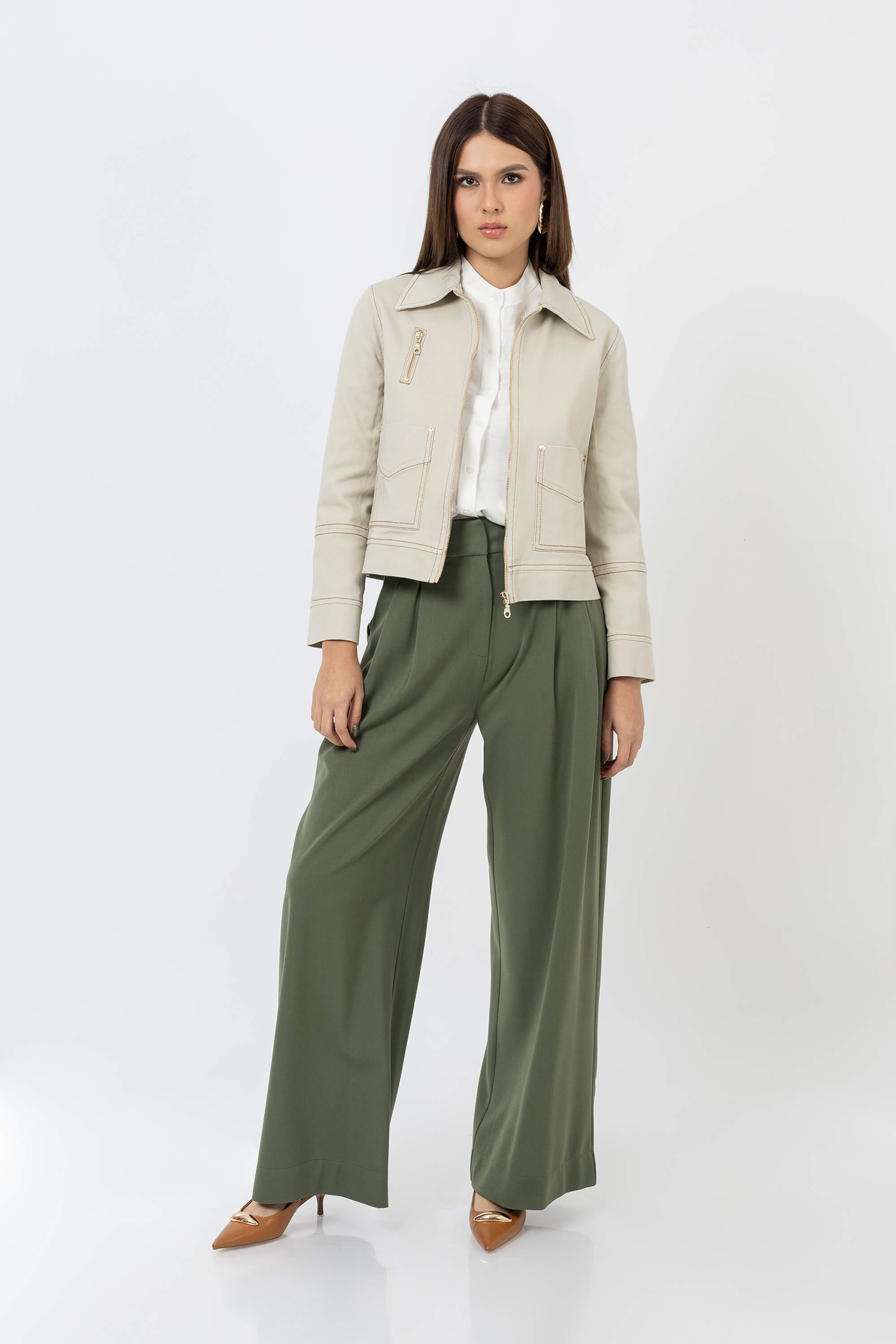 La chamarra con bolsas al frente y doble cierre  es una pieza atemporal que redefine la sofisticación casual. Su silueta estructurada destaca por el detalle funcional de las bolsas frontales y el doble cierre metálico, que aportan modernidad y estilo práctico.