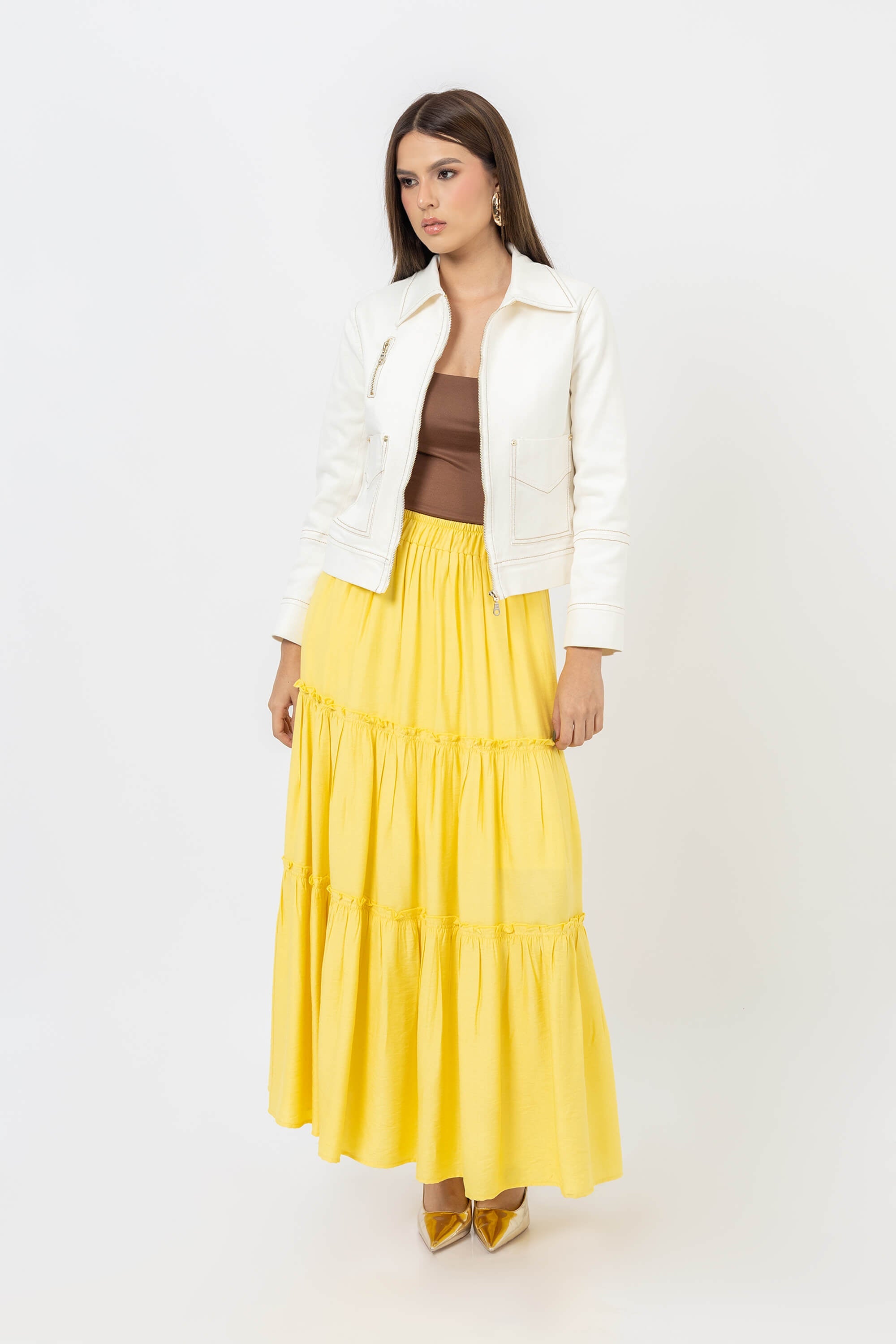 Confeccionada con materiales de alta calidad, esta prenda es ideal para complementar atuendos urbanos o elevar looks más formales con un aire contemporáneo.