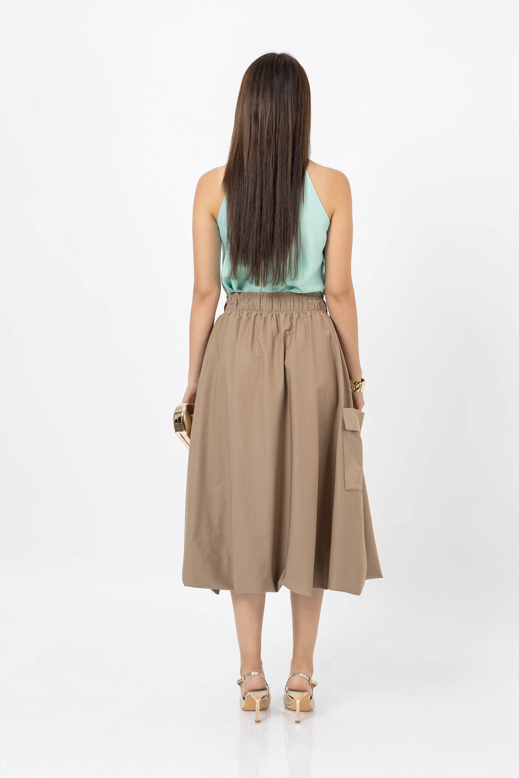 El modelo ofrece un ajuste evasé relajado que fluye con suavidad hasta la cadera, garantizando libertad de movimiento y una comodidad absoluta. La parte posterior mantiene la limpieza visual del diseño con una cremallera invisible central que asegura un cierre pulcro y facilita el ajuste sin interrumpir las líneas minimalistas del top. Es una pieza de diseño de autor ideal para la mujer que busca el equilibrio perfecto entre la nobleza de los materiales naturales y detalles de confección vanguardistas.