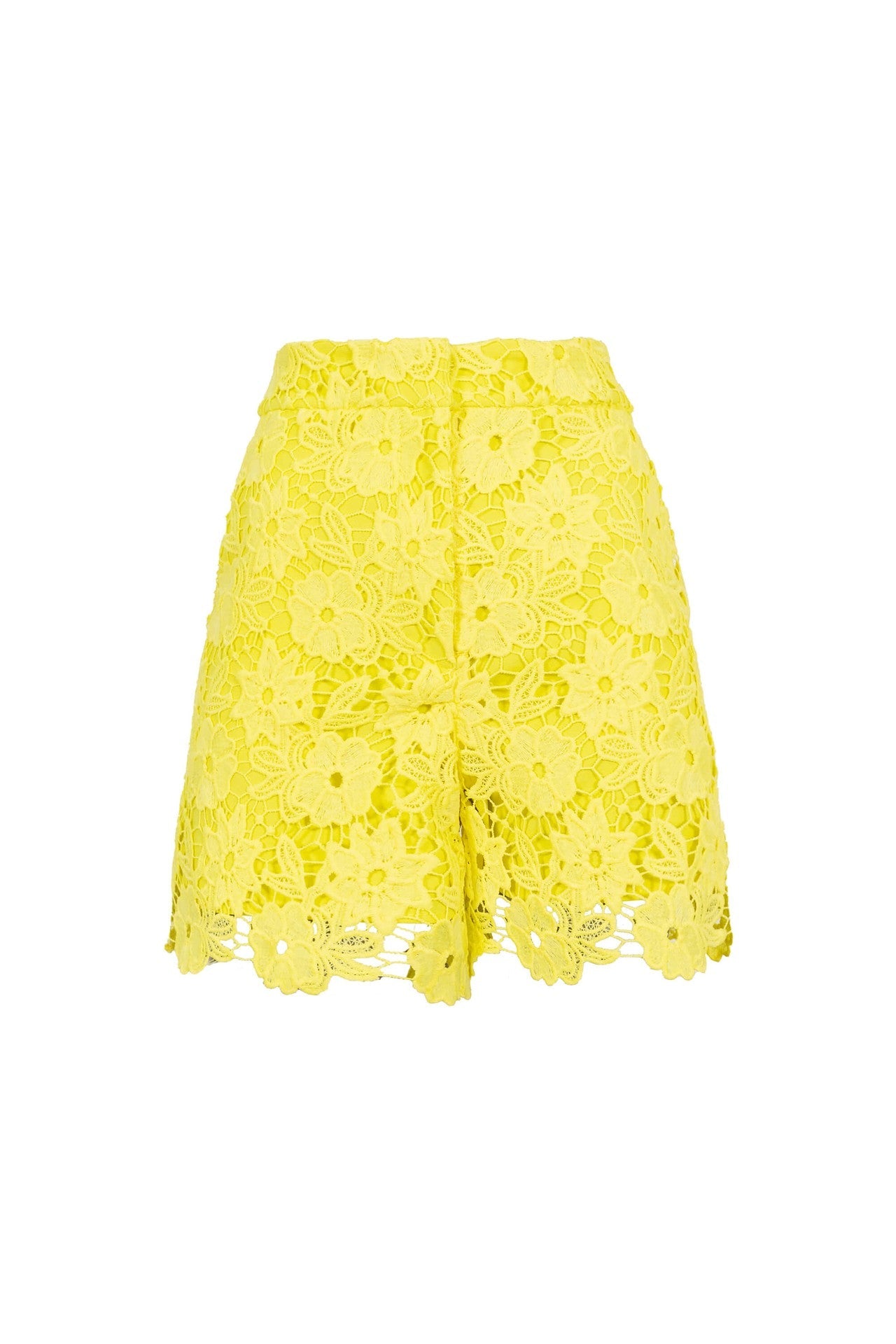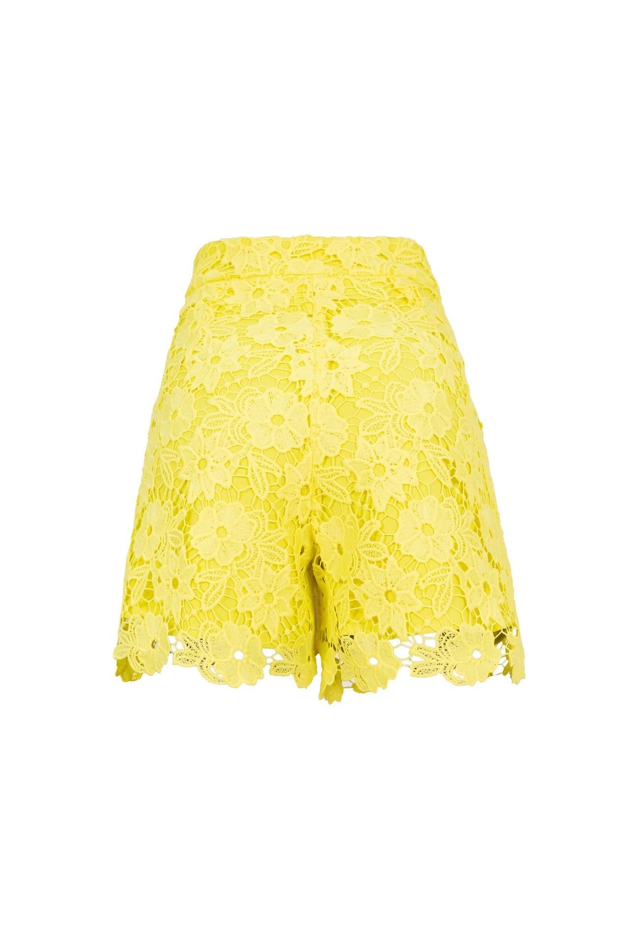 Este short de tiro alto destaca por su exquisita construcción en encaje guipur con un patrón floral intrincado. Presenta una silueta ligeramente evasé que aporta frescura y feminidad, acentuada por un bajo festoneado que sigue el contorno natural de las flores del tejido. Es una pieza diseñada para eventos de etiqueta que buscan un equilibrio entre la sofisticación clásica y la modernidad.