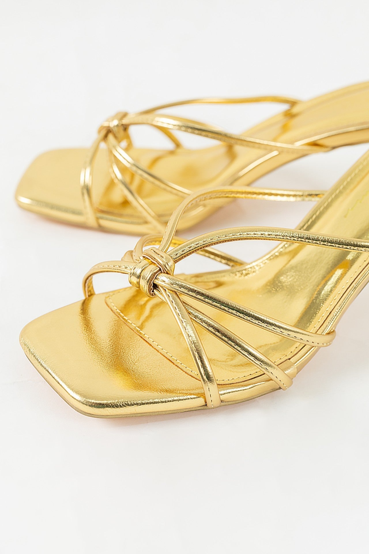 Estas sandalias representan la esencia del minimalismo moderno y la sofisticación lineal. El diseño destaca por un intrincado juego de tiras tubulares delgadas que convergen en un elegante detalle de nudo central, creando una estética orgánica y ligera sobre el empeine. Su silueta de punta cuadrada definida aporta un aire de tendencia arquitectónica, proyectando una imagen de lujo contemporáneo y una versatilidad absoluta para el armario de temporada.