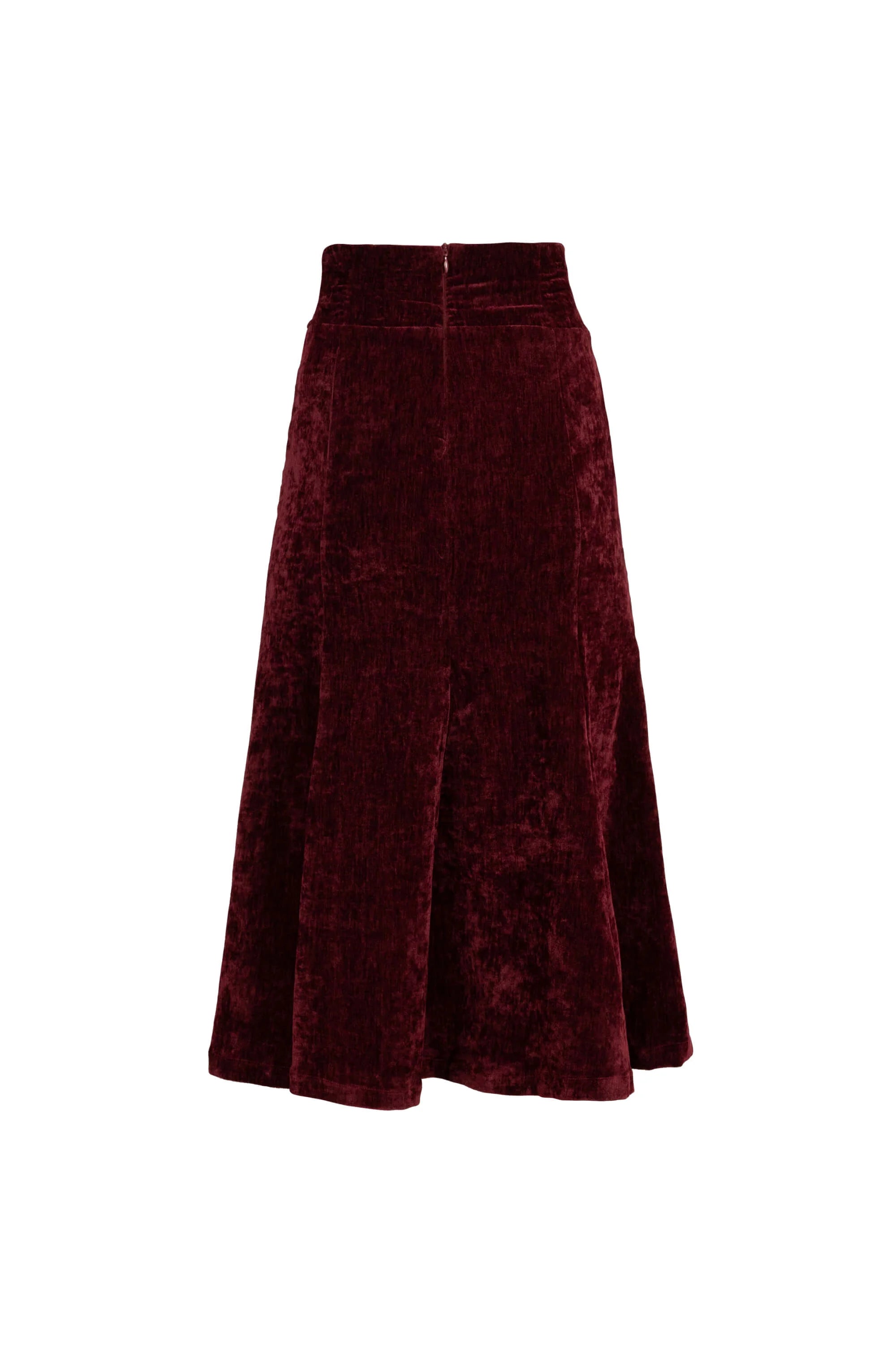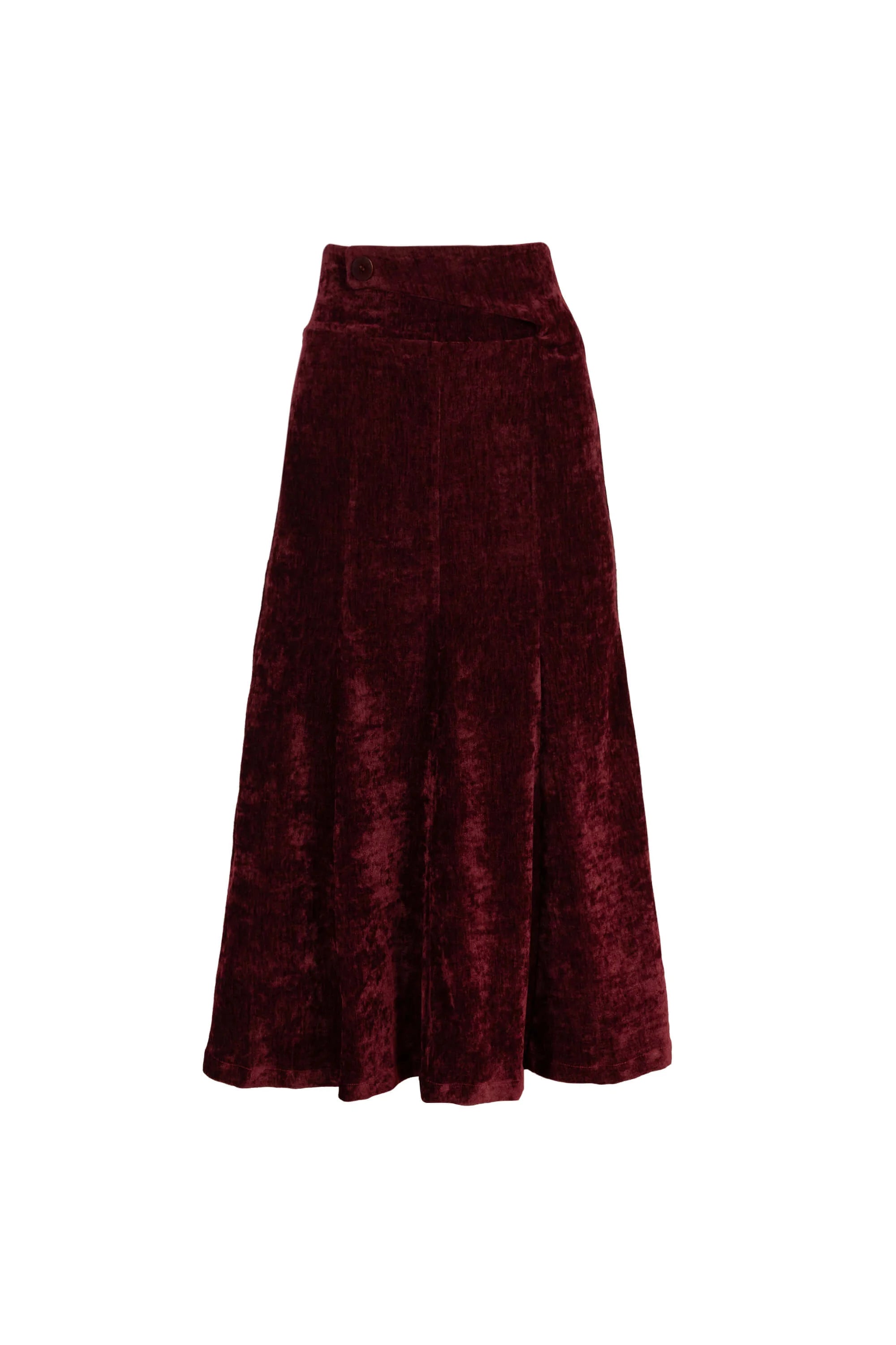 La falda midi de terciopelo de Reina Díaz destaca por su elegancia atemporal y su textura suave de acabado aterciopelado. Su diseño de talle alto estiliza la silueta, mientras que su caída fluida aporta movimiento y sofisticación a cada paso. El tono profundo añade un aire refinado, ideal para looks de día con un toque chic o combinaciones de noche que buscan protagonismo y distinción. Una pieza versátil que eleva cualquier outfit con elegancia natural.