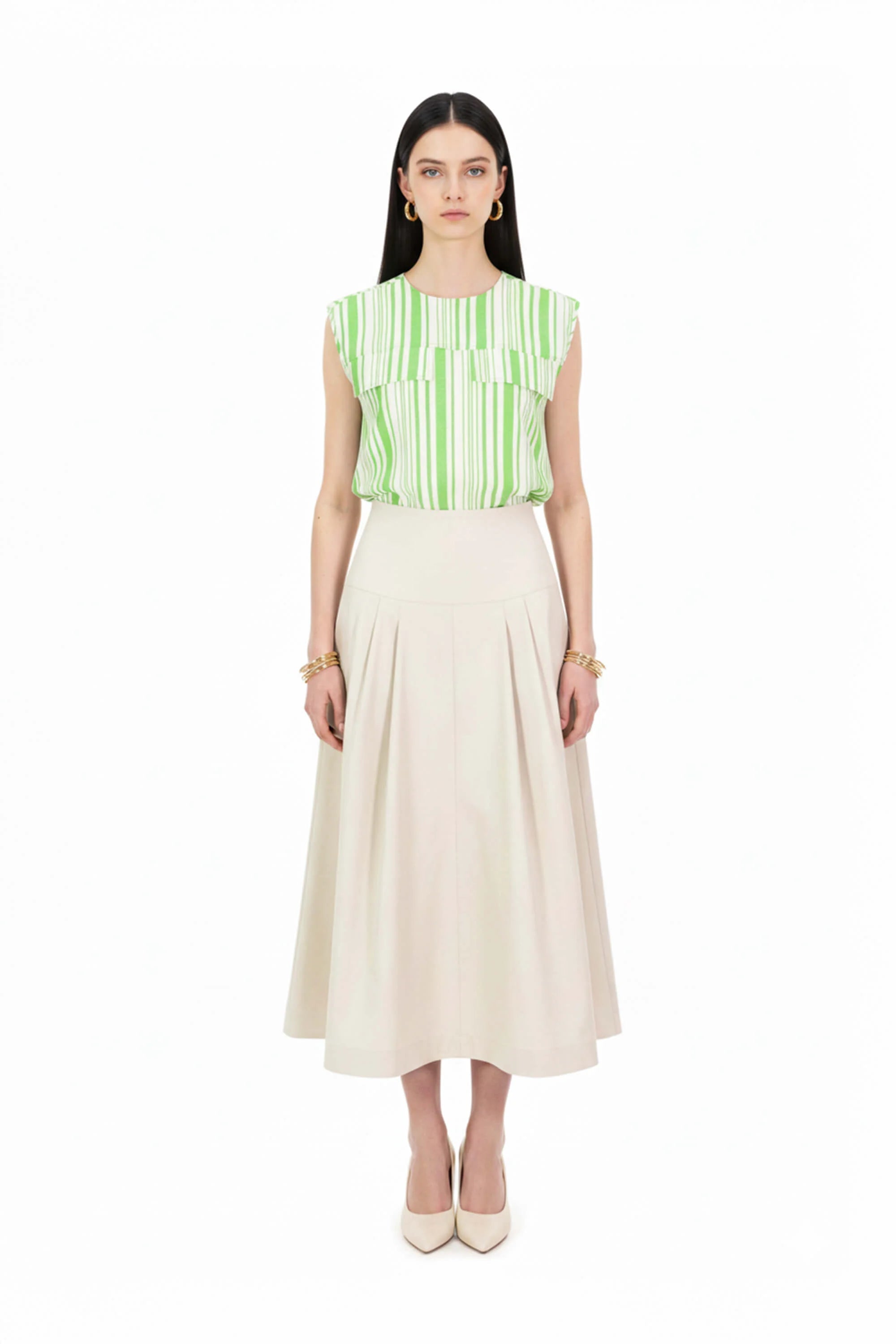 Falda midi amplia diseño atemporal y sofisticado.