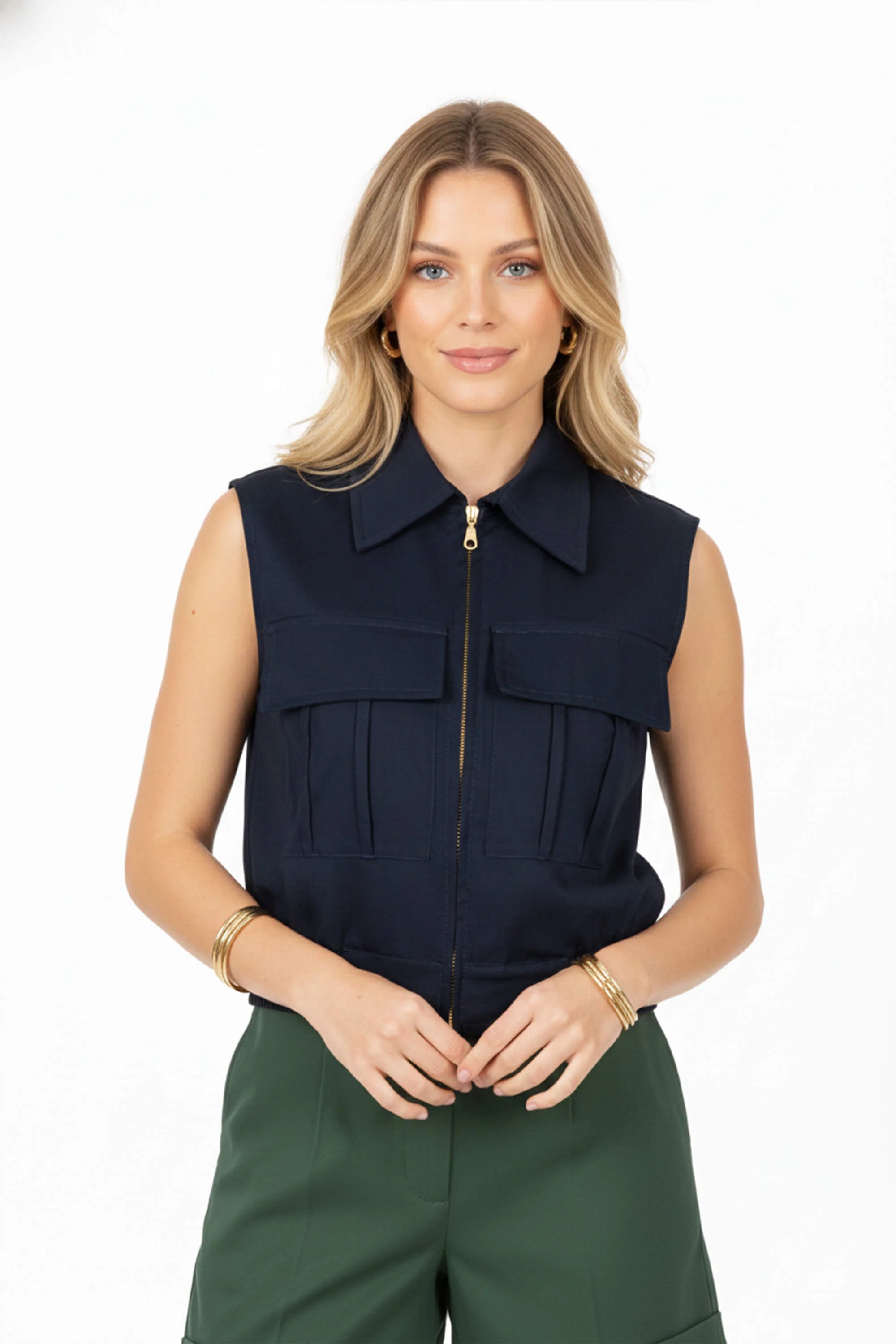 El modelo ofrece un ajuste de precisión sastre, incorporando una pretina técnica con trabillas reforzadas y un cierre frontal de botón tonal que mantiene la limpieza visual del diseño. La parte posterior presenta un acabado impecable con un bolsillo de parche asimétrico de líneas minimalistas, un detalle técnico que realza la silueta de forma sutil y moderna. Los acabados de alta gama definen este short como un esencial indispensable para la mujer que busca piezas de inversión que fusionen la comodidad de las fibras naturales con la vanguardia de la sastrería femenina.