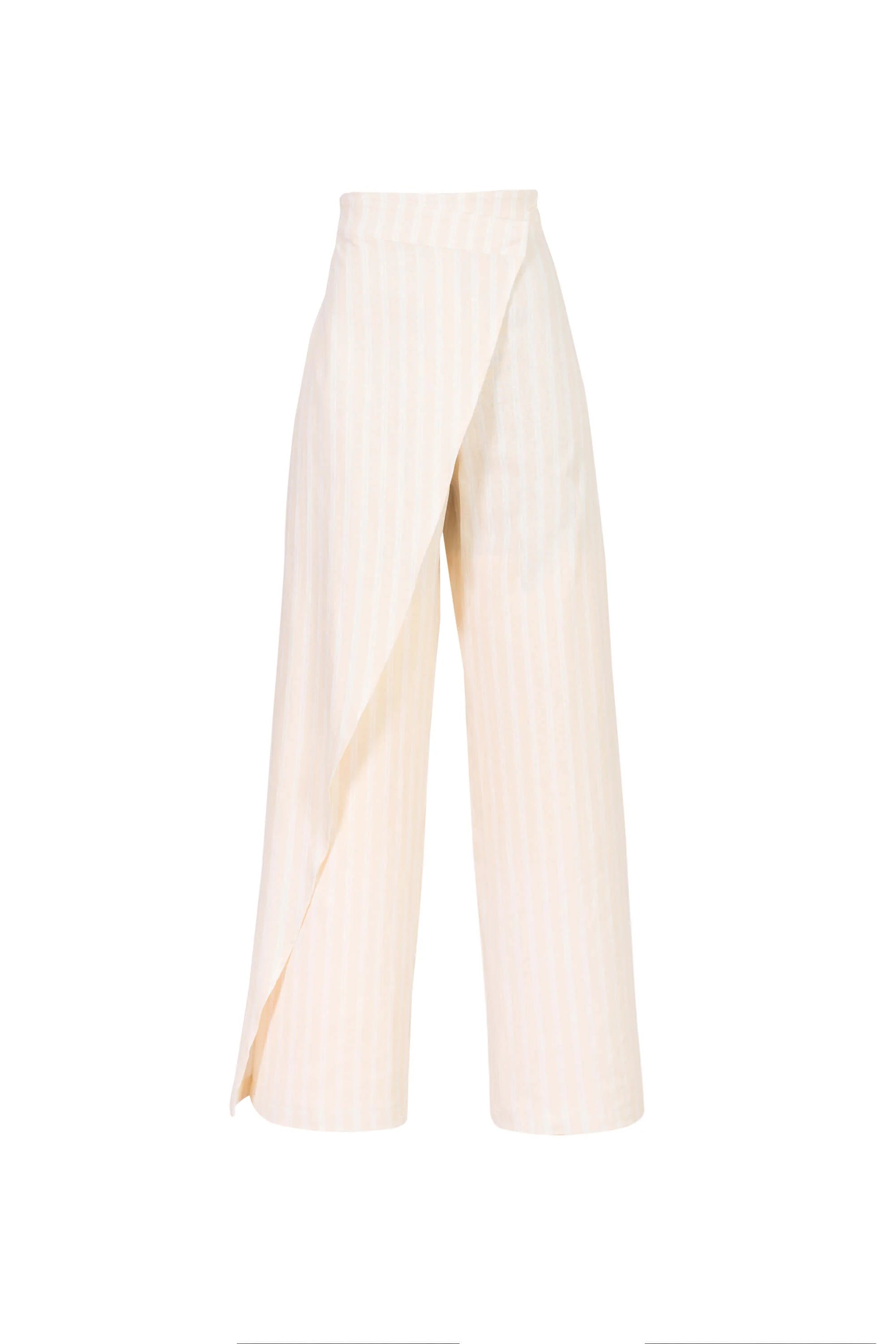 Pantalón recto color natural con pareo frontal.