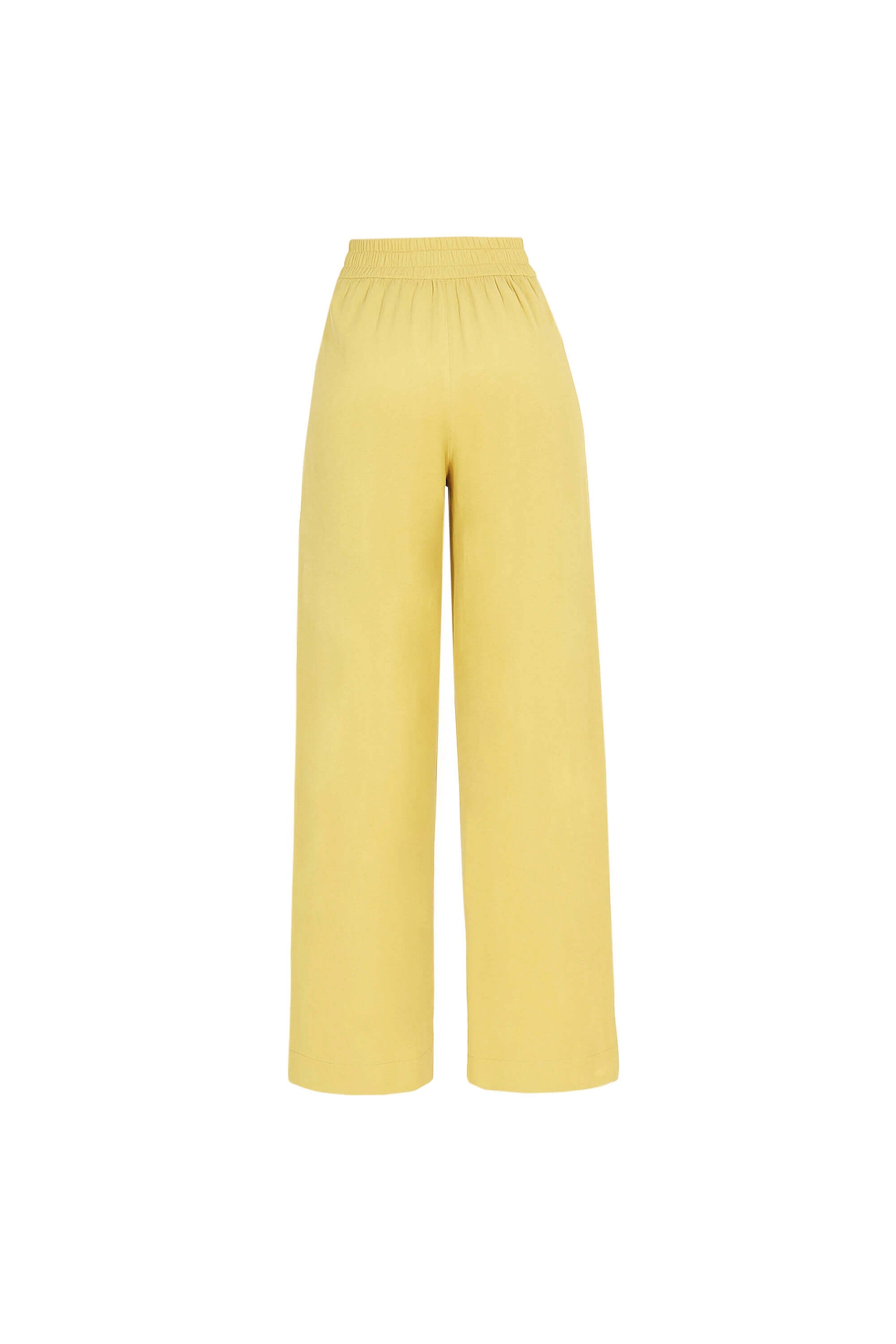 Pantalón pierna amplia con elástico en cintura.