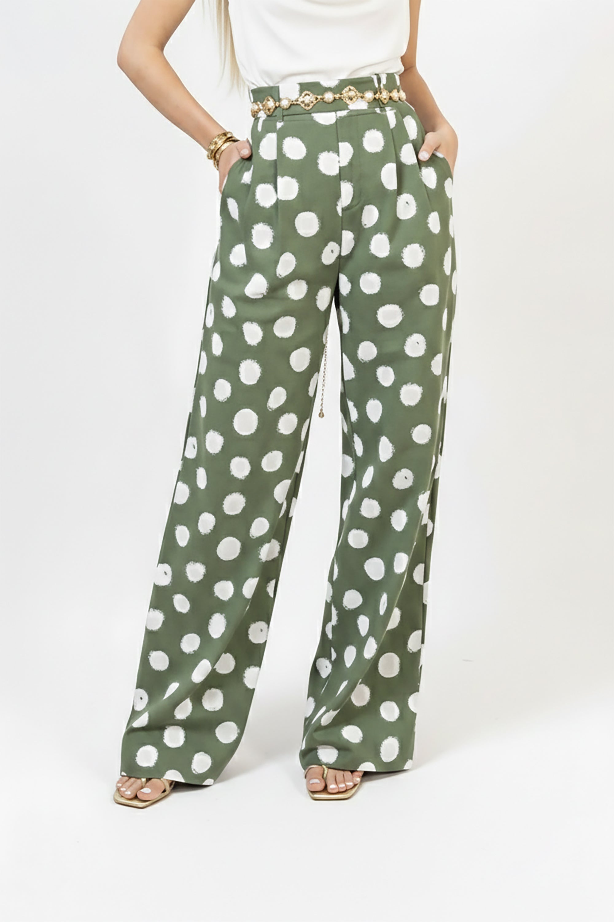Pantalón algodón pliegues en delantero