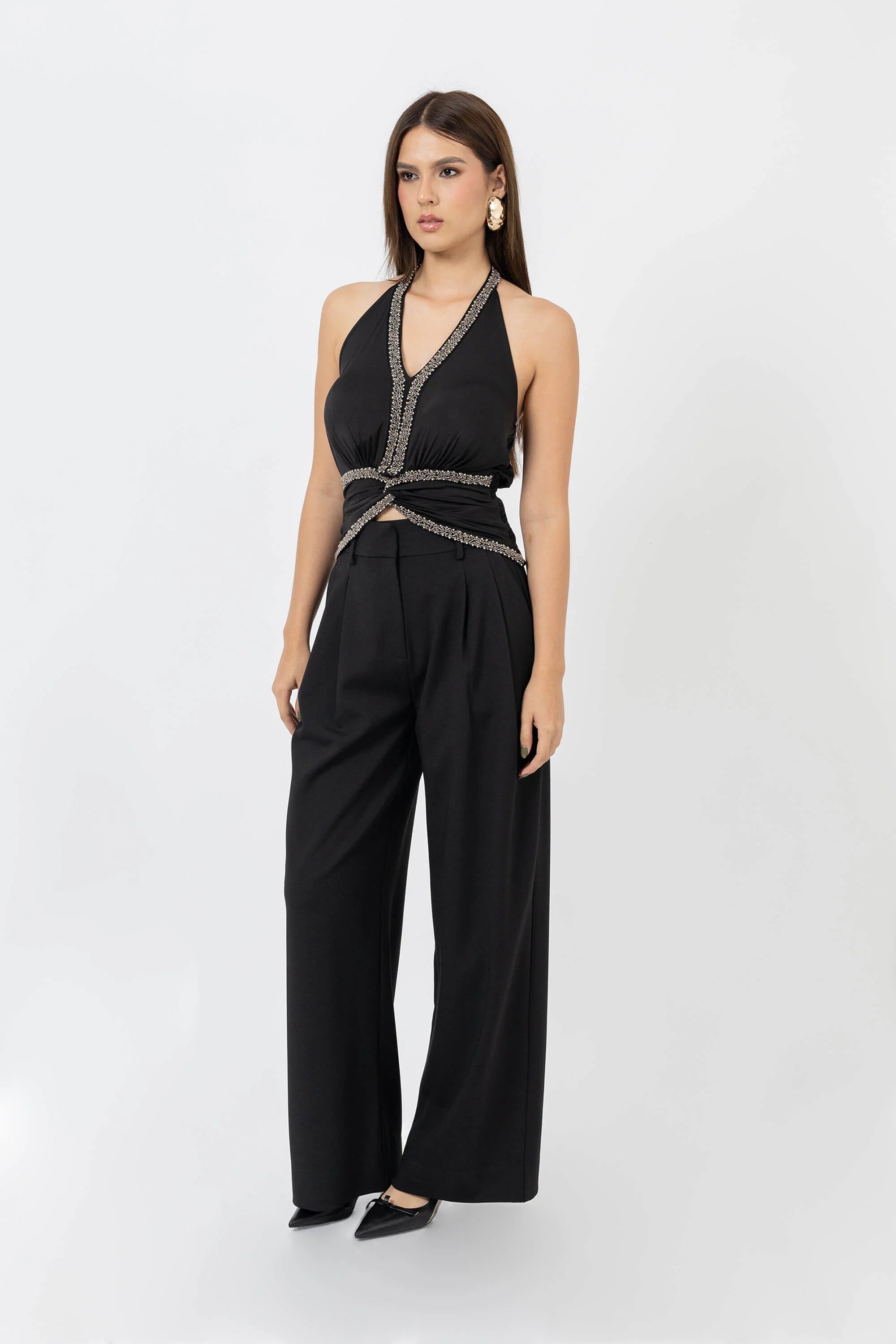 El pantalón largo wide leg de Reina Díaz redefine la elegancia contemporánea a través de un diseño minimalista y una confección impecable. Su silueta amplia y caída fluida aportan movimiento y sofisticación, mientras que la cintura estructurada estiliza la figura con precisión. Ideal para complementar blusas ligeras o sacos de la colección, esta pieza representa el equilibrio perfecto entre comodidad, distinción y la estética refinada característica de Reina Díaz.