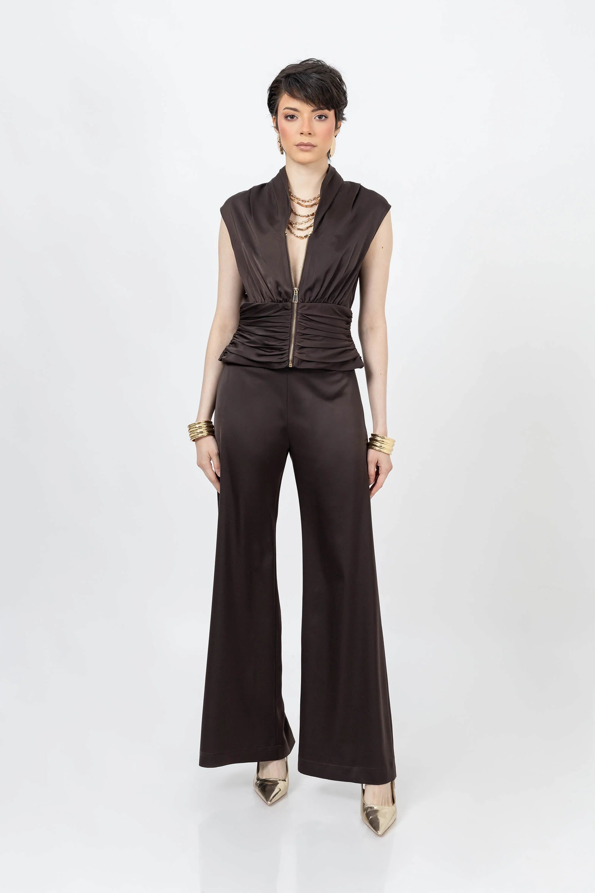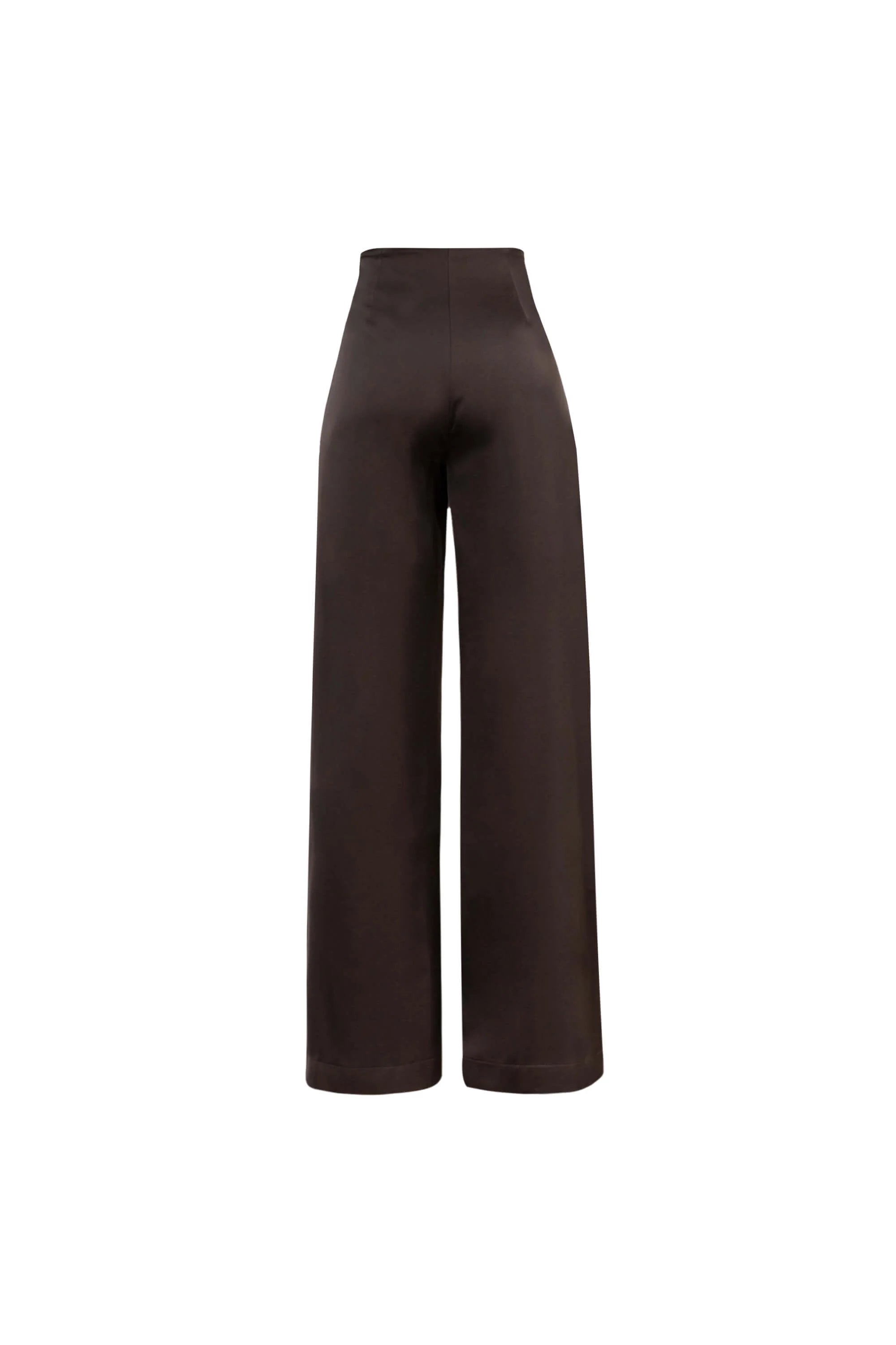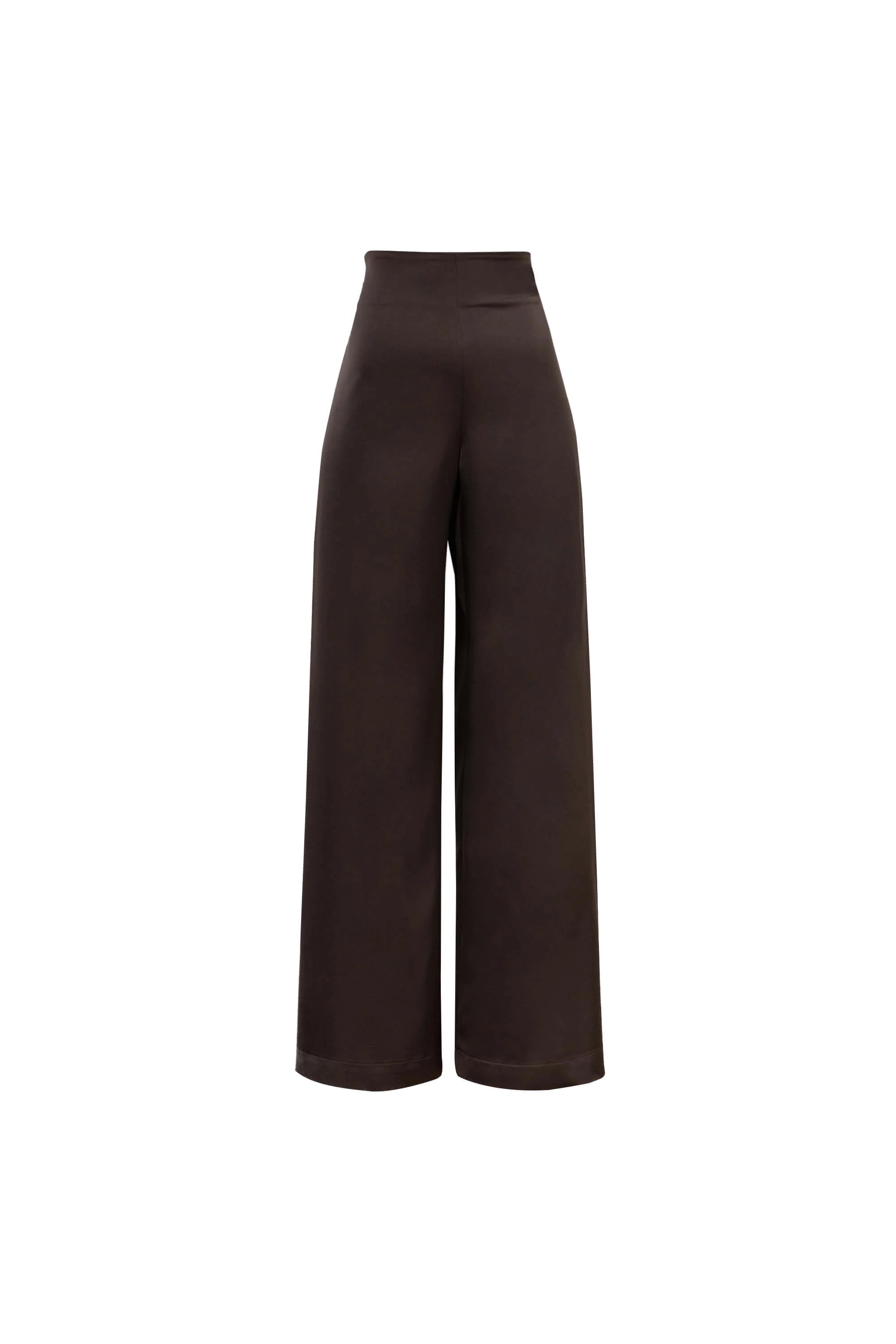 El Pantalón satinado de pierna amplia con caída de Reina Díaz redefine la elegancia moderna con un diseño fluido y sofisticado. Su textura satinada aporta un brillo sutil que realza la silueta, mientras su corte amplio ofrece movimiento y comodidad. Ideal para combinar con blusas estructuradas o tops minimalistas, esta prenda es una expresión de lujo contemporáneo y atemporalidad, perfecta para eventos formales o looks de noche refinados