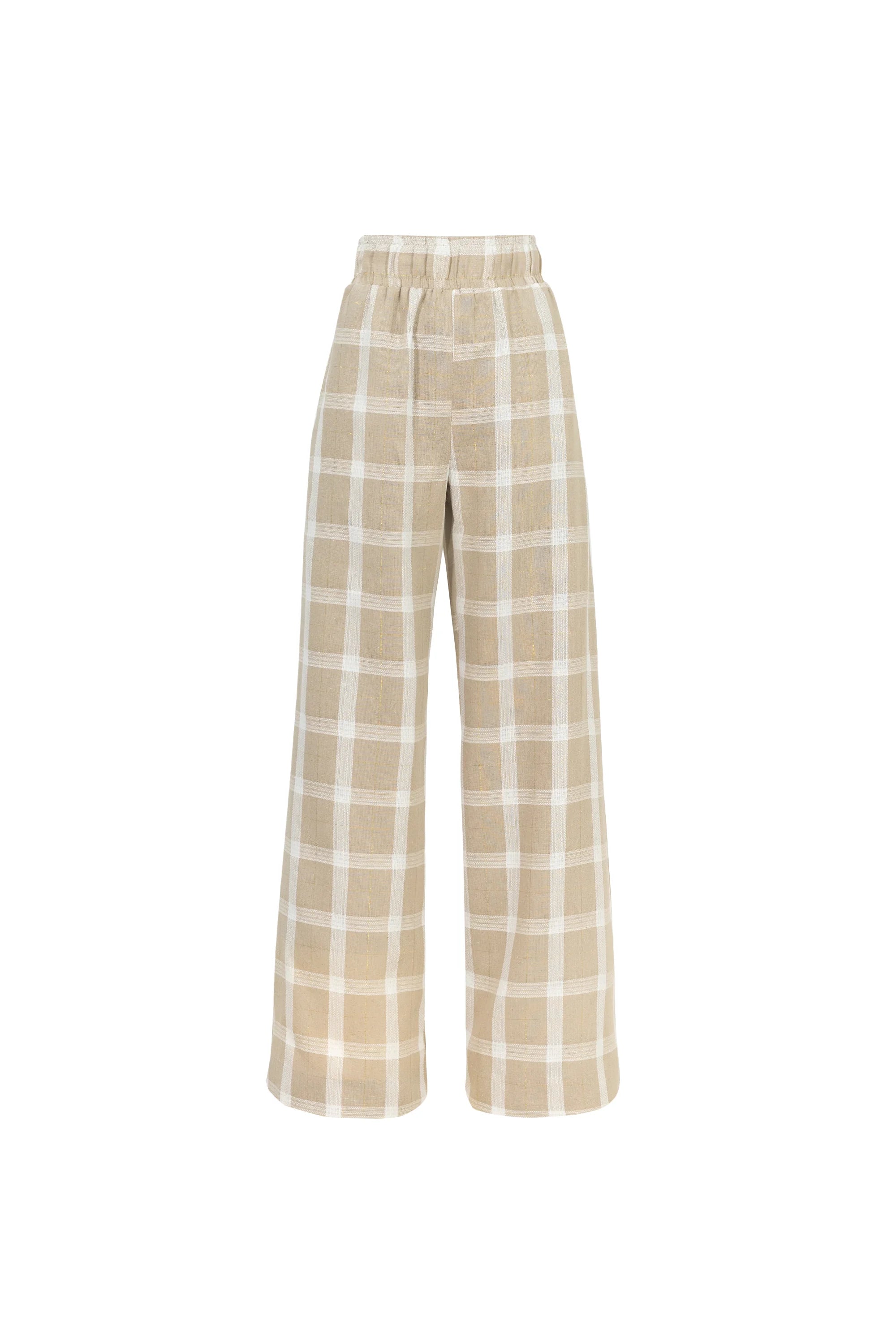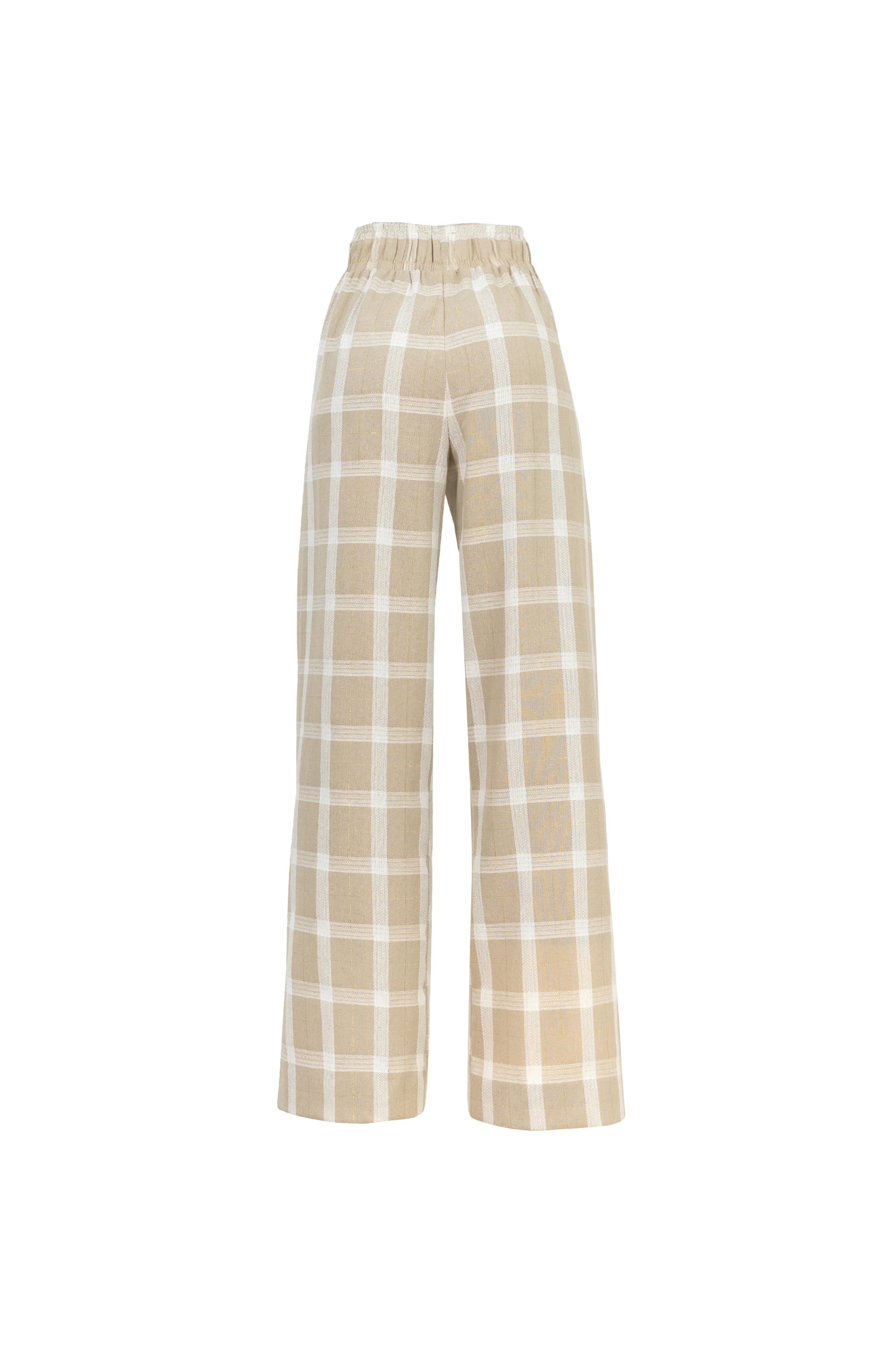 Pantalón de tiro alto diseñado para ofrecer comodidad y estilo en una sola prenda. Su silueta amplia y fluida aporta movimiento y elegancia, mientras que la cintura elástica garantiza un ajuste cómodo y favorecedor