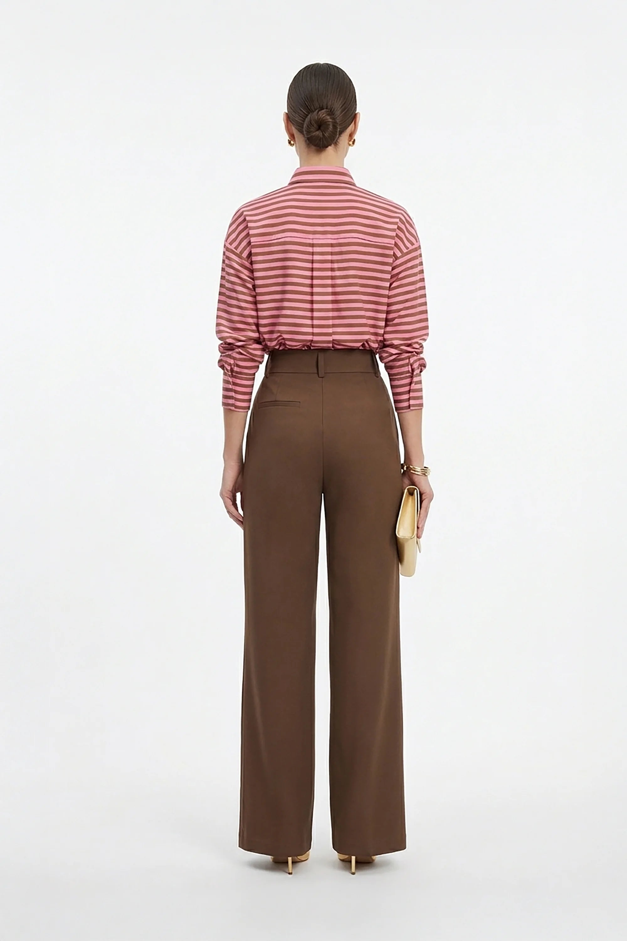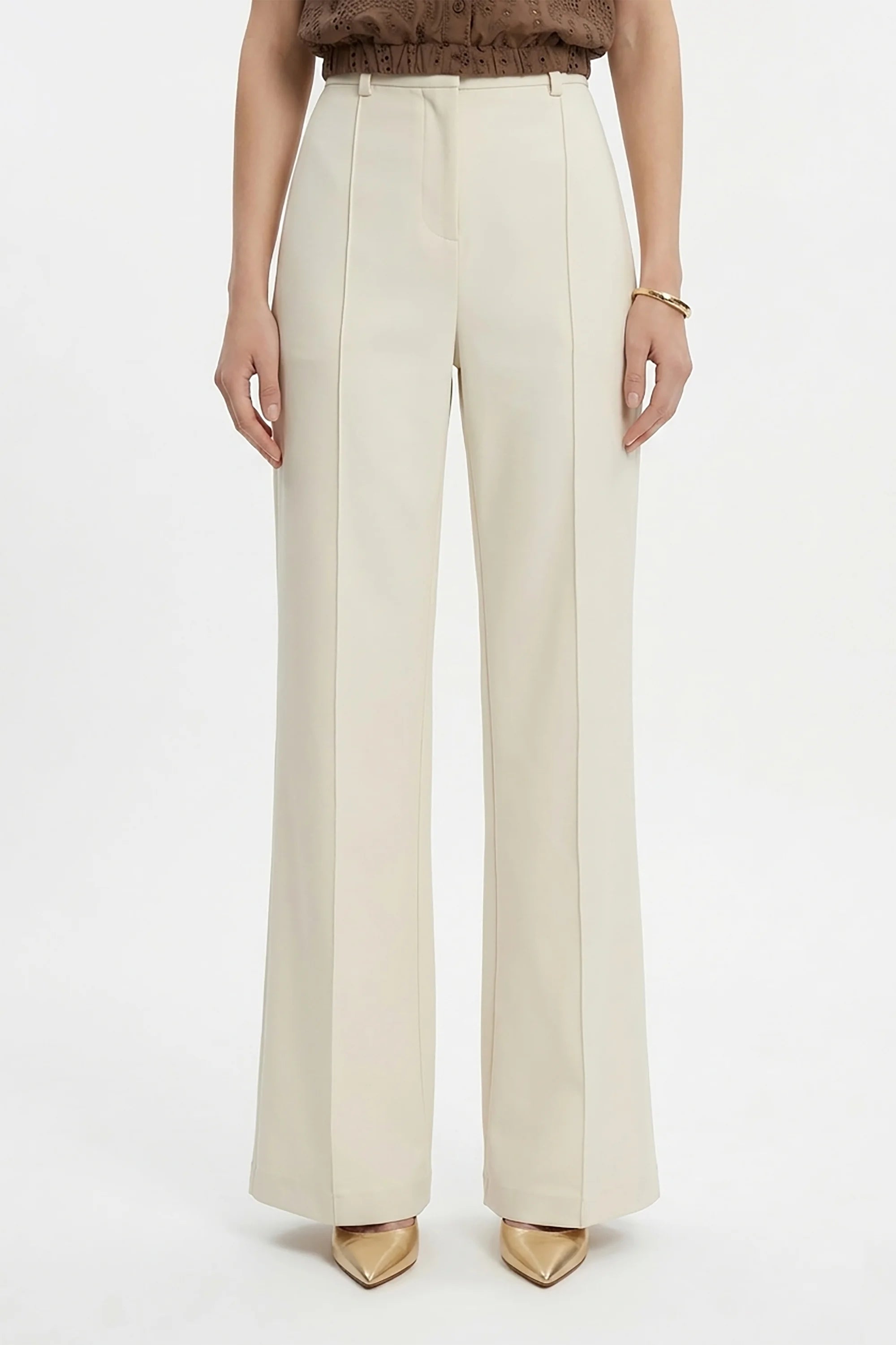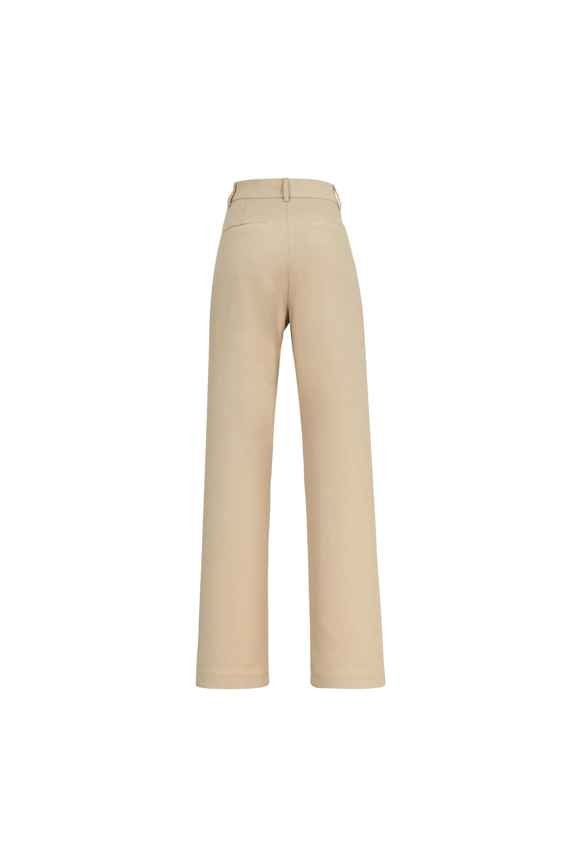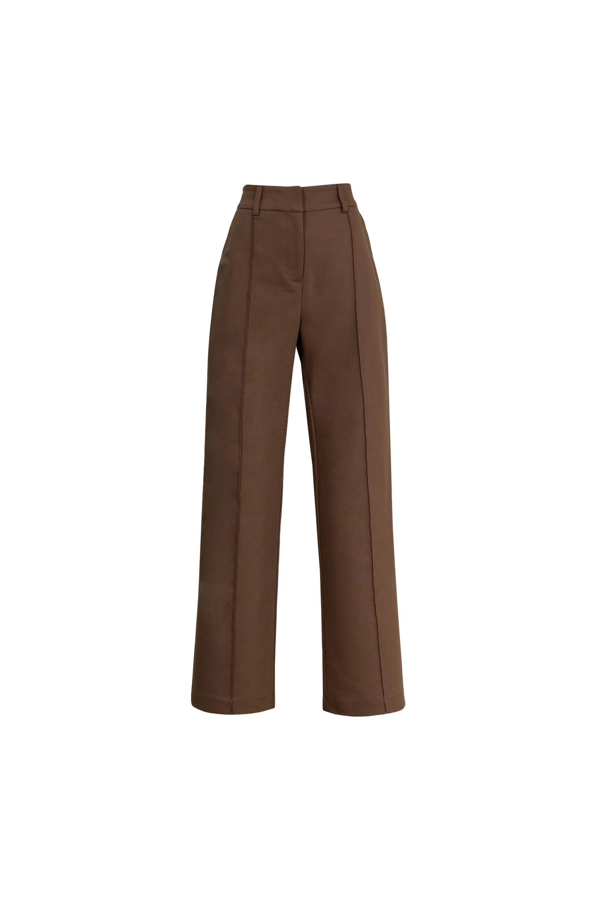 Su corte recto (straight fit) ofrece una silueta limpia que alarga visualmente las piernas, brindando comodidad sin perder estructura. El diseño de tiro medio a alto favorece la figura y aporta un ajuste cómodo y estilizado en la cintura.