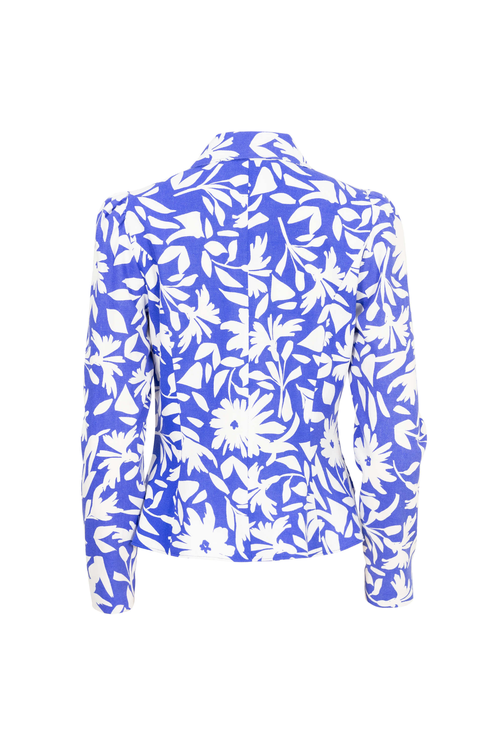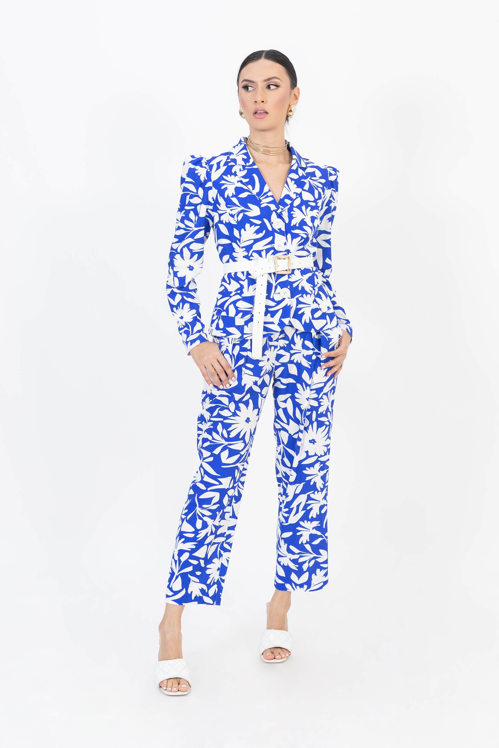Este saco de manga larga con carteras delanteras combina la energía del color con la precisión de la sastrería artesanal. Confeccionado en un textil estructurado de excelente caída, su estampado floral en azul y blanco lo convierte en una pieza llamativa, sofisticada y llena de personalidad.