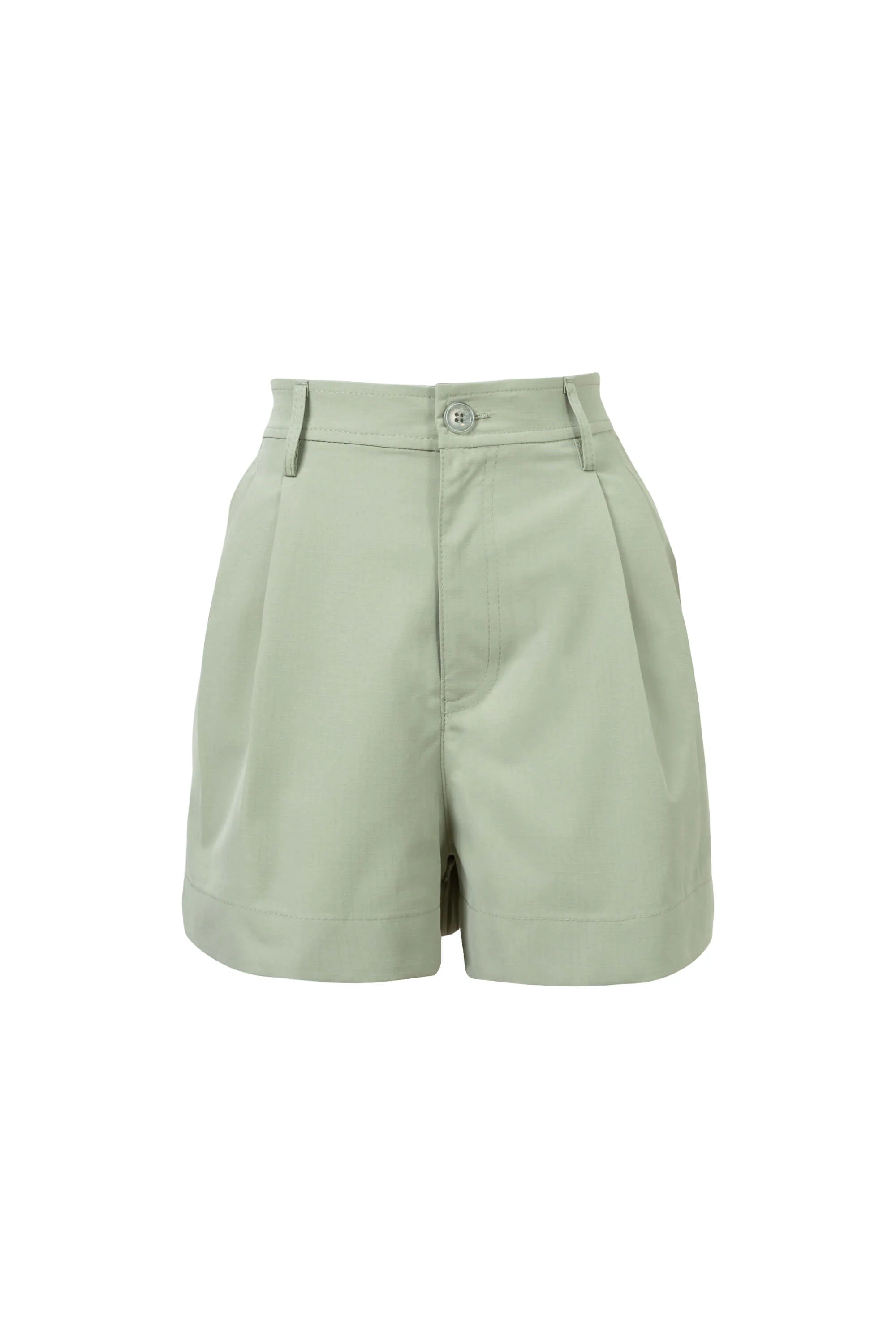 Shorts beige de tiro alto con pinzas y diseño estructurado. Una prenda fresca y versátil que combina comodidad y estilo refinado, ideal para looks casuales y elegantes en climas cálidos