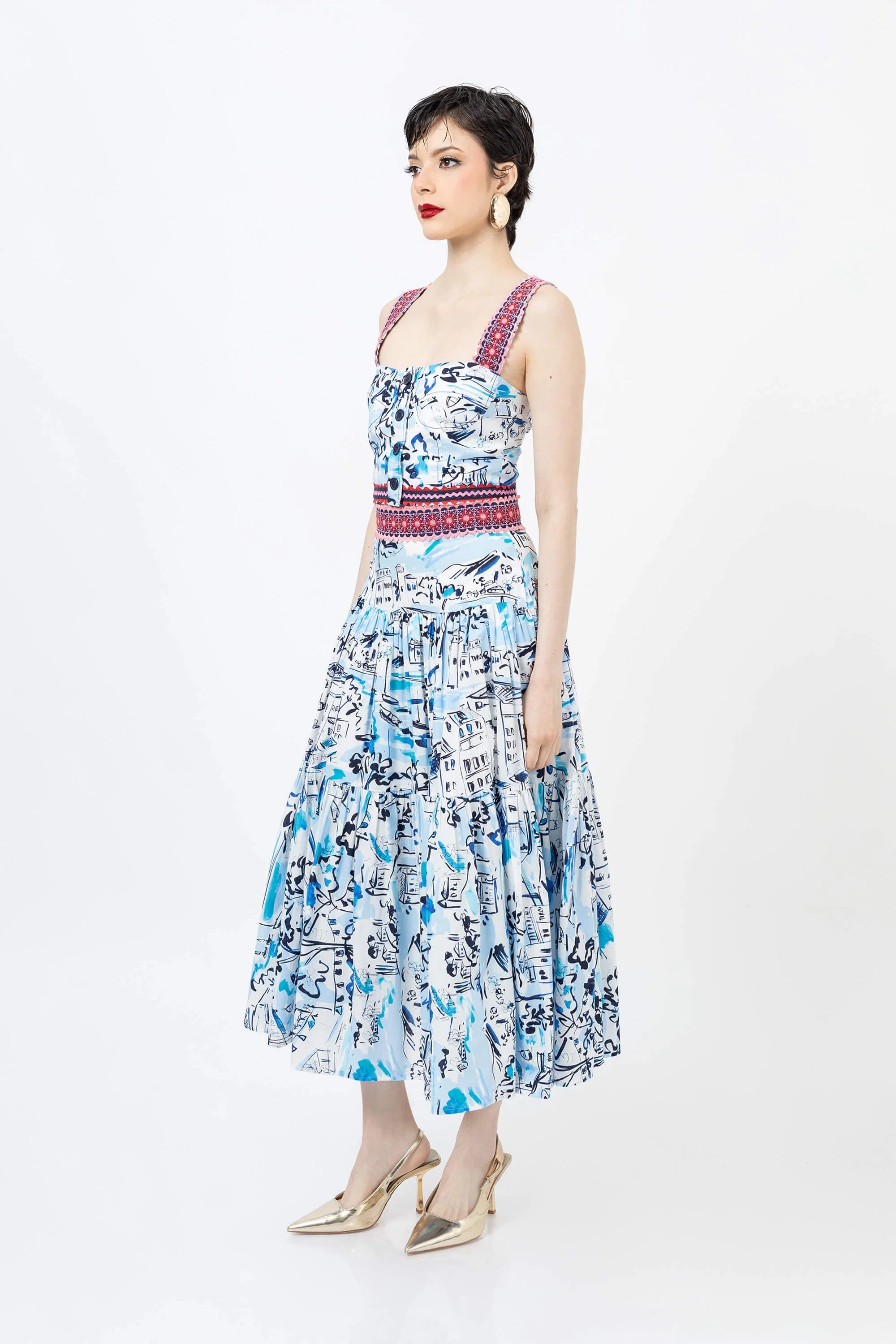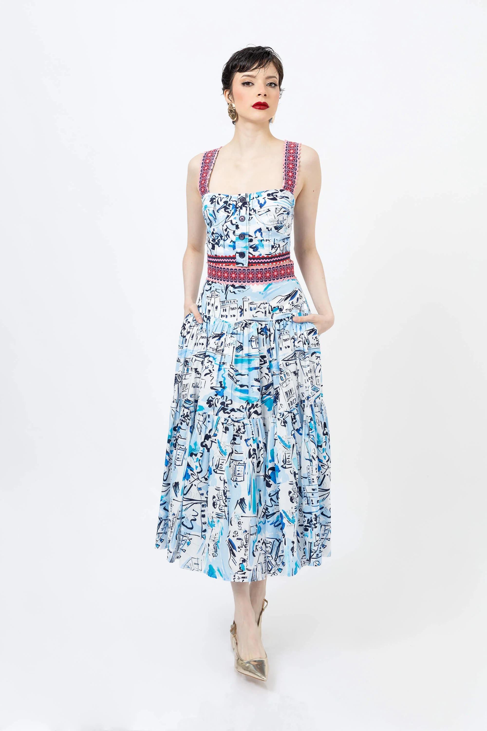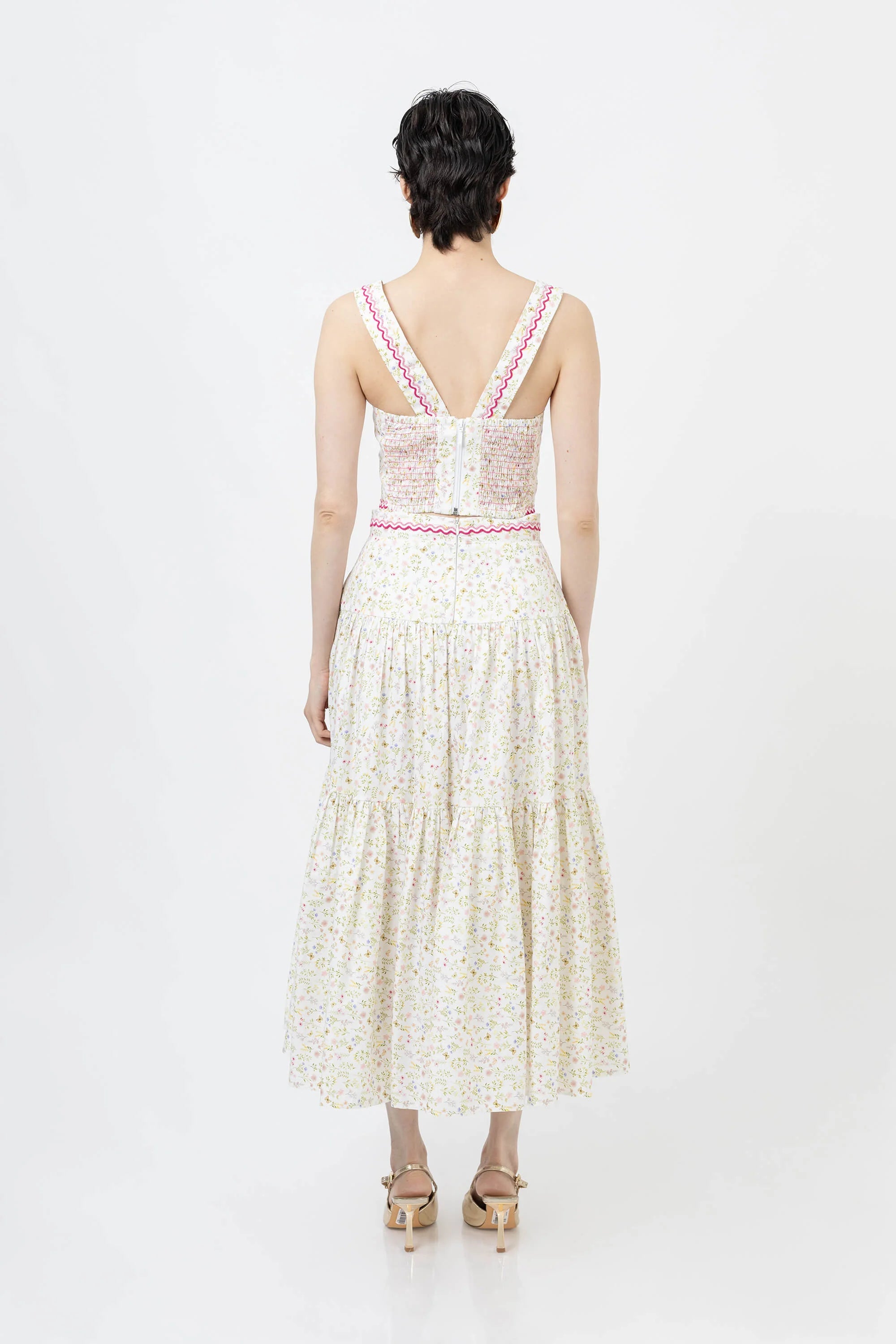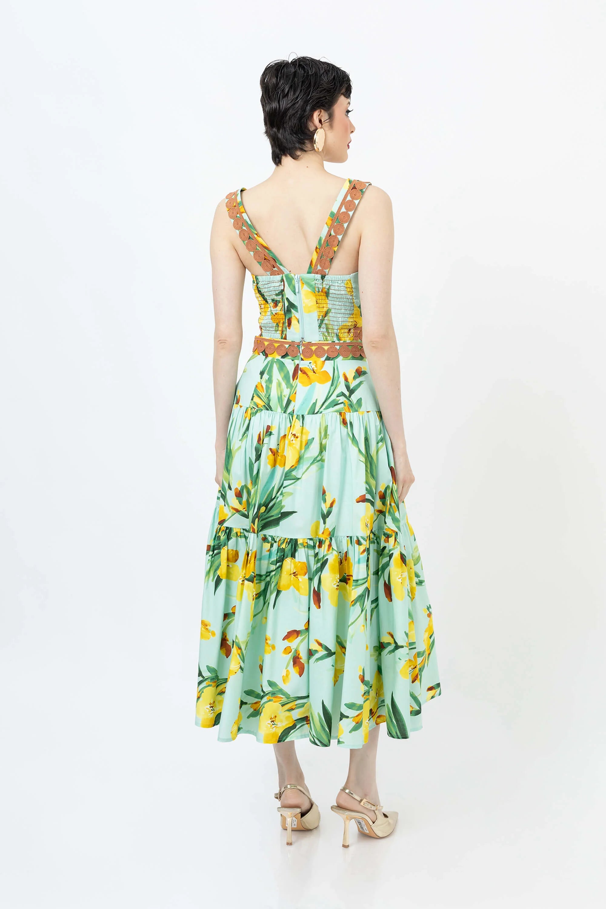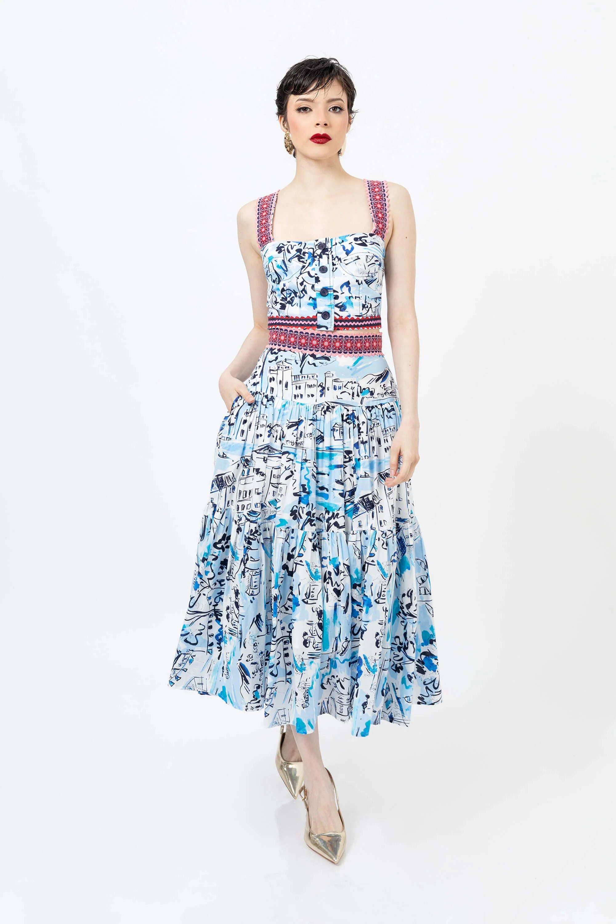 Eleva tu guardarropa de verano con este encantador top corto con un vibrante estampado floral. Confeccionado en un tejido ligero y transpirable, este top presenta un diseño clásico de tirantes que se ajusta a la cintura, ofreciendo una silueta favorecedora y fresca. El llamativo estampado crea un aspecto vibrante y tropical que capta la atención.