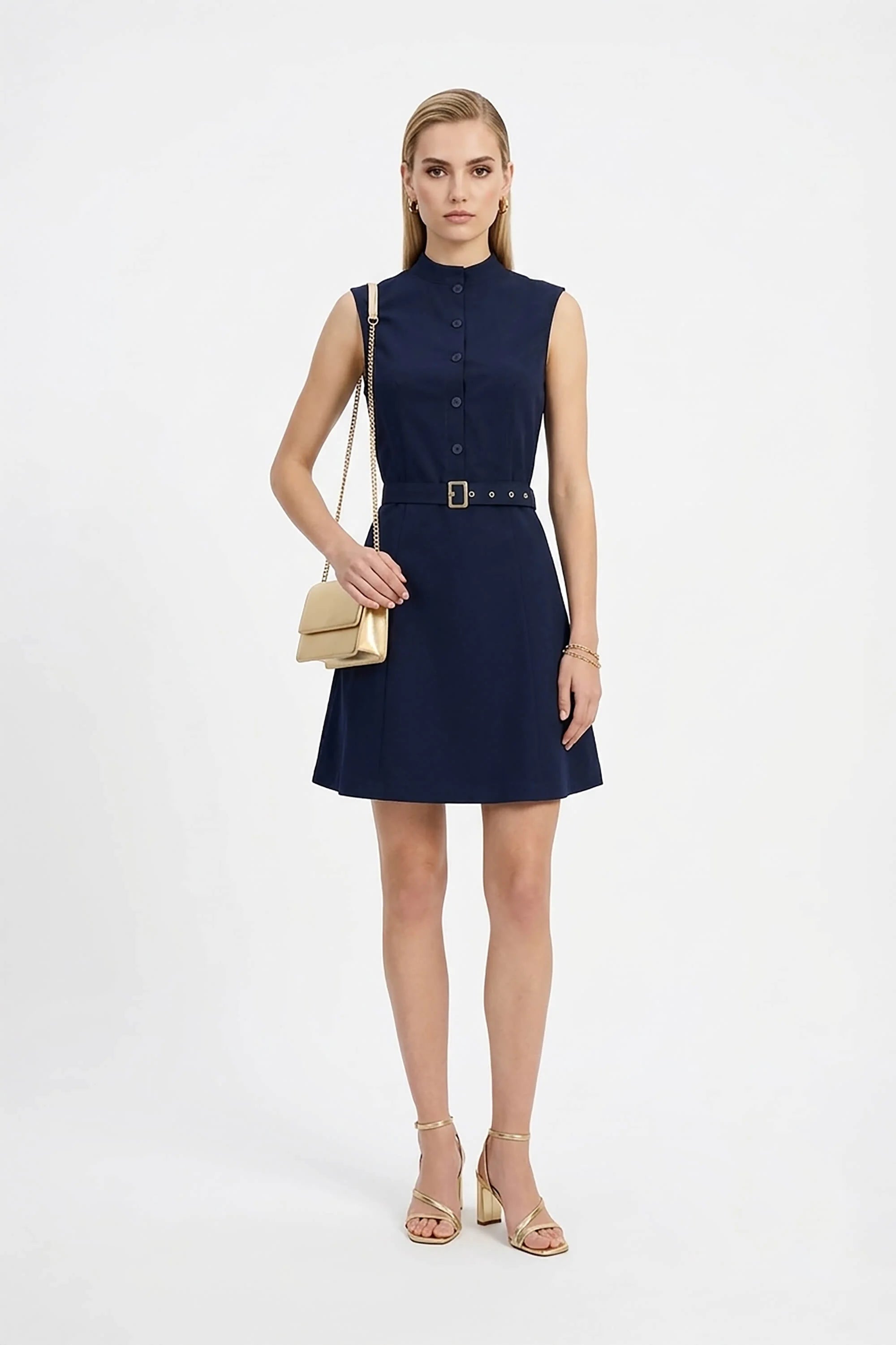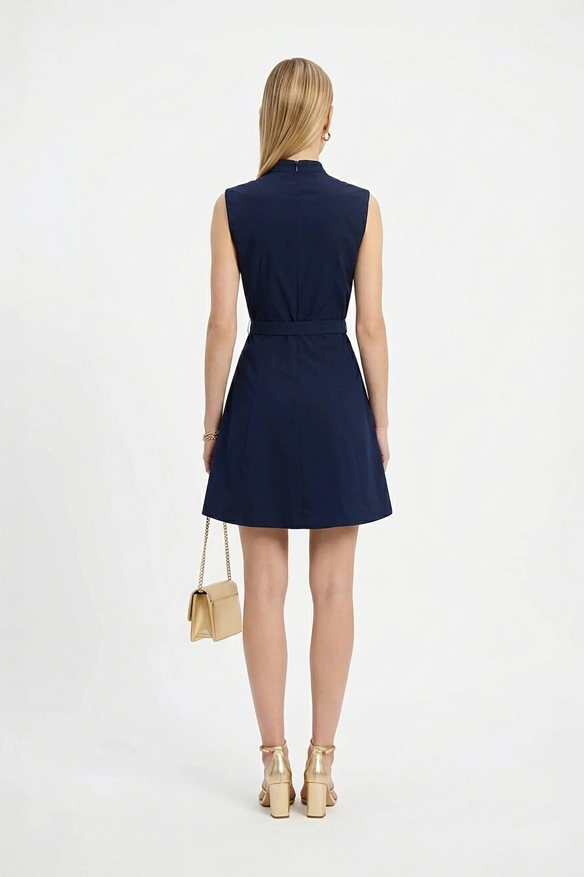 Vestido Mini sin Mangas con Cuello Mao y Aletilla en Talle