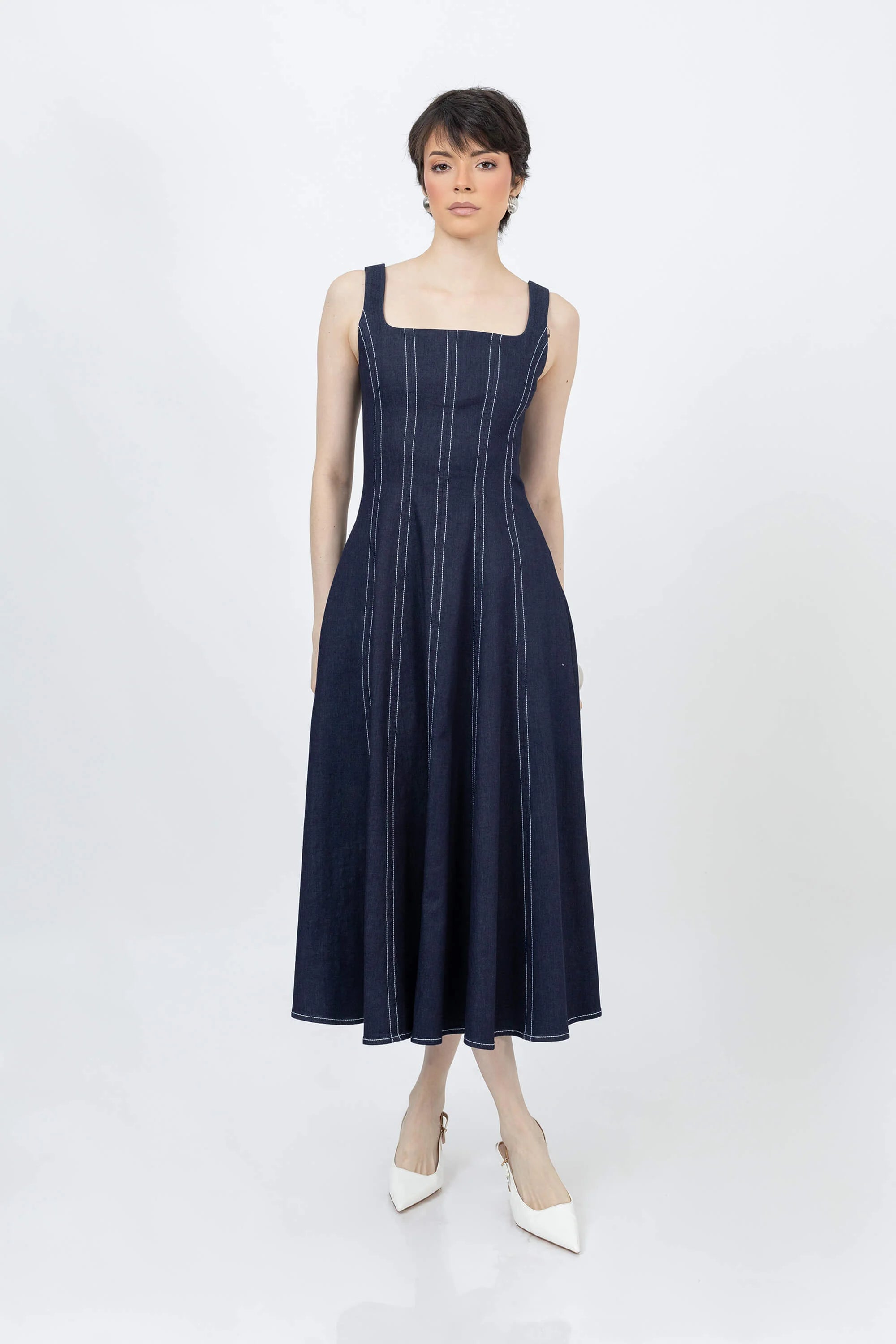 El Vestido de tirantes anchos con pespuntes en cortes de Poet Couture fusiona diseño minimalista y elegancia casual. Confeccionado en mezclilla ligera, su silueta estructurada se realza con costuras visibles que estilizan la figura. Los tirantes anchos aportan comodidad y soporte, mientras que su corte amplio en la falda ofrece un movimiento fluido. Ideal para un look contemporáneo, femenino y versátil con sello artesanal mexicano.