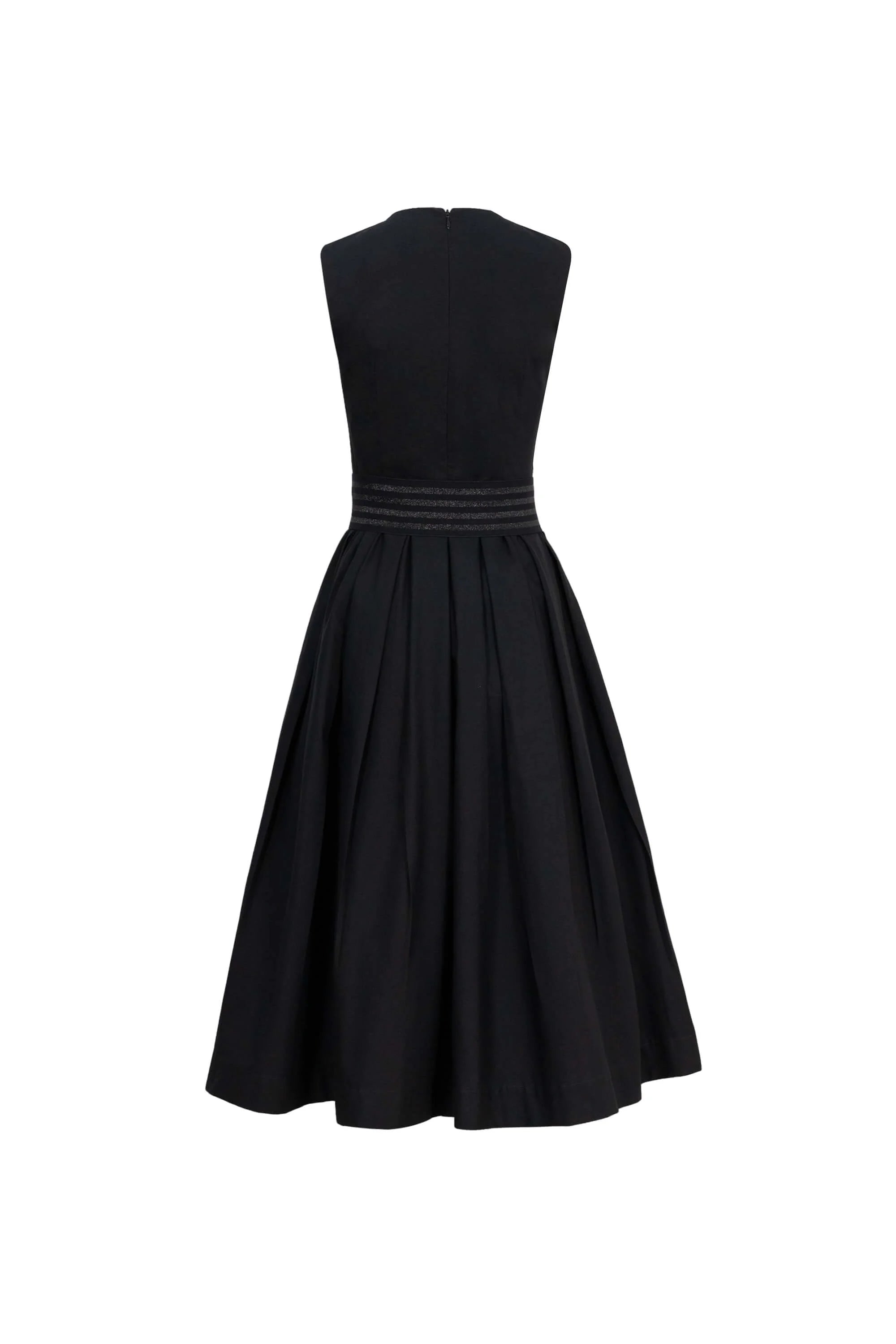 El modelo presenta un escote básico recto que aporta limpieza visual y un aire refinado, permitiendo lucir el cuello y los hombros con sutileza. El cuerpo entallado define la silueta, mientras que en la cintura incorpora un detalle tipo “madre” que funciona como acento estructural, resaltando esta zona y aportando carácter al diseño.