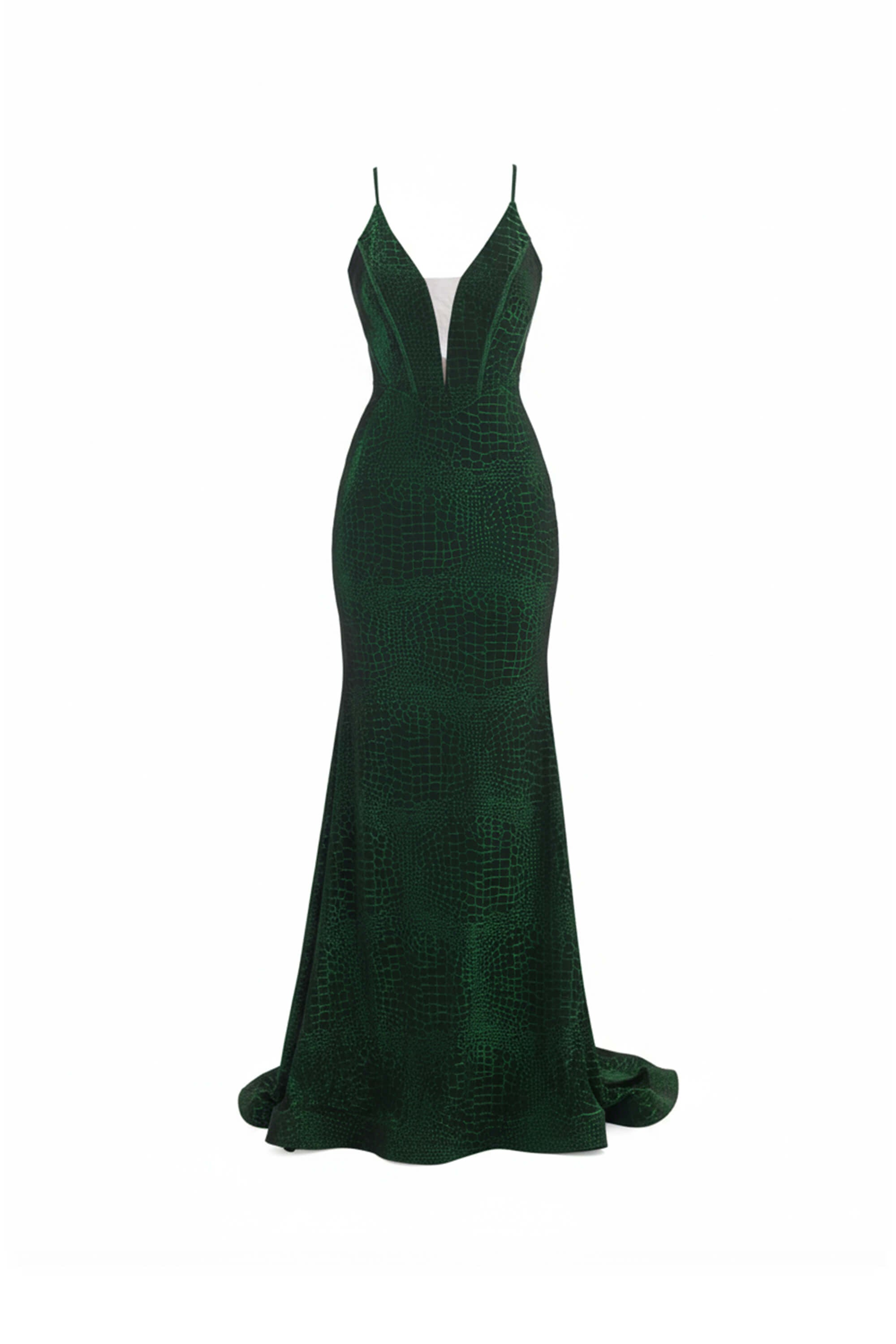 VESTIDO DE GALA DE TIRANTES, CUELLO EN V, Y CORDONES EN LA ESPALDA