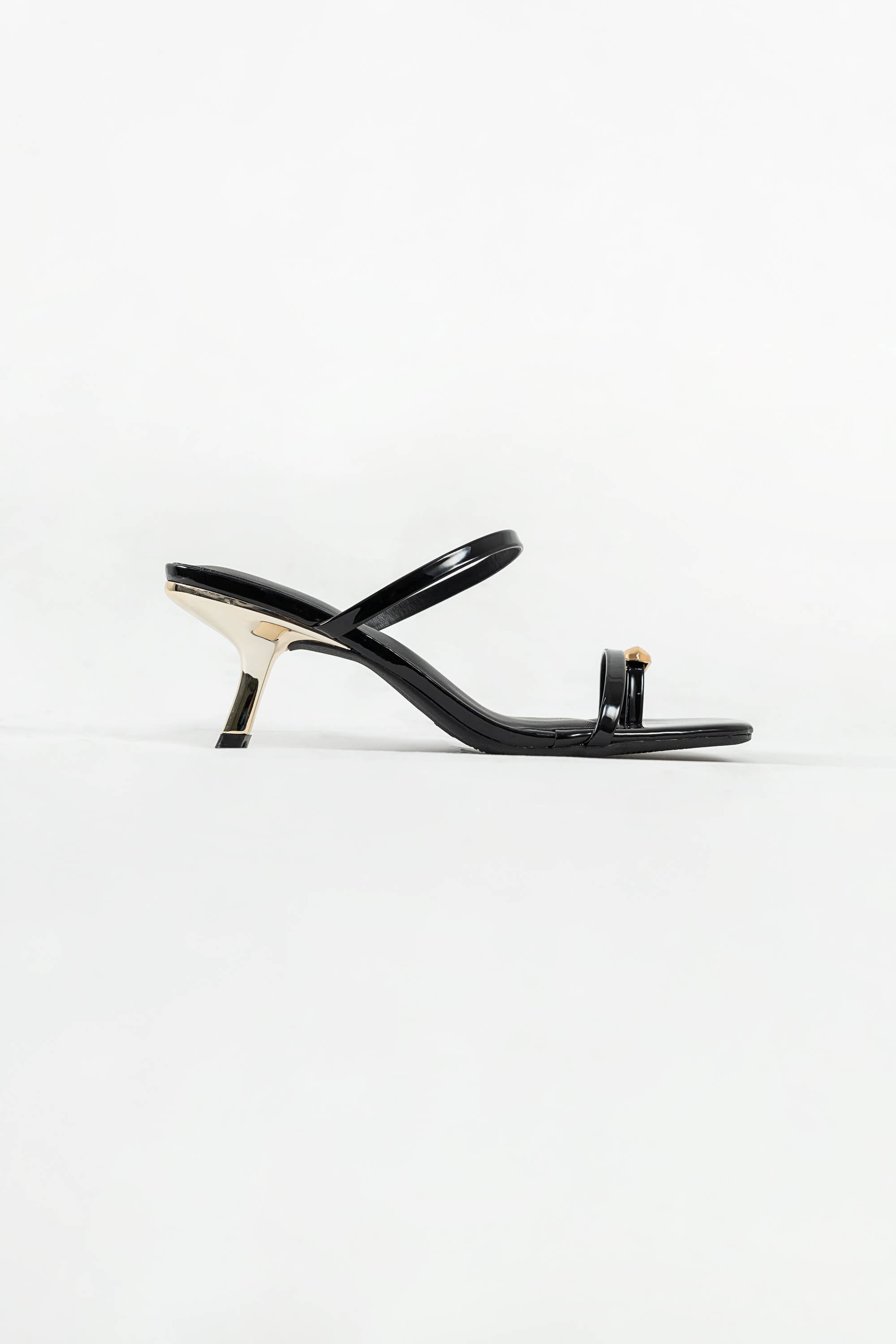 Sandalia tacón bajo con punta cuadrada y correa delgada