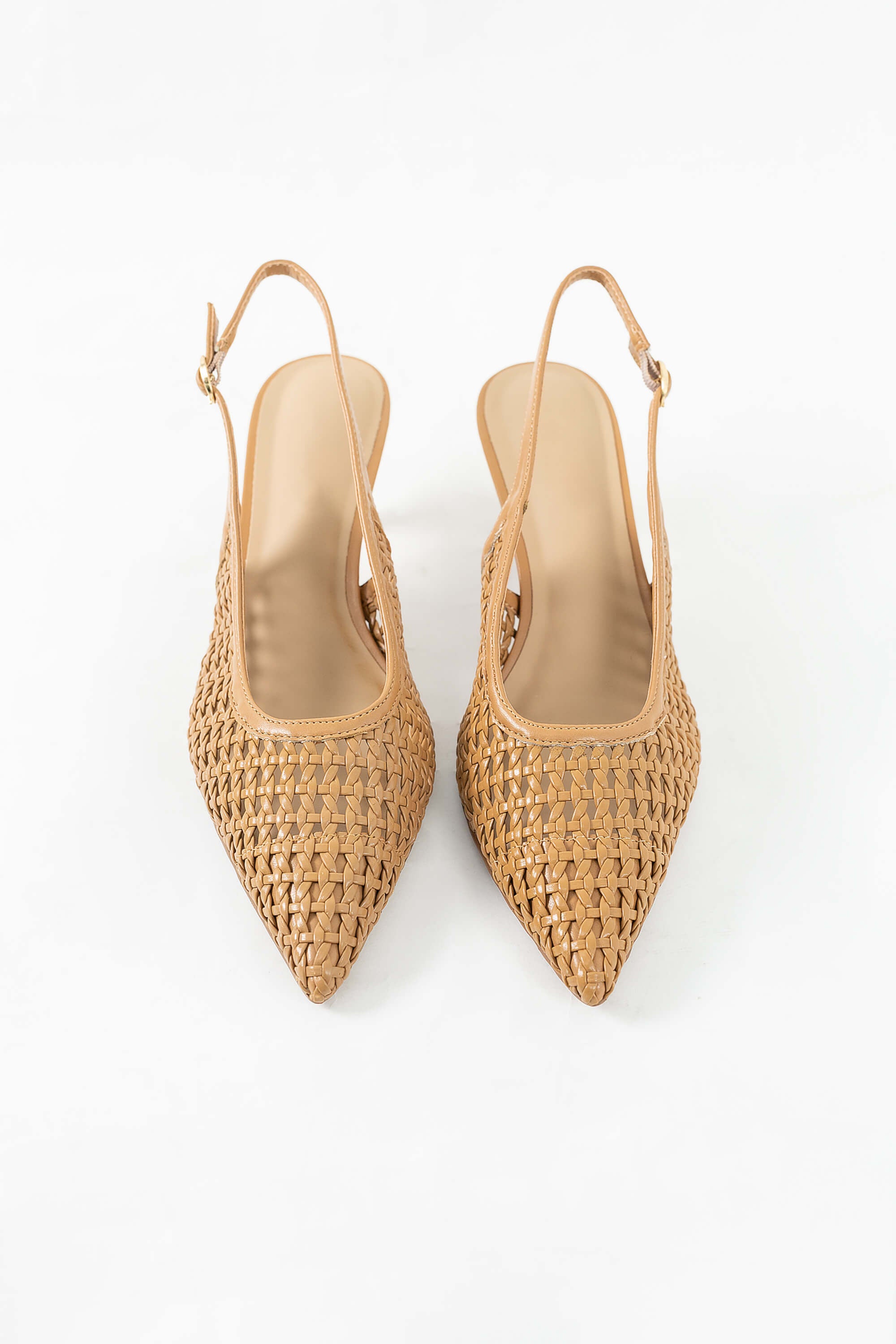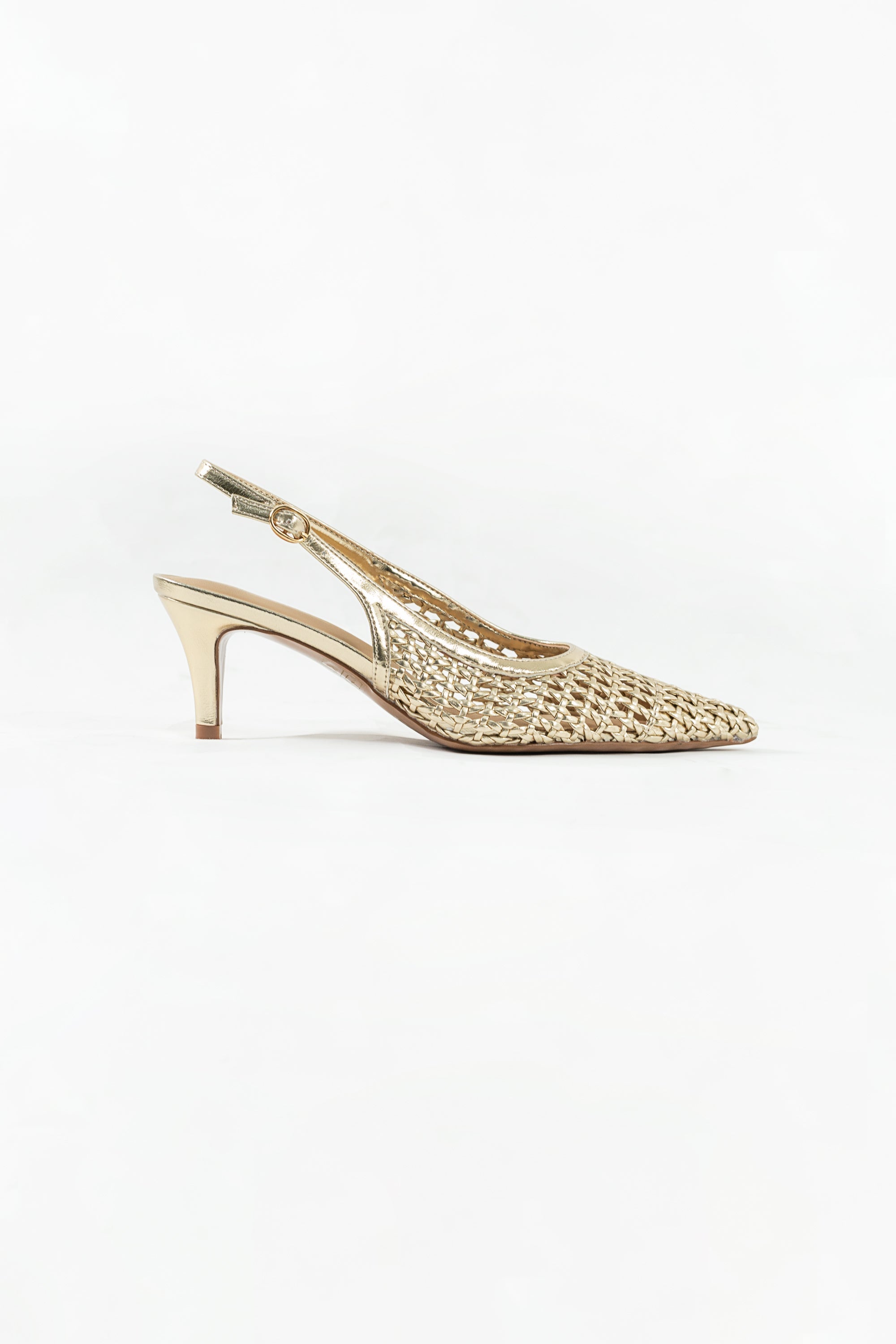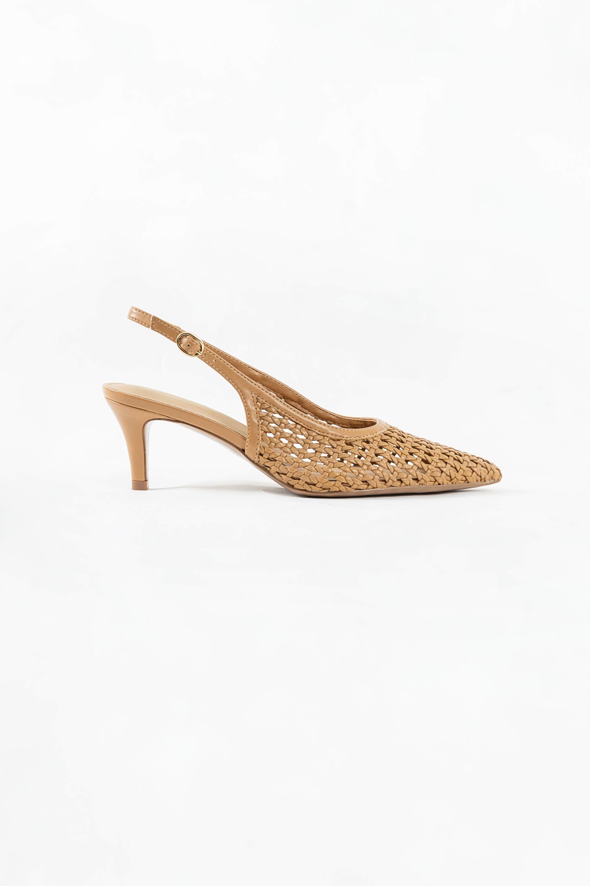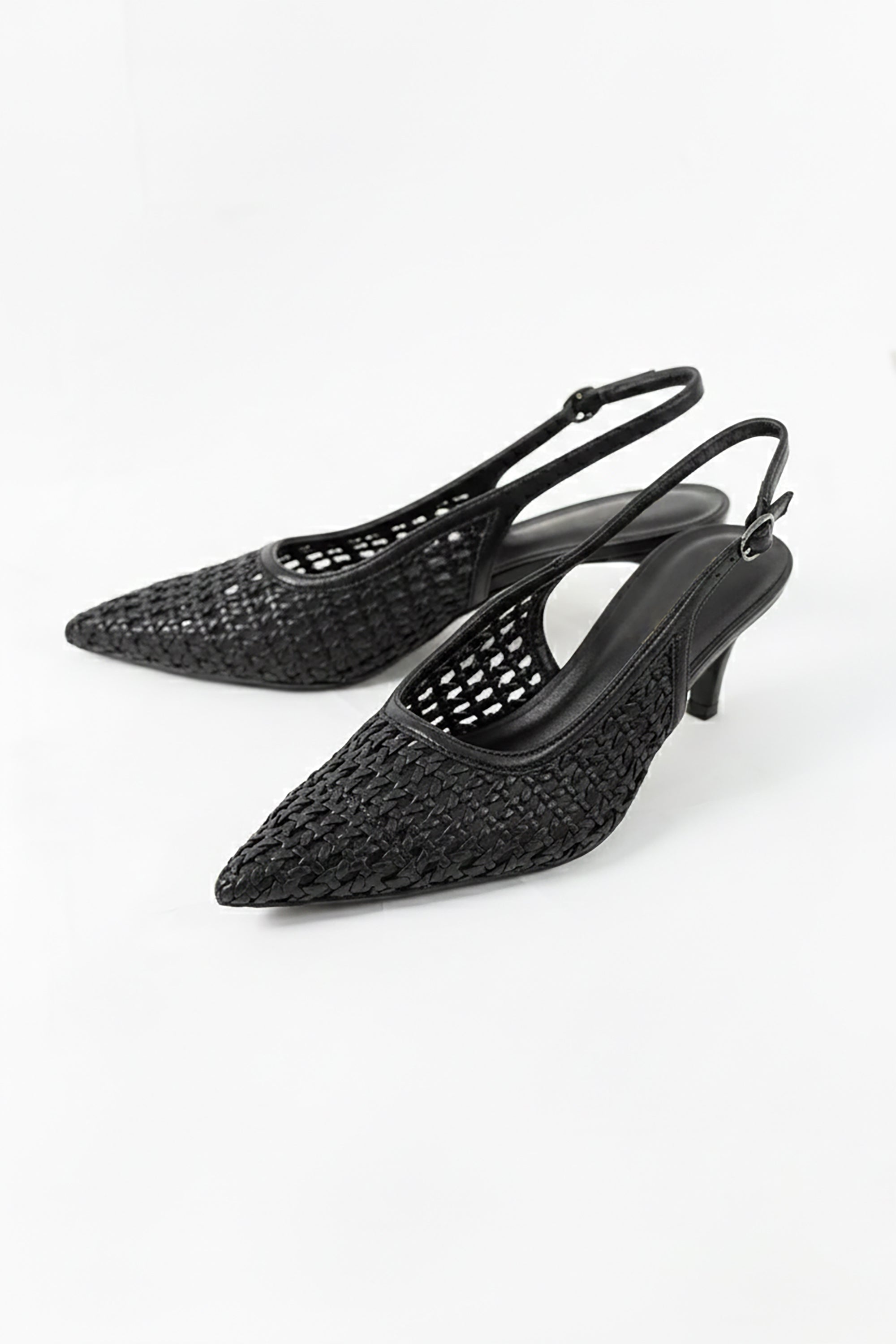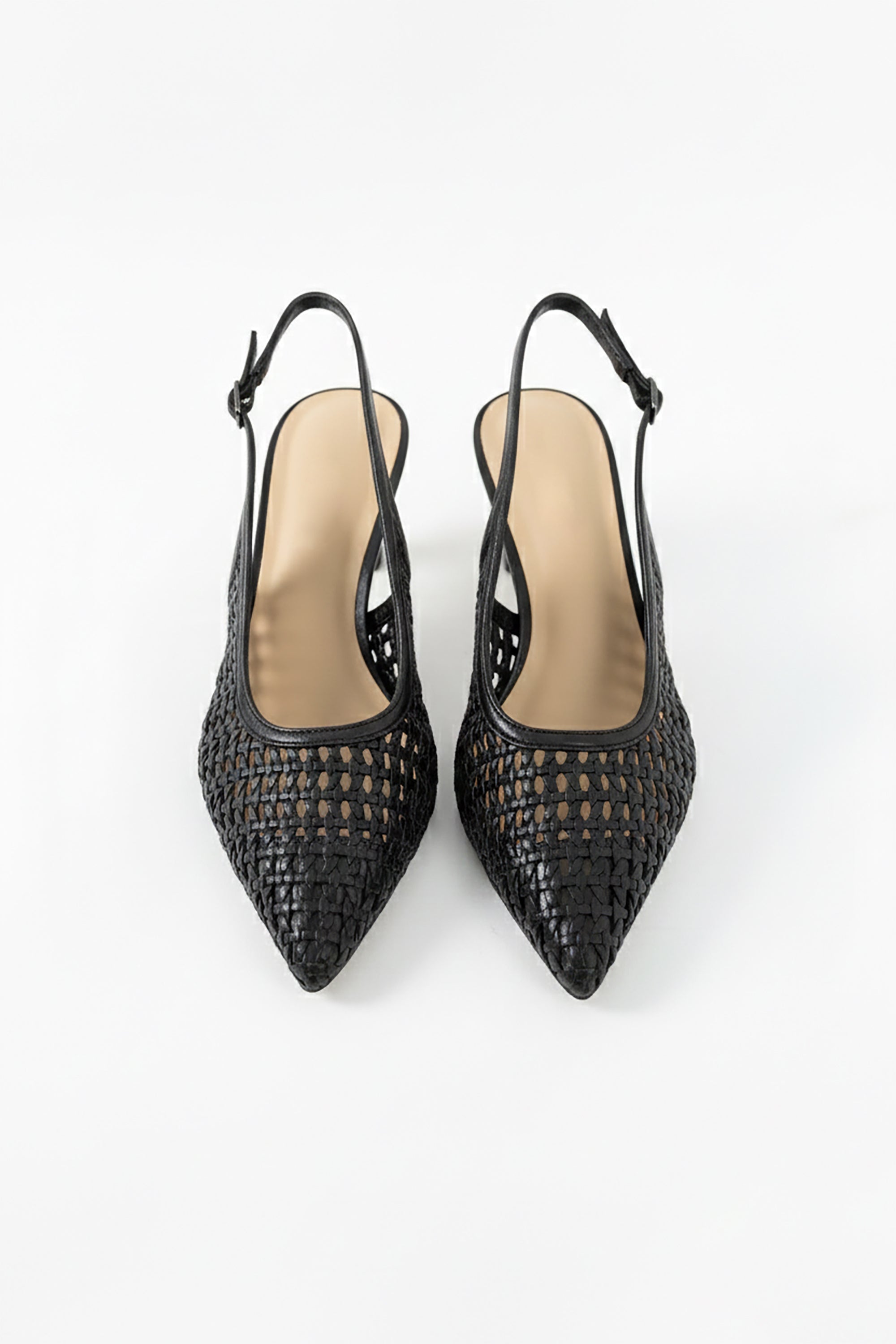 Zapato cerrado de diseño tejido con tacón y correa trasera